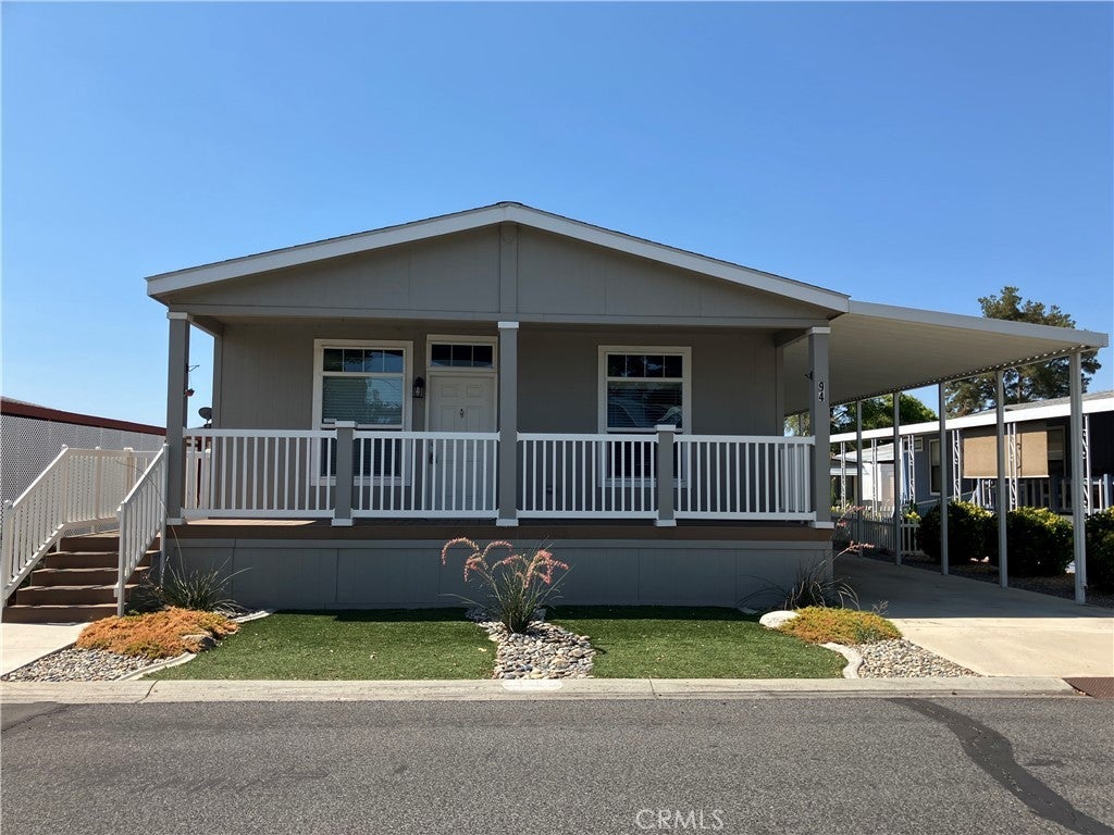WELCOME HOME SENIORS....HEATHER ESTATES is one of the finest senior communities in all of Hemet....Here we present to you a 2018 3 bedroom 2 bathroom home that is like brand new...Turnkey and ready for it's new owners...The home is stunning and has the open concept that everyone is searching for...It's light and welcoming and the front porch is such an awesome feature...A great place to enjoy the gorgeous mountain views and meet your neighbors (or your cup of coffee)...There is a wonderfully cozy clubhouse with all the amenities and a swimming pool and lake right behind it...there is also a nice green space for walking your fur babies....This is a great time to purchase a home before interest rates fall and prices go higher...This is a gated community 24/7 for your security and peace of mind...Lot rents and taxes are still low so let's get going !!! Call today for your free tour !!!