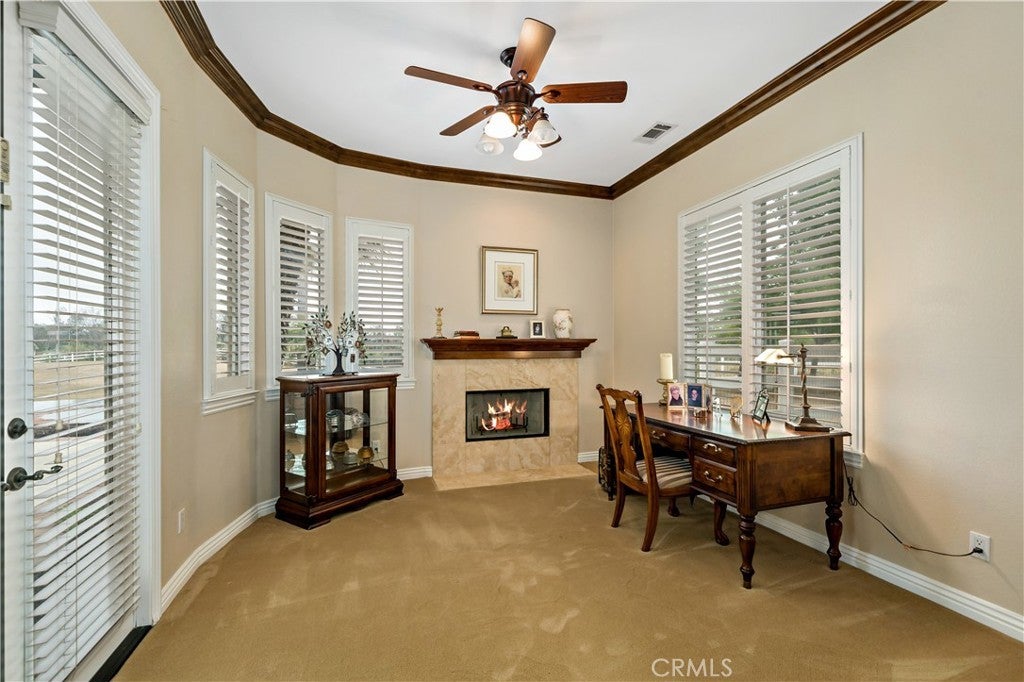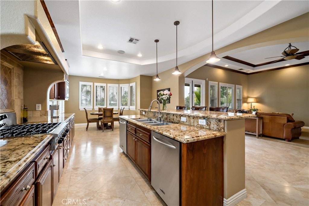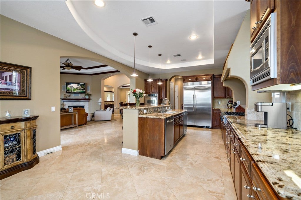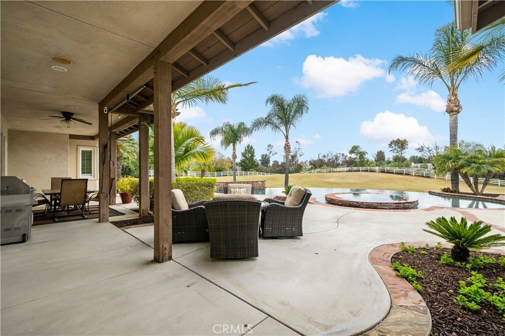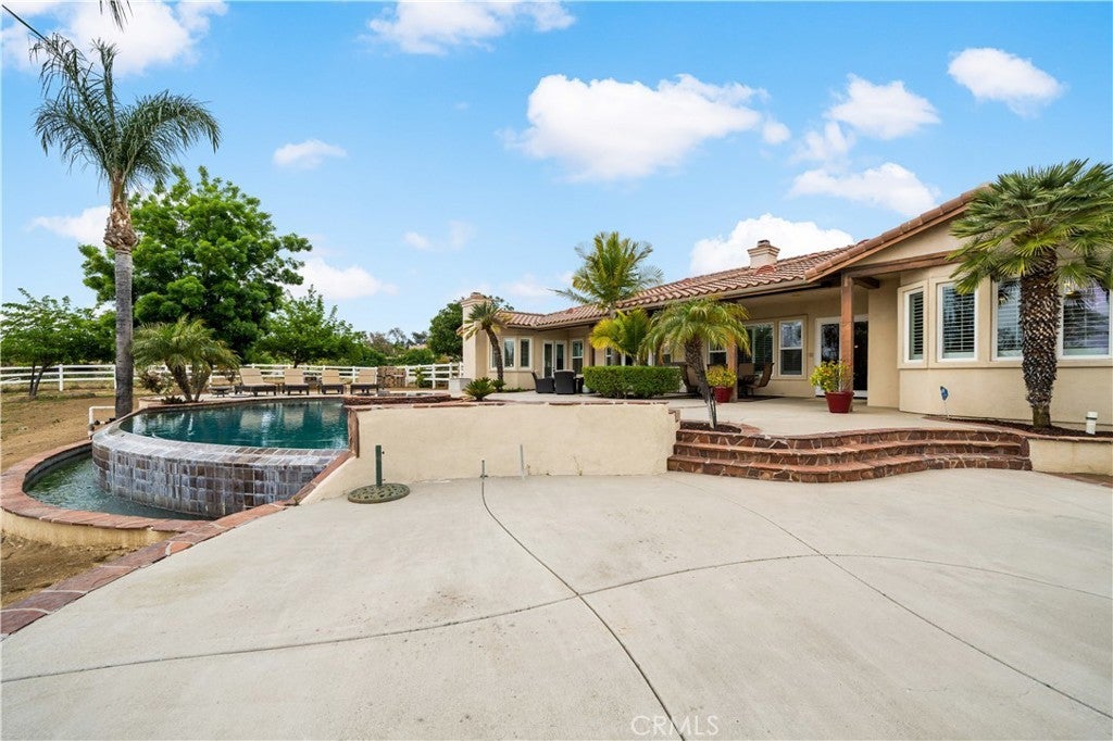 Huge Price Improvement! Luxury Living in Temecula Wine Country – Minutes from Wilson Creek Winery. Experience the pinnacle of luxury in this custom-built estate nestled in the heart of Temecula Wine Country, just minutes from the acclaimed Wilson Creek Winery. Set on 2.33 acres, this exceptional property offers a rare combination of sophistication, comfort, and countryside charm—complete with room for horses or your own private vineyard. Designed for both entertaining and everyday living, the 4,800 sq. ft. residence showcases premium features throughout. Step through the grand courtyard entrance into a home defined by soaring ceilings, 8-foot doors, and an abundance of natural light from French doors and expansive windows. The open-concept layout seamlessly blends the gourmet kitchen and spacious family room, making it perfect for gatherings. Culinary enthusiasts will love the chef's kitchen, outfitted with top-tier KitchenAid appliances, dual dishwashers, a six-burner cooktop, double convection ovens, and two large pantries. A formal living room and elegant entryway provide inviting spaces for more intimate occasions. The luxurious primary suite is a true retreat, featuring a private sitting area with a cozy fireplace, dual walk-in closets, and a spa-inspired ensuite bath with a glass block walk-in shower (dual shower heads), jetted tub, and dual vanities. Each of the three additional bedrooms includes its own ensuite bath, with a guest room offering even more flexibility. An attached casita/bonus room with private courtyard access adds versatility—ideal as a home office, gym, studio, or guest space. The oversized four-car garage offers ample storage and workspace. Outdoor living is equally impressive. Relax by the infinity pool and spa, pick fresh fruit from your private orchard (featuring apricot, peach, plum, lemon, grapefruit, orange, and tangerine trees), or enjoy coffee on the patio while hot air balloons float by in the early morning sky. Additional features include:Paid solar system, Dual HVAC units and water heaters, Central vacuum system, Whole-home integrated speaker system (including courtyard, patio, and garage), No HOA and low property taxes. This one-of-a-kind home effortlessly combines resort-style amenities with everyday functionality. Come discover your dream lifestyle in Temecula’s most coveted wine country location.