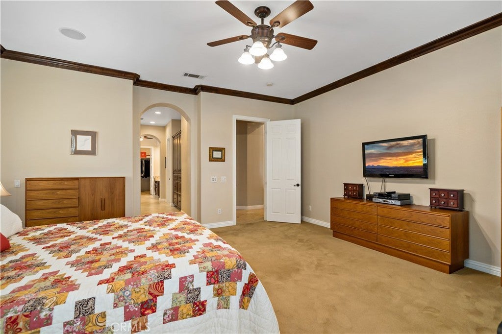 Ceiling Fan(s), Crown Molding, Cathedral Ceiling(s), Central Vacuum, Separate/Formal Dining Room, Granite Counters, High Ceilings, Open Floorplan, Pantry, Recessed Lighting, Storage, All Bedrooms Down, Bedroom on Main Level, Main Level Primary, Primary Suite, Utility Room, Walk-In Pantry, Walk-In Closet(s), In-Law Floorplan