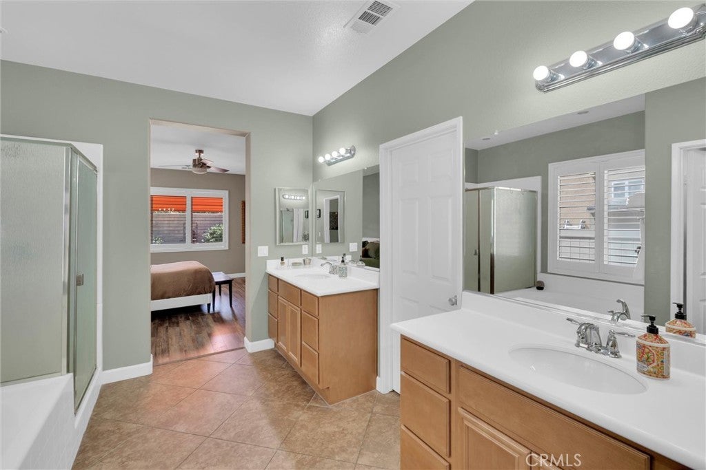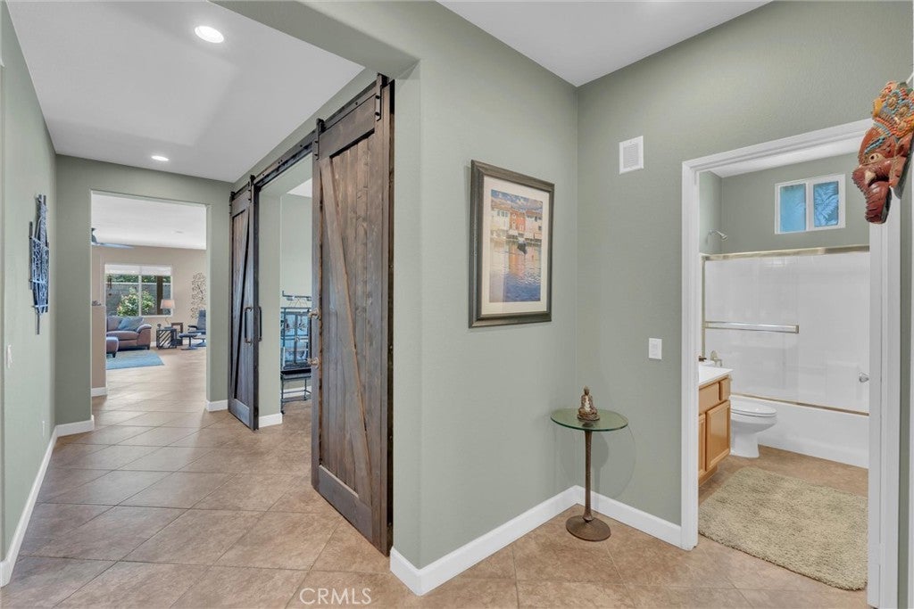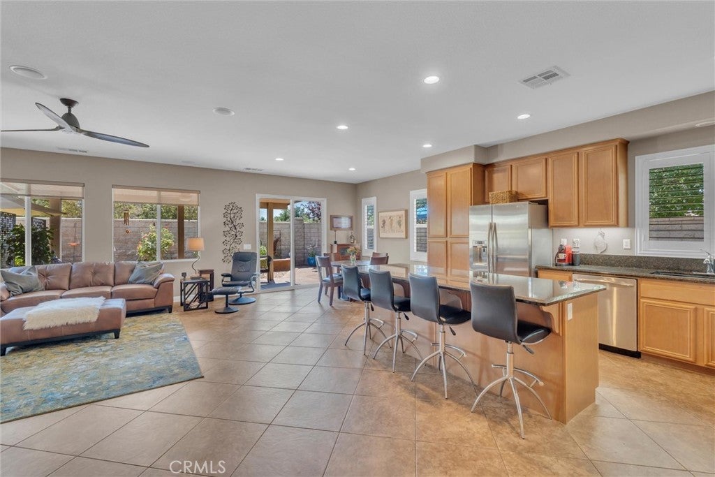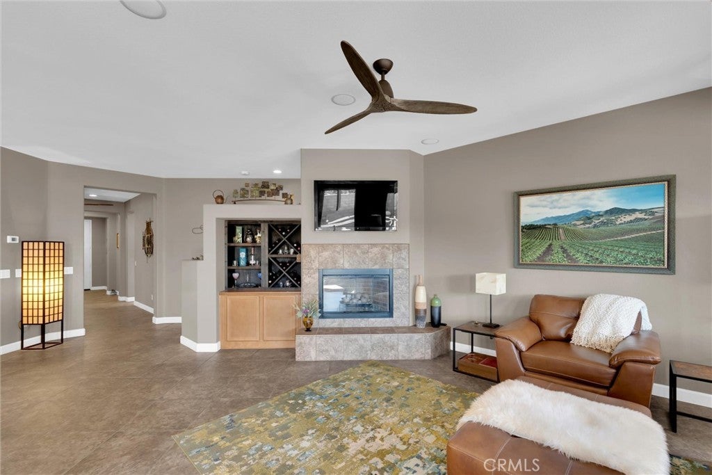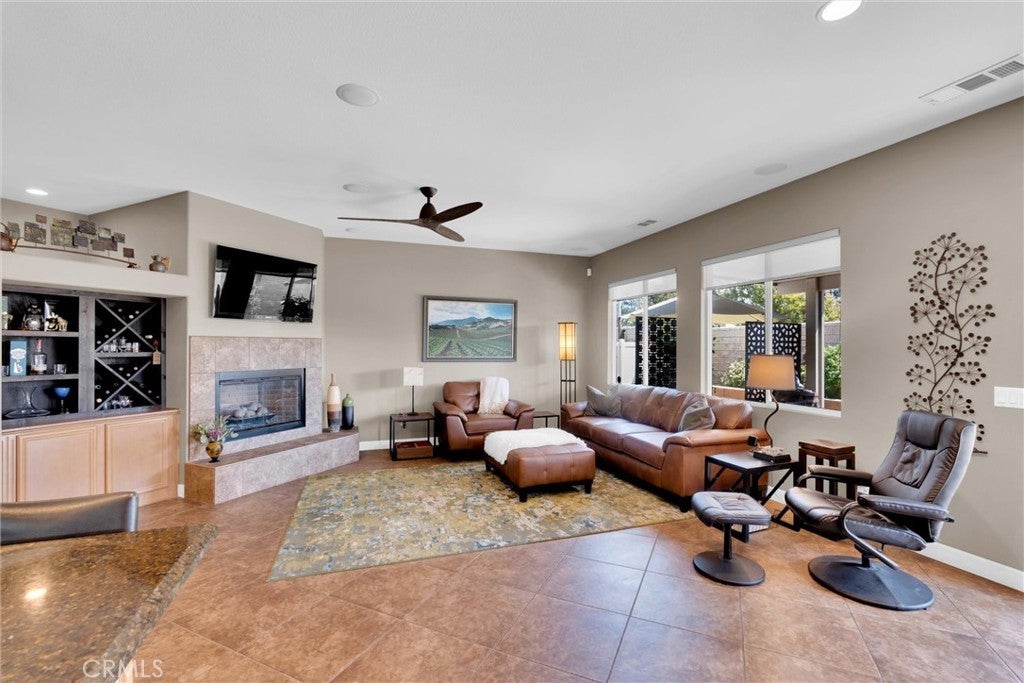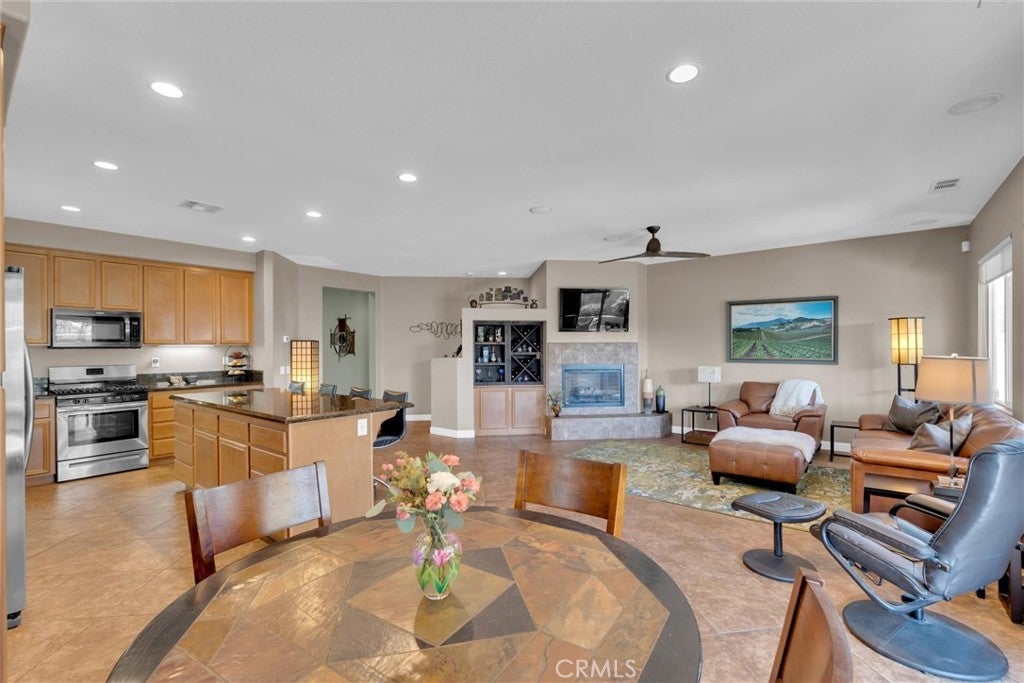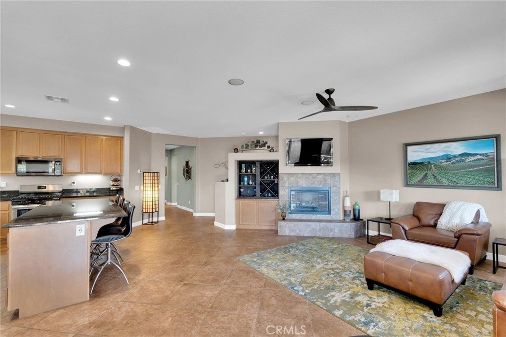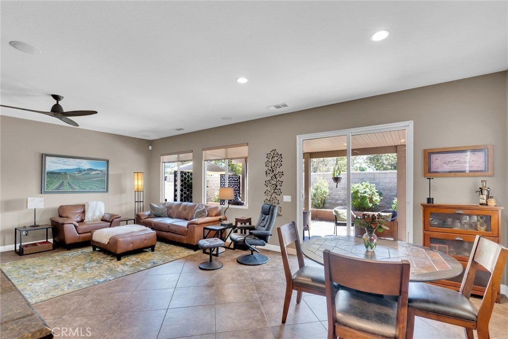 Popular single-story home on a Corner Lot with Open Floorplan. No rear neighbors! 3 Spacious bedrooms & 2 bathrooms. This home is in pristine condition and shows true pride of ownership. Enter through a lengthy hallway with high ceilings that opens up to the Open Great Room. The beautiful gourmet kitchen features generous cabinets, a large island ,stainless steel appliances, and granite countertops. New 2025 Stove, Garbage disposal and Water Heater! Spacious open Great Room with surround sound system & cozy fireplace with raised hearth is the perfect place to entertain. Primary suite is on one side of the home, separating you from the other 2 bedrooms. Primary bathroom with a Separate walk in shower and soaking tub, generous walk-in closet and dual sinks & vanity! There is also a huge walk in closet! Secondary bedrooms are large , one featuring a Barn Door entrance! Additional features include an Indoor Laundry room with storage cabinets, Plantation Shutters, Ceiling Fans and beautiful oversized 20" tile flooring throughout the living spaces. Laminate flooring in bedrooms. Outside, the backyard features a fully landscaped, low maintenance yard with no rear neighbors! Pick your own fruit from the lemon & lime trees! Large covered alumawood patio cover, with custom hardscape, and show stopper built in fire pit with fire glass. Block wall fencing, with vinyl fencing on one side. Extra large 2 1/2 car garage! Located in the award-winning Temecula school district, in the Dutch Village neighborhood near sports parks, playgrounds, walking trails and shopping, this home has it all! This is a serene quiet location with amenities nearby and Temecula wine country only minutes away! LOW Taxes! and LOW HOA, only $10/month ($120 for the whole year)!