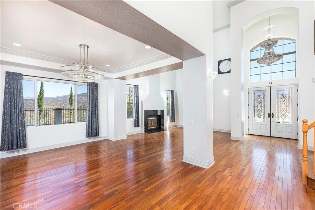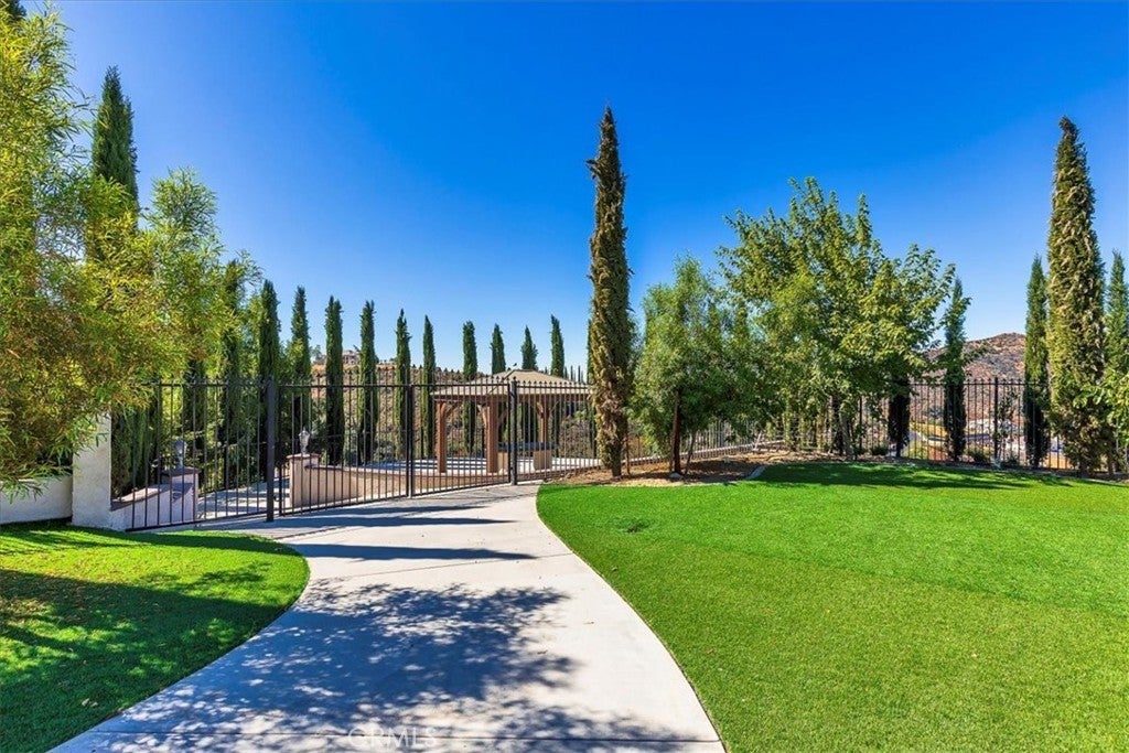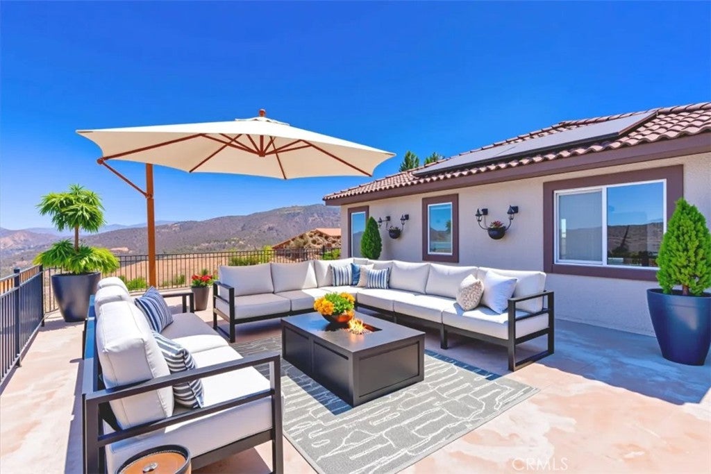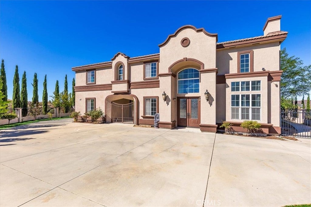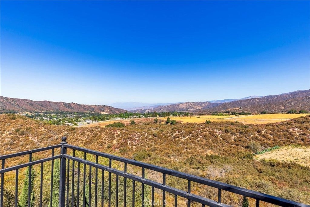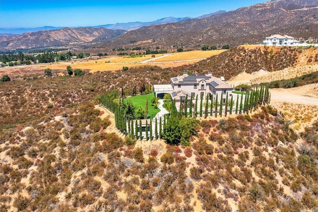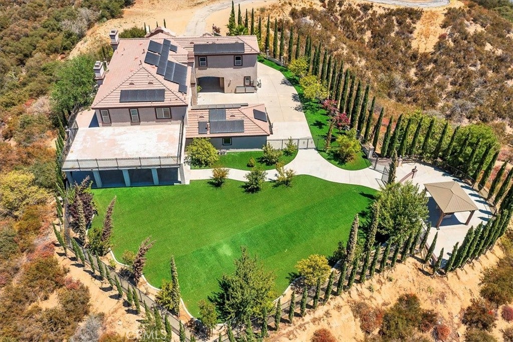 Welcome to 39292 Butterfly Drive, a custom estate perched on nearly 5 acres in the prestigious gated community of Wildwood Highlands. Nestled near Wildwood State Park and just minutes from Oak Glen’s wineries and apple orchards, this home combines timeless elegance with breathtaking surroundings. A grand porte cochere and double-door entry set the stage for the dramatic foyer, complete with soaring ceilings and a dazzling crystal chandelier. Real wood floors flow throughout the main level, where you’ll find an office, 1/2 bath, convenient laundry room with sink, and a detached guest room with its own private full bath, ideal for extended family, guests, or future ADU conversion. Upstairs, discover 4 bedrooms and 3 bathrooms, including the luxurious primary suite, a retreat featuring a private sitting area with fireplace, spa-like bath with soaking tub and glass shower, and an expansive deck showcasing panoramic valley views framed by snowcapped mountains. The gourmet kitchen is a chef’s dream with a large island, granite counters, GE Monogram appliances, six-burner gas range with hood, double ovens, trash compactor, and a spacious walk-in pantry. Three fireplaces add warmth throughout, while the finished 3-car garage impresses with epoxy flooring and insulated doors. Outdoors, enjoy the fully fenced yard lined with Italian Cypress, mature fruit trees, low-maintenance artificial turf, and a large covered patio with ceiling fans. A private covered observation area is perfect for gatherings or a future outdoor kitchen. Energy efficiency abounds with 61 paid-off solar panels, 3 Tesla chargers, and 2 backup batteries—no leases, loans, or PPAs. With stunning views from nearly every window, this home offers sophistication, comfort, and sustainability in an unmatched setting.