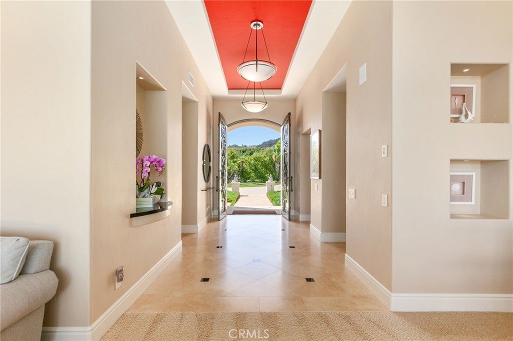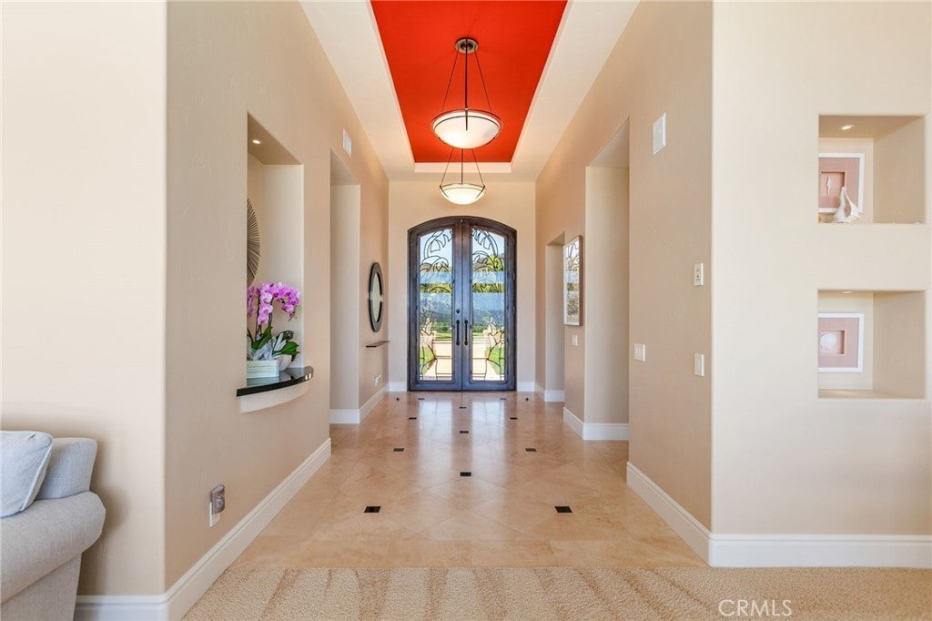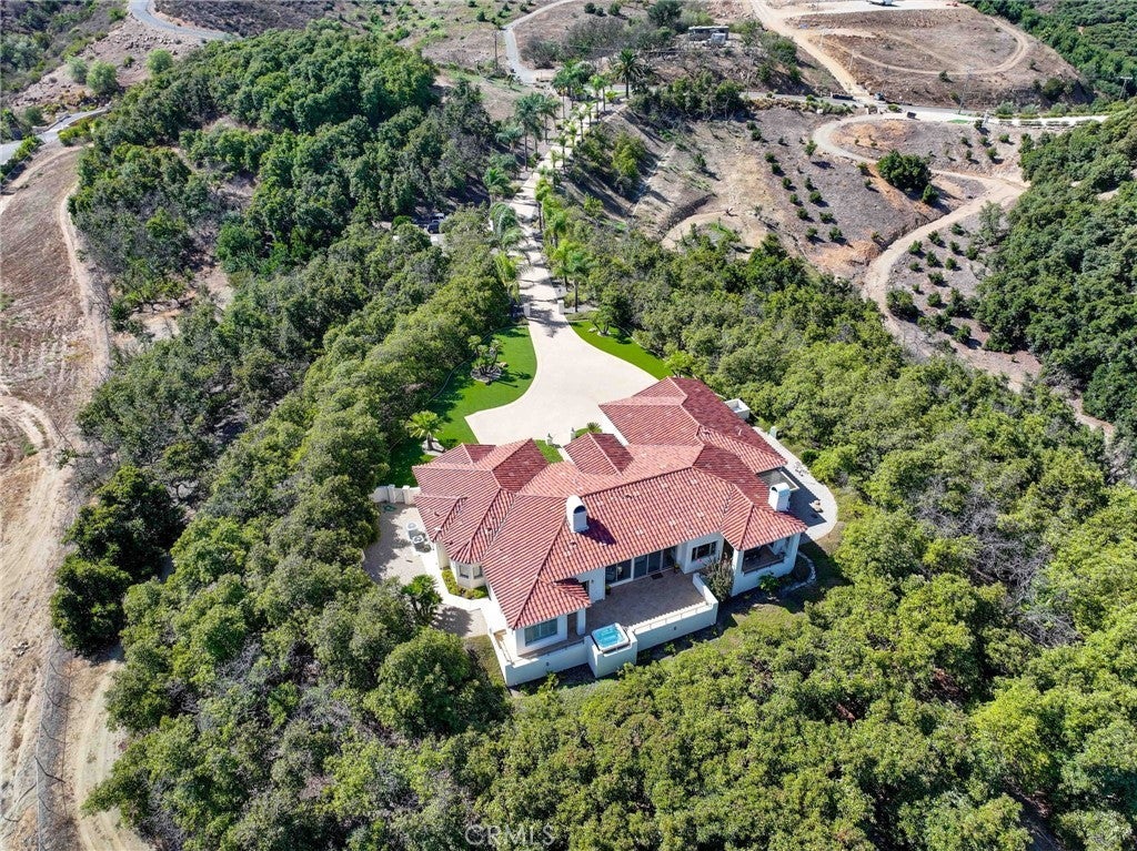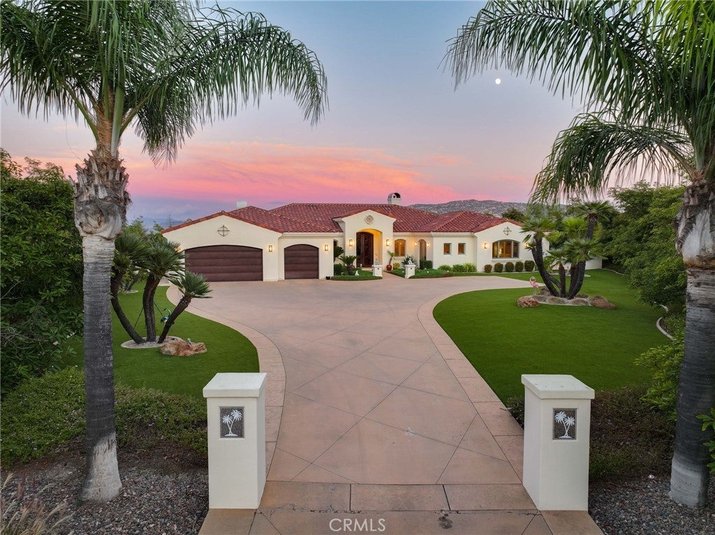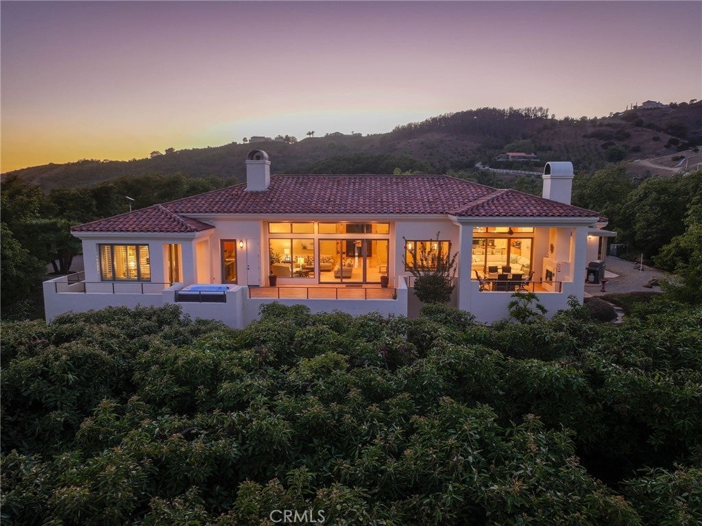 Situated on nearly 14 pristine acres, this custom-built De Luz estate offers unmatched privacy, elegance, and panoramic views of rolling hills and twinkling city lights. Beyond the private electronic gate, every detail reflects thoughtful design and superior craftsmanship. Constructed with insulated concrete form (ICF) technology, the home boasts 12-inch exterior walls for durability and efficiency, sound-insulated interiors, Marvin windows and doors, a whole-house Life Source water system, two Noritz tankless water heaters, zoned heating and cooling, Lutron lighting, and a genuine two-piece clay tile roof. The interior features soaring 12-foot ceilings in the main living areas, a sunken bar with sink, refrigerator, and wine cooler, plus custom cabinetry throughout. The chef’s kitchen is equipped with a new built-in stainless steel KitchenAid refrigerator, dual Miele dishwashers, and a warming drawer. Electric retractable screens in the living and family rooms add comfort and convenience. The primary suite offers breathtaking views, a sitting area, private deck access, dual vanities, a jetted shower, and an oversized soaking tub. Two additional bedrooms feature en-suite baths. The garage is fully upgraded with custom cabinetry, granite countertops, a butcher block workbench, and a Martin insulated garage door with low-noise openers. Outdoor living is exceptional with a full-length deck, wood-burning fireplace dining area, remote-controlled pergola, hot tub, and multiple lounge spaces ideal for entertaining. Just three miles from Old Town Temecula, this estate blends tranquility with convenience.