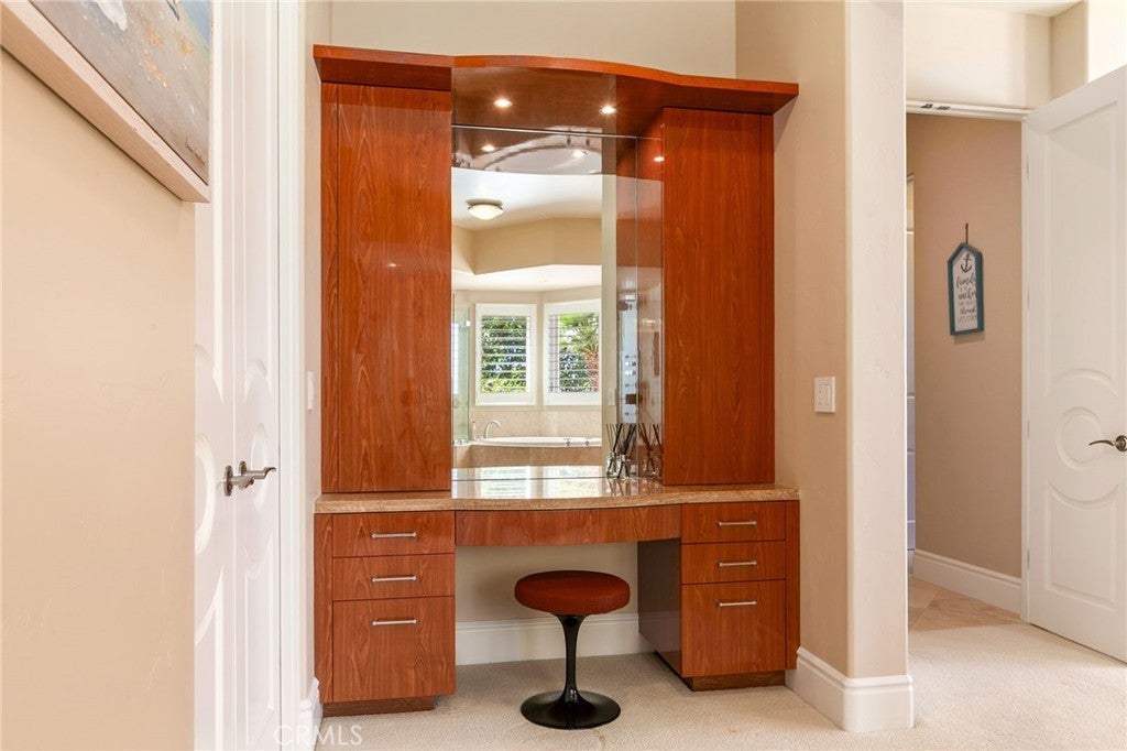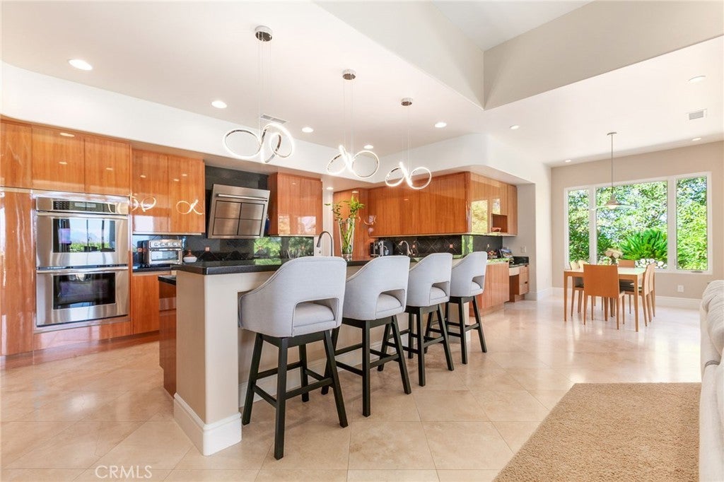 Wet Bar, Built-in Features, Coffered Ceiling(s), Eat-in Kitchen, Granite Counters, High Ceilings, Living Room Deck Attached, Phone System, Bar, Wired for Sound, All Bedrooms Down, Bedroom on Main Level, Main Level Primary, Multiple Primary Suites, Primary Suite, Walk-In Closet(s)