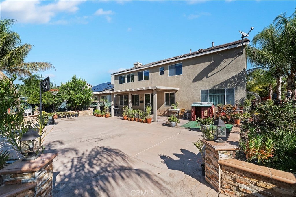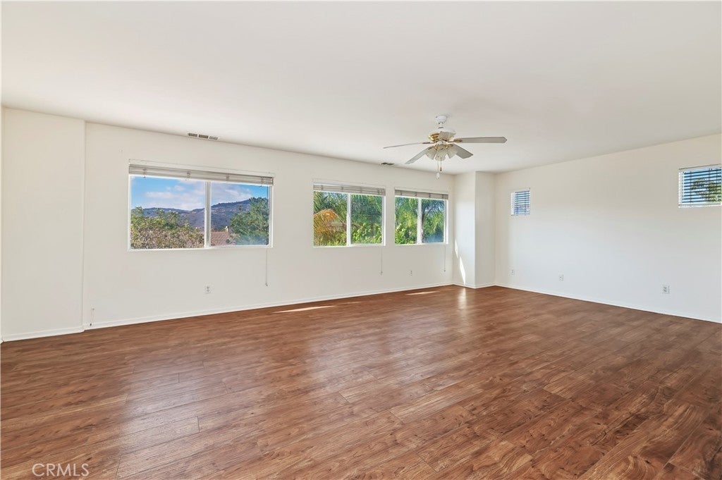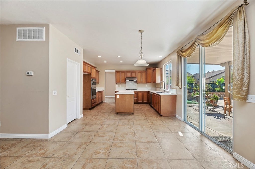 Stunning two-story home located in a charming Wildomar community! This spacious property features five large bedrooms and three and a half bathrooms, including a downstairs bedroom with its own private bath. The home boasts numerous upgrades and offers three garage spaces. Enjoy a separate dining room, as well as modern appliances, including newer ovens and a dishwasher. Enjoy working on these beautiful stone countertops. Step outside to a fantastic hardscape backyard, perfect for entertaining guests. The backyard also features a small pond in one corner and a cozy seating area in another, all under a covered patio equipped with a ceiling fan. Plus, you'll find fruit trees adding to the allure. Conveniently located near shopping and with easy access to the 15 freeway!