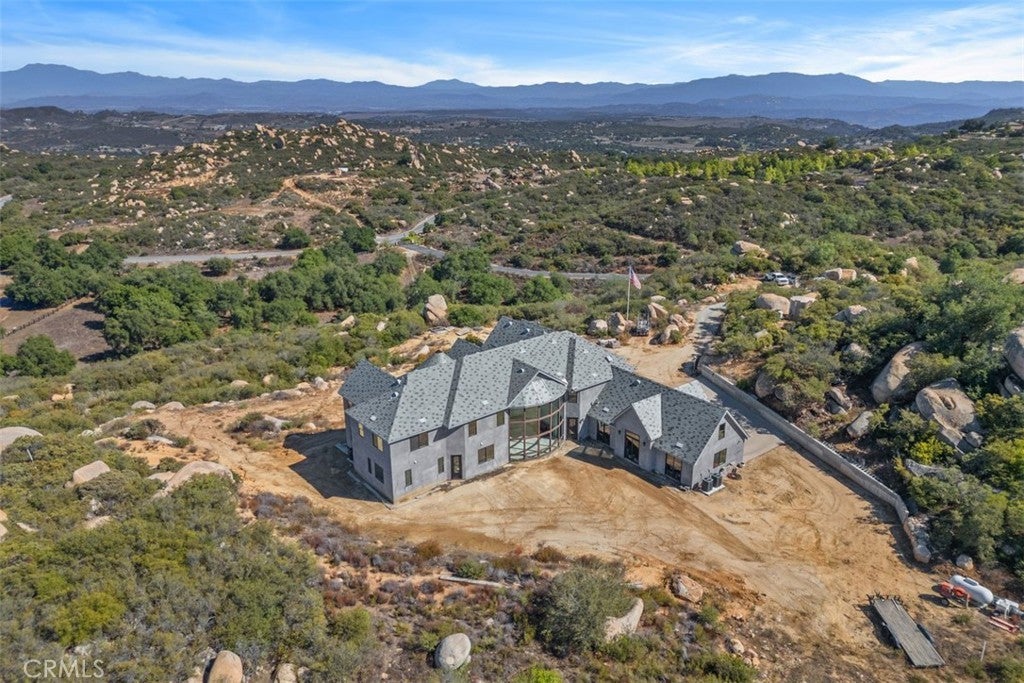 Welcome home to this Impressive Custom built estate with Stunning Million $$$ Views! Situated on 15.59 pristine acres within the prestigious La Cresta Highlands area. Imagine being King of the hill with the Cleveland National Forest just out you backyard! California's Best Kept Secret! A place where dreams come true! Featuring approximately 7000 square feet of living space with two separate stair cases, 4 bedrooms, 4 baths, formal living & dining, Chef's kitchen with massive pantry, office, theatre room, primary suite with vaulted ceiling, huge walk-in closet & partially finished luxury primary bath. The gourmet Chef's kitchen is designed for your personal choice of custom cabinetry, counter tops, faucet's and fixture's. It is equipped with Viking stainless steel appliances including dual oversized refrigerator's, oversized freezer, 8 burner cook range w/ two ovens, hood, microwave, dishwasher & trash compactor. Other features include exquisite custom steel doors, wrought iron railings, floor to ceiling windows, upstairs balcony, designed for future elevator, Lorex security system w/ 8 camera's, expansive laundry room with sink and loads of cabinets, huge walk-in attic storage, upstairs reading nook, interior fire sprinklers, propane line in formal living room for future fireplace, water line in pantry & above cook range in kitchen for future pot filler, high-end Vermont Slate roof, 22 foot ceilings, wired for data, sound & Cat 6, four-4 ton AC units,70 PSI pressure pump, 5000 gallon water storage tank, 4" & 1.5" outlets w/ fire hoses & great area's for executive pool, outdoor kitchen, guest home, barn, tennis courts, groves or anything else ones heart may desire! The estate is partially fenced with an exceptional estate gate entry! The property can also possibly be sub-divided into 3 five acre parcels. Please see the supplement sheet for a list of items that need to be completed to obtain the certificate of occupancy. La Cresta Highlands Life offers exceptional opportunity for country living at its finest with twinkling star filled skies, scenic open space, private trail systems, Santa Rosa Plateau Ecological Reserve & lovely community events! Located within minutes from all modern conveniences, award winning schools, restaurants, premier golf courses, shopping malls, hospitals, world renowned wineries, resorts & I-15 freeway.Less than 1.5 hours from LA, San Diego, Palm Springs, Beaches, Mountains & Amazing Theme Parks.The epitome of peace & tranquility!