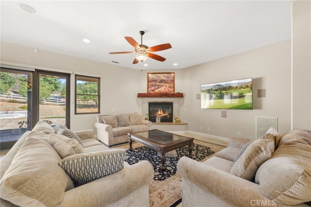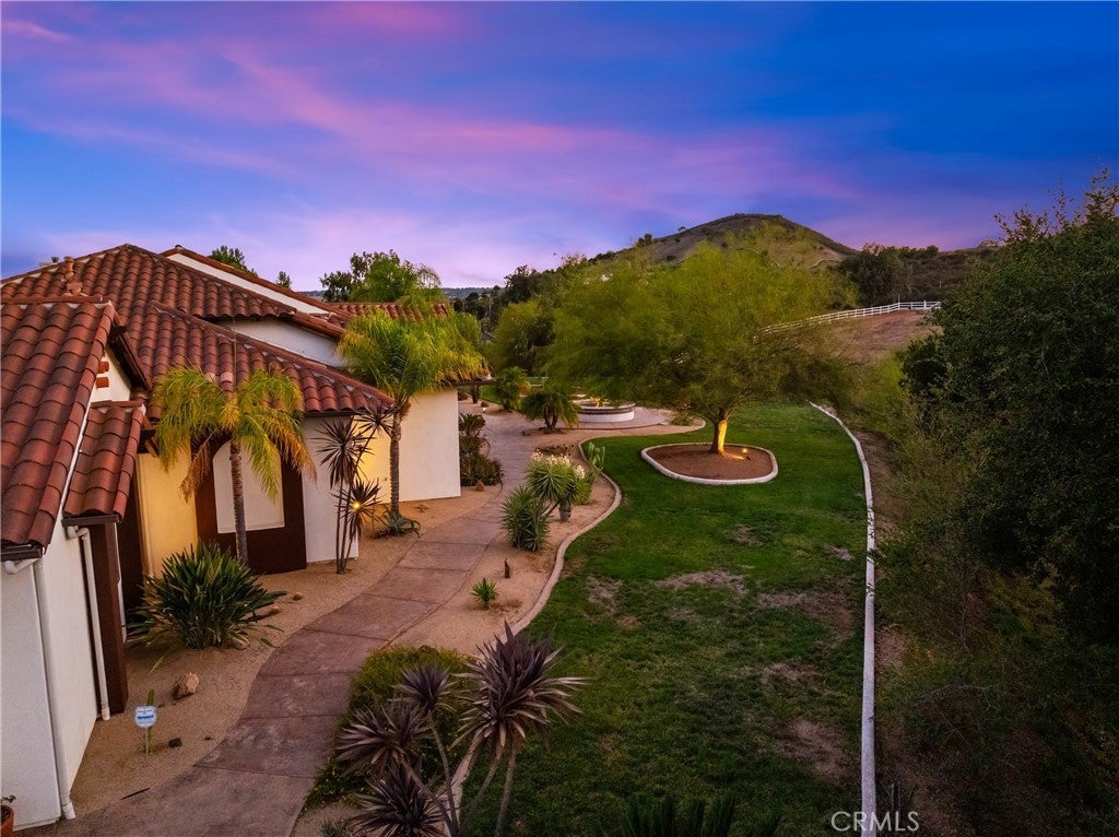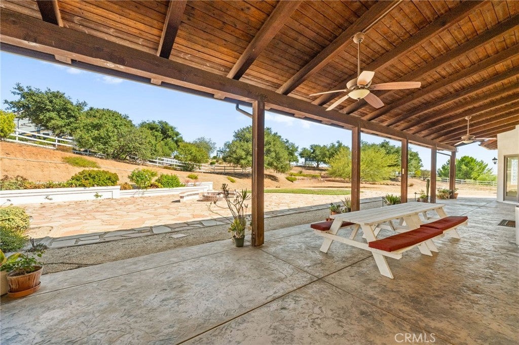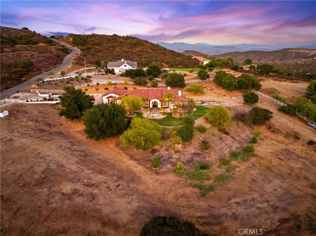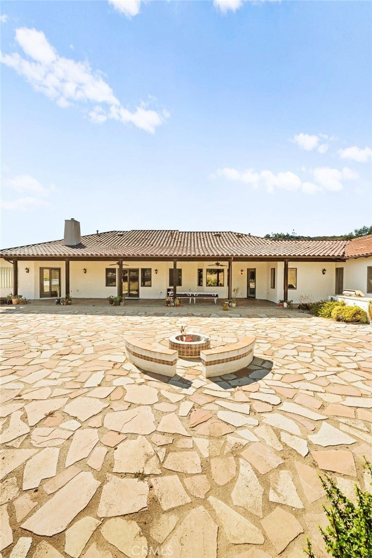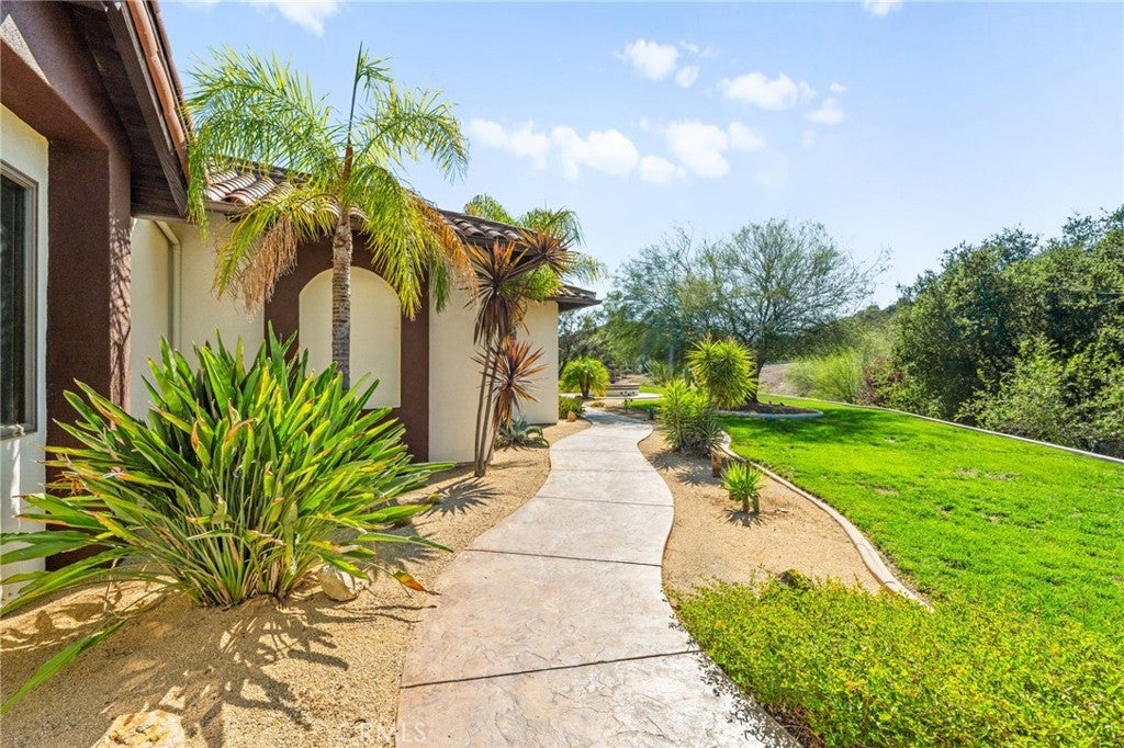 Set on 5.85 acres of mostly flat, usable land, this perfect single story, 3,492 square foot custom estate offers 4 bedrooms and 3.5 bathrooms, located close to the entrance of La Cresta. The automatic gate opens to over 7,000 square feet of custom reinforced concrete—perfect for RVs, large vehicles, or ample guest parking. Inside, you’ll find 10-foot ceilings, 8-foot solid mahogany doors, and 18-inch travertine flooring. The gourmet kitchen is designed for both everyday living and entertaining, with cherry cabinetry, a spacious island with prep sink, wine refrigerator, and premium appliances including a Viking cooktop, KitchenAid double convection ovens, built-in refrigerator, and dishwasher. Formal living and dining room areas feature walnut floors and coffered ceilings with ambient lighting. The primary suite offers a spa-like walk-in shower, jetted soaking tub, dual closets, and elegant finishes. Spend time in the 1,130-square-foot 3 car garage that includes a workbench, attic access, unique ceiling fan, and a 30-foot depth to easily accommodate large trucks. Outdoors, enjoy a built-in Kitchenaid BBQ, fire pit with ambient lighting, terraced landscaping, and a covered patio perfect for year-round gatherings. A 22kW Generac generator provides automatic backup power for peace of mind. 21977 Paseo Chico delivers the best of country living in the prestigious community, La Cresta, with quick access to wineries, restaurants, and shops.