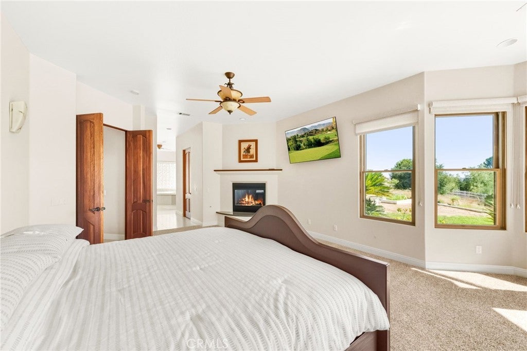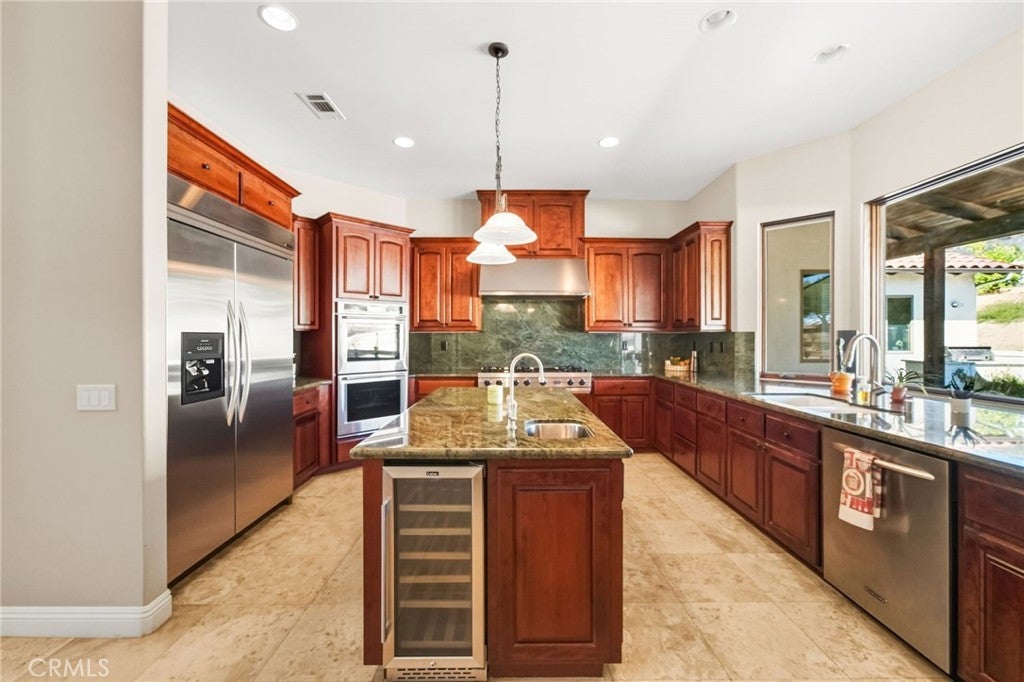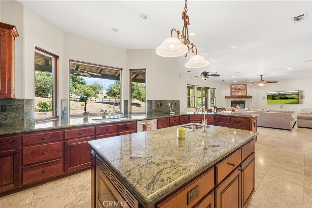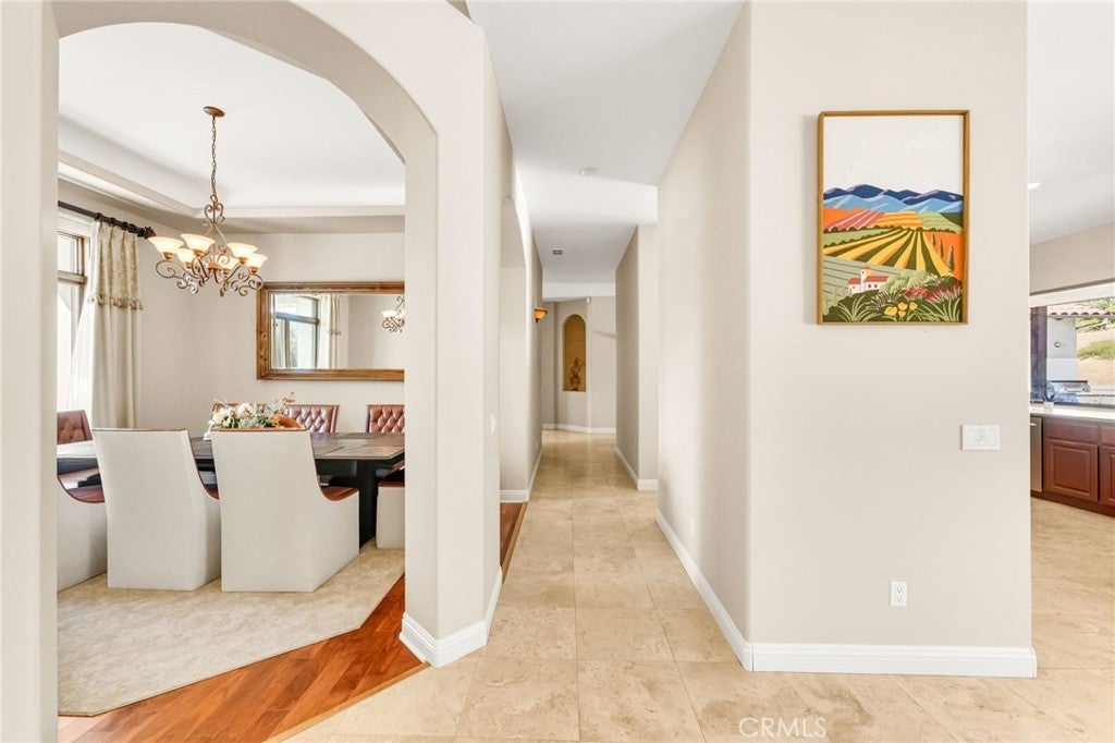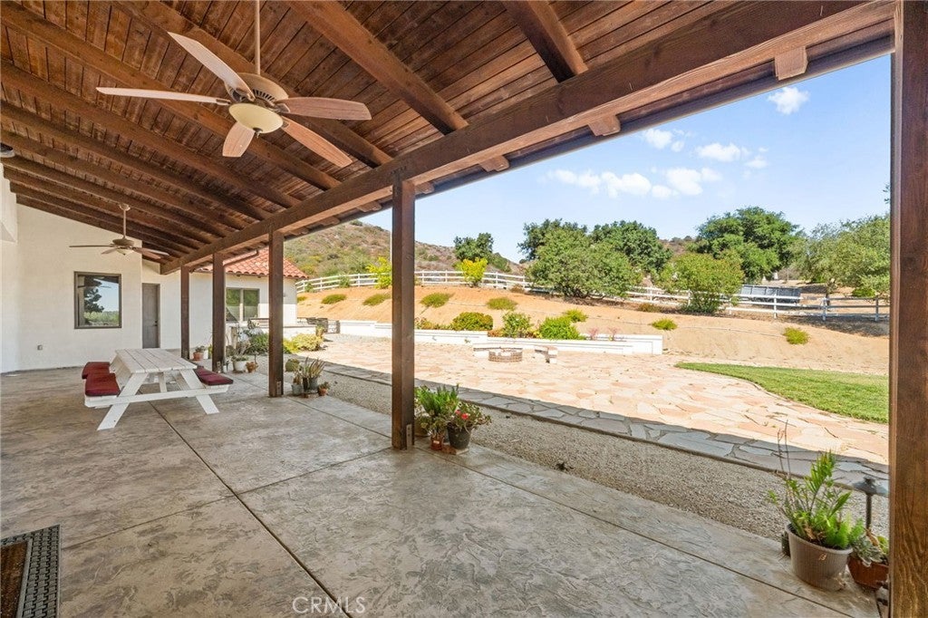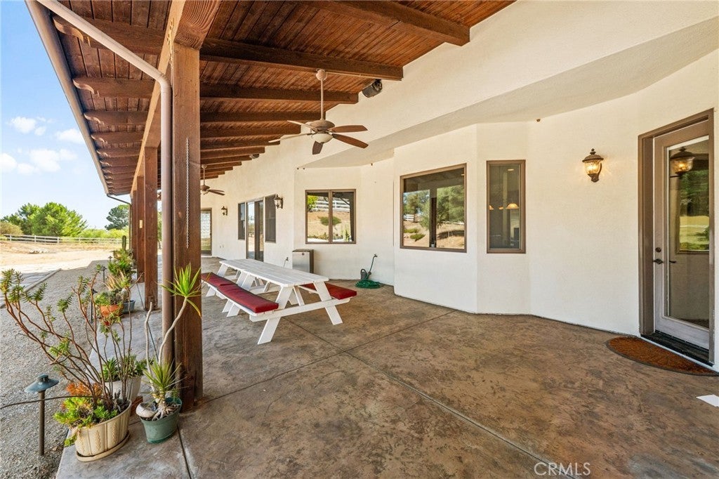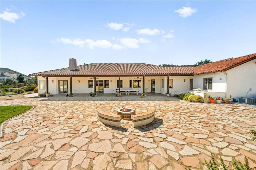 Set on 5.85 acres of mostly flat, usable land, this perfect single story, 3,492 square foot custom estate offers 4 bedrooms and 3.5 bathrooms, located close to the entrance of La Cresta. The automatic gate opens to over 7,000 square feet of custom reinforced concrete—perfect for RVs, large vehicles, or ample guest parking. Inside, you’ll find 10-foot ceilings, 8-foot solid mahogany doors, and 18-inch travertine flooring. The gourmet kitchen is designed for both everyday living and entertaining, with cherry cabinetry, a spacious island with prep sink, wine refrigerator, and premium appliances including a Viking cooktop, KitchenAid double convection ovens, built-in refrigerator, and dishwasher. Formal living and dining room areas feature walnut floors and coffered ceilings with ambient lighting. The primary suite offers a spa-like walk-in shower, jetted soaking tub, dual closets, and elegant finishes. Spend time in the 1,130-square-foot 3 car garage that includes a workbench, attic access, unique ceiling fan, and a 30-foot depth to easily accommodate large trucks. Outdoors, enjoy a built-in Kitchenaid BBQ, fire pit with ambient lighting, terraced landscaping, and a covered patio perfect for year-round gatherings. A 22kW Generac generator provides automatic backup power for peace of mind. 21977 Paseo Chico delivers the best of country living in the prestigious community, La Cresta, with quick access to wineries, restaurants, and shops.