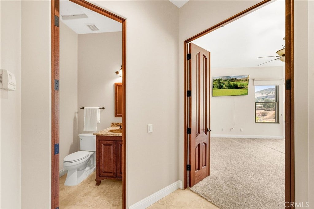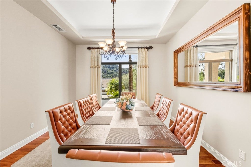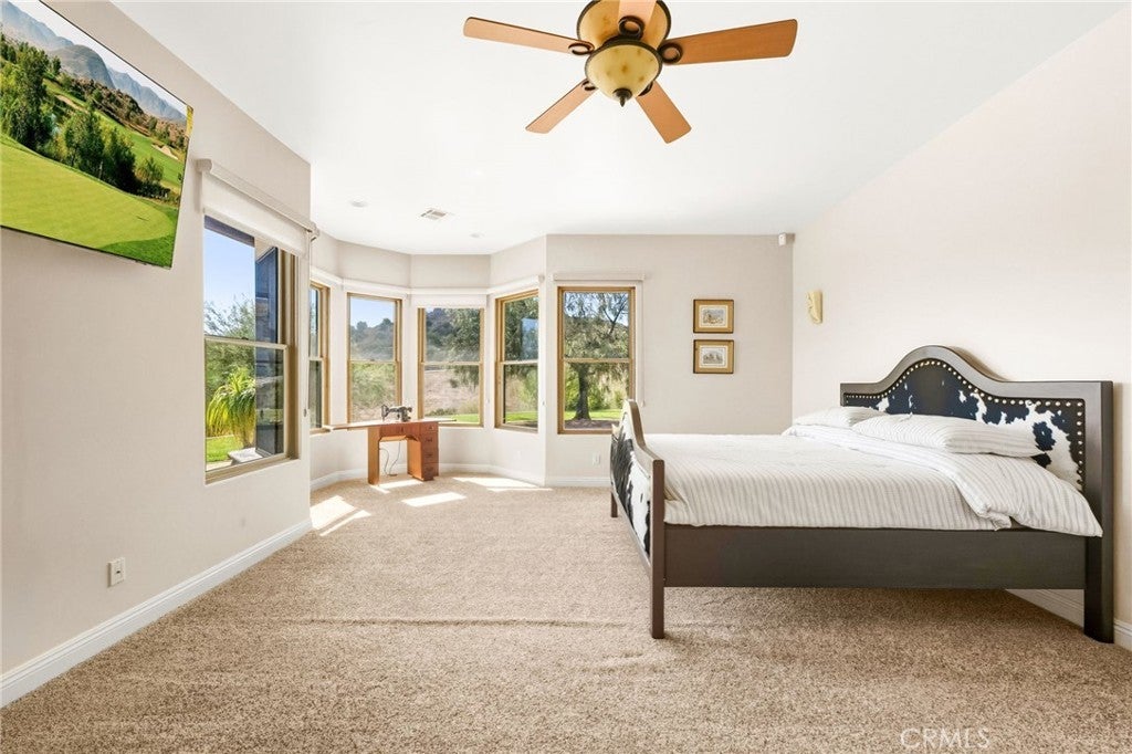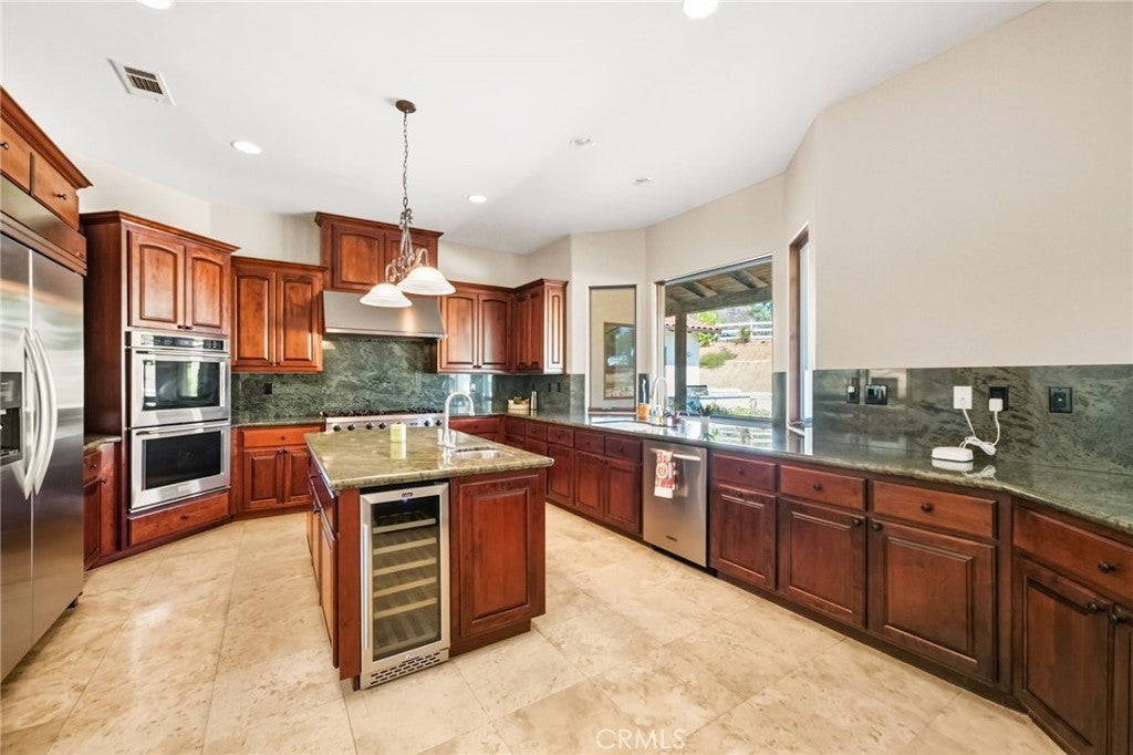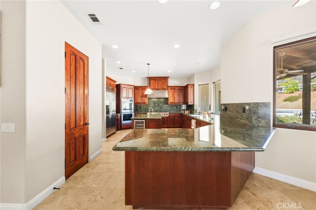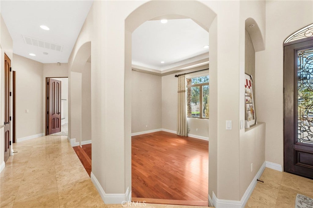 Set on 5.85 acres of mostly flat, usable land, this perfect single story, 3,492 square foot custom estate offers 4 bedrooms and 3.5 bathrooms, located close to the entrance of La Cresta. The automatic gate opens to over 7,000 square feet of custom reinforced concrete—perfect for RVs, large vehicles, or ample guest parking. Inside, you’ll find 10-foot ceilings, 8-foot solid mahogany doors, and 18-inch travertine flooring. The gourmet kitchen is designed for both everyday living and entertaining, with cherry cabinetry, a spacious island with prep sink, wine refrigerator, and premium appliances including a Viking cooktop, KitchenAid double convection ovens, built-in refrigerator, and dishwasher. Formal living and dining room areas feature walnut floors and coffered ceilings with ambient lighting. The primary suite offers a spa-like walk-in shower, jetted soaking tub, dual closets, and elegant finishes. Spend time in the 1,130-square-foot 3 car garage that includes a workbench, attic access, unique ceiling fan, and a 30-foot depth to easily accommodate large trucks. Outdoors, enjoy a built-in Kitchenaid BBQ, fire pit with ambient lighting, terraced landscaping, and a covered patio perfect for year-round gatherings. A 22kW Generac generator provides automatic backup power for peace of mind. 21977 Paseo Chico delivers the best of country living in the prestigious community, La Cresta, with quick access to wineries, restaurants, and shops.