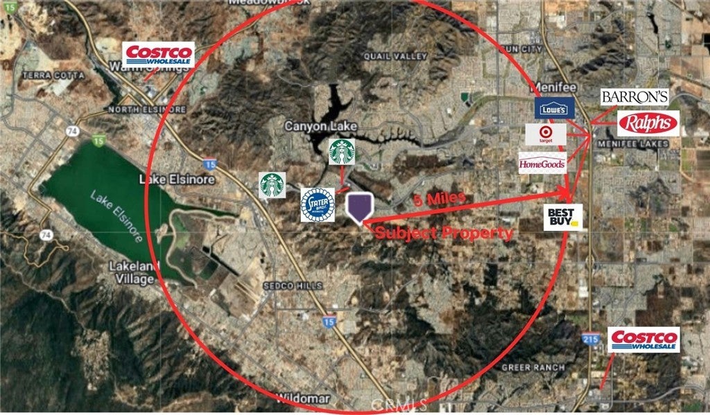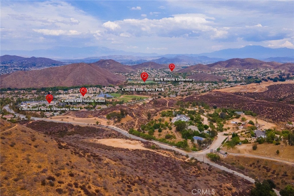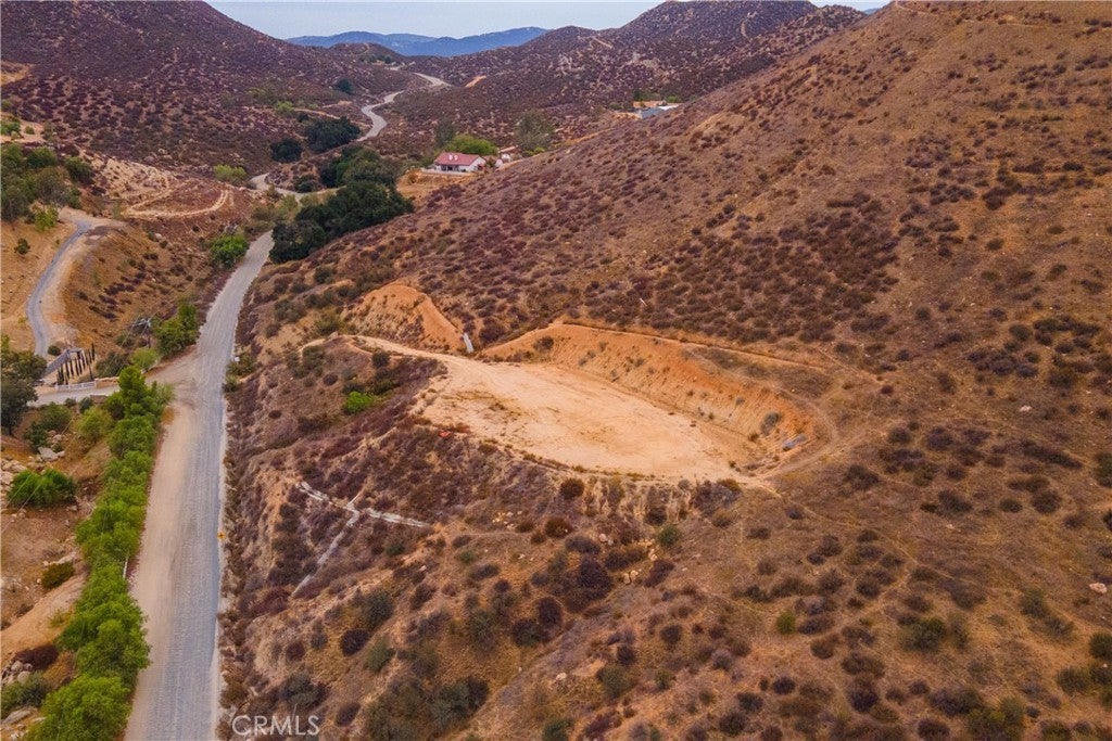 Welcome to Lost Road—where country living meets city convenience! This exceptional 5-acre vacant lot offers endless potential with a cleared and graded buildable pad already in place that is just shy of 1/2 acre. The pad, approximately 200 ft. (N-S) by 75–120 ft. (E-W), is ready for your custom home, with an unpaved driveway. A septic perc test (2015) and well location study (2015) have also been completed, giving you a head start on the building process. The property showcases breathtaking 180-degree panoramic views of Canyon Lake, rolling hills, lush valleys, and the San Bernardino, San Gabriel, and San Jacinto mountain ranges. Enjoy sunrises, moonrises, and ever-changing scenic beauty right from your future doorstep. Perfectly situated for families, this property is within walking distance to both an elementary and middle school, while still offering the privacy and tranquility of a rural setting. Just minutes away, you’ll find all the modern conveniences of shopping, dining, and entertainment. Plus, it borders the highly desired Canyon Hills neighborhood, adding to its desirability. Whether you envision a peaceful retreat, family estate, or investment opportunity, this property delivers with its prime location, stunning vistas, and build-ready features. Buyer to verify all information with the city and/or county for allowable uses and requirements. Buyer responsible for checking zoning, utilities, permits and property boundaries.