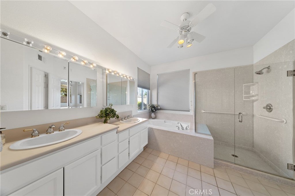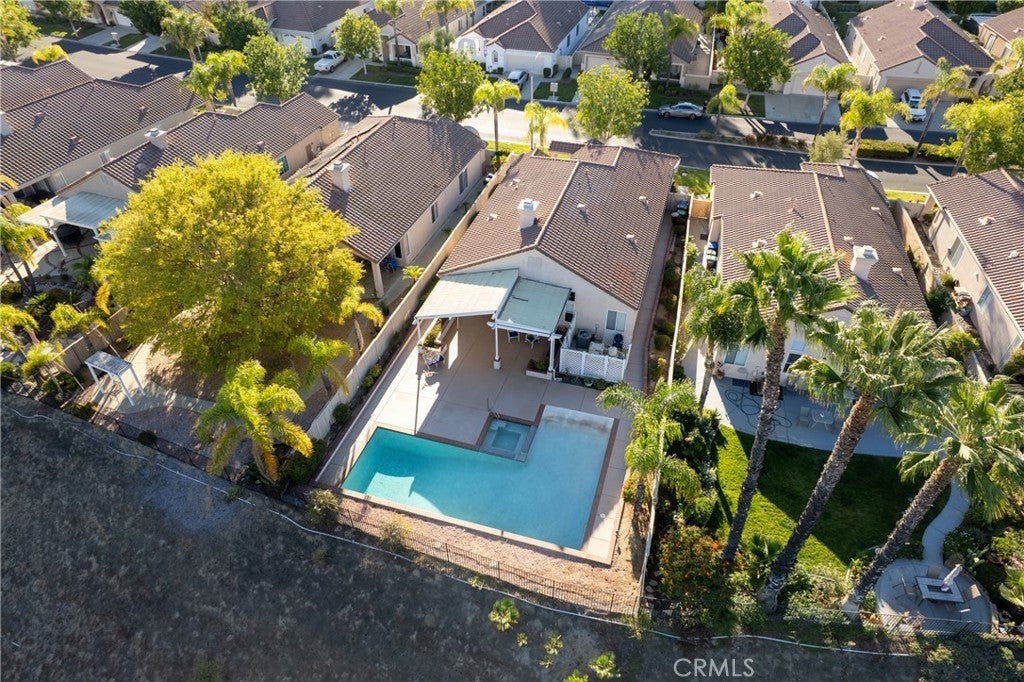 YOUR OWN PERSONAL RESORT with a large PRIVATE POOL, SPA & MAGNIFICENT VIEW OVER THE GOLF COURSE to the MOUNTAINS. This beautiful single-story home on a LARGE PREMIUM LOT is ideal for family gatherings with a SPACIOUS COVERED PATIO, sloped easy-entry pool + a spa with directional jets for relaxing. **2 PRIMARY BEDROOM SUITES.** This lovely home sparkles with FRESH INTERIOR PAINT and laminate & tile flooring. The living area is light & airy with vaulted ceilings & lots of natural light. Kitchen has a double oven & stainless-steel cooktop, dishwasher & refrigerator and there is a casual dining nook. The primary retreat offers plenty of space for your bedroom plus a sitting area. Primary bath is UPGRADED with easy-care MARBLE COMPOSITE SHOWER, RIMLESS GLASS DOORS, soaking tub, dual sinks and a large walk-in closet with custom built-ins by Closet World. Bedroom 2 could be a SECOND PRIMARY BEDROOM boasting a walk-in closet with shelving & storage + an en-suite bath. Bedroom 3 is used as an office with a built-in desk, storage and file drawers by Closet World. There is a convenient half bath for guests and an indoor laundry room with a sink and storage. The exterior is so inviting with a private entry courtyard, concrete walkways on both sides & lots of brick-lined planters. You will love the energy efficiency of QUIET COOL FANS in 4 areas with individual controls to cool the home & the attic. Your garage has room for 2 cars + a golf cart or work area with built-in storage, finished floor and attic ladder. This spectacular home is centrally located on beautiful Colony Drive, nestled in The Colony, a vibrant 55+ GATED COMMUNITY. This stunning residence grants access to a RESORT STYLE CLUBHOUSE with an array of amenities for an unparalleled lifestyle. You will love the year-round community pool, 2 spas, lighted pickle ball/paddle tennis & tennis courts. You can enjoy the gym, library, ping pong, billiards, hair/nail salon. There are groups & activities for all interests with an auditorium for shows, dances, banquets, concerts, movies, bingo & parties for all occasions. A privately owned 18-hole golf course is inside the gate. The HOA waters & maintains all front landscaping. Guard gated entry and 24-hour security patrol give you peace of mind. In the safe city of Murrieta, you are close to stores, restaurants, medical, casinos and wineries. Enjoy the friendly neighbors and sense of community for TRUE RESORT STYLE SENIOR LIVING in The Colony.