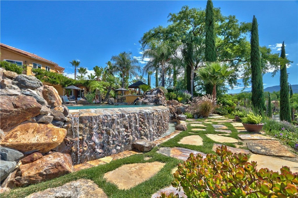 Set on 2.5 acres in the heart of Temecula’s wine country, this hilltop estate pairs privacy with sweeping views. A private gated drive leads up to the 4,656 sq ft home, where thoughtful design and custom craftsmanship are on display from the moment you step inside. The interior is open and inviting, with tall ceilings, expansive windows, and a layout that flows naturally for both everyday living and entertaining. The kitchen connects seamlessly to the living spaces, while a temperature-controlled wine cellar adds a unique touch. Outdoors, the saltwater infinity pool edged with locally sourced stone feels like a natural extension of the landscape. Multiple patios and covered spaces make it easy to host friends or simply unwind while taking in vineyard sunsets. Full RV Hookups and two oversized two-car garages with EV hookups and built-in shelving. Just minutes from shopping, dining, and world-class wineries, this estate blends comfort, function, and the beauty of wine country living.