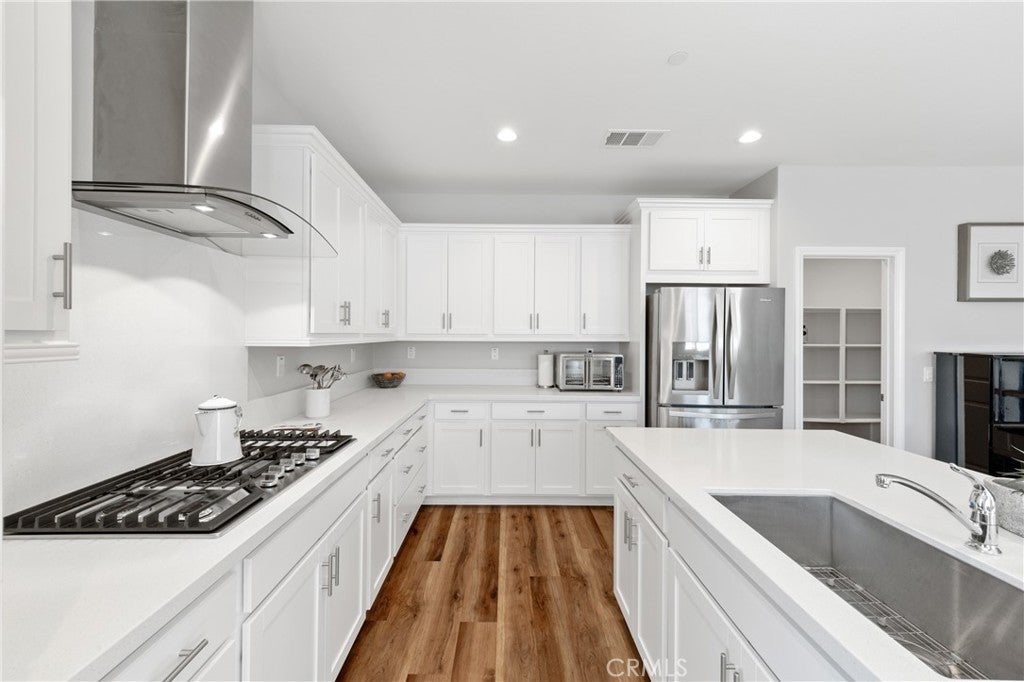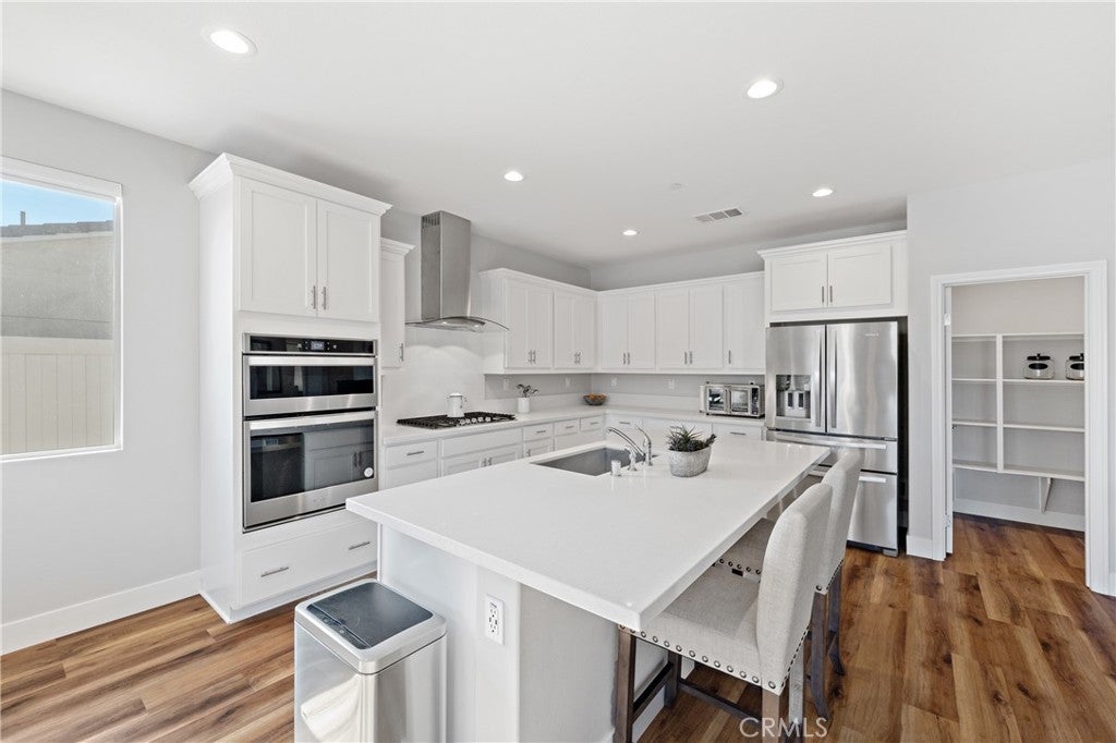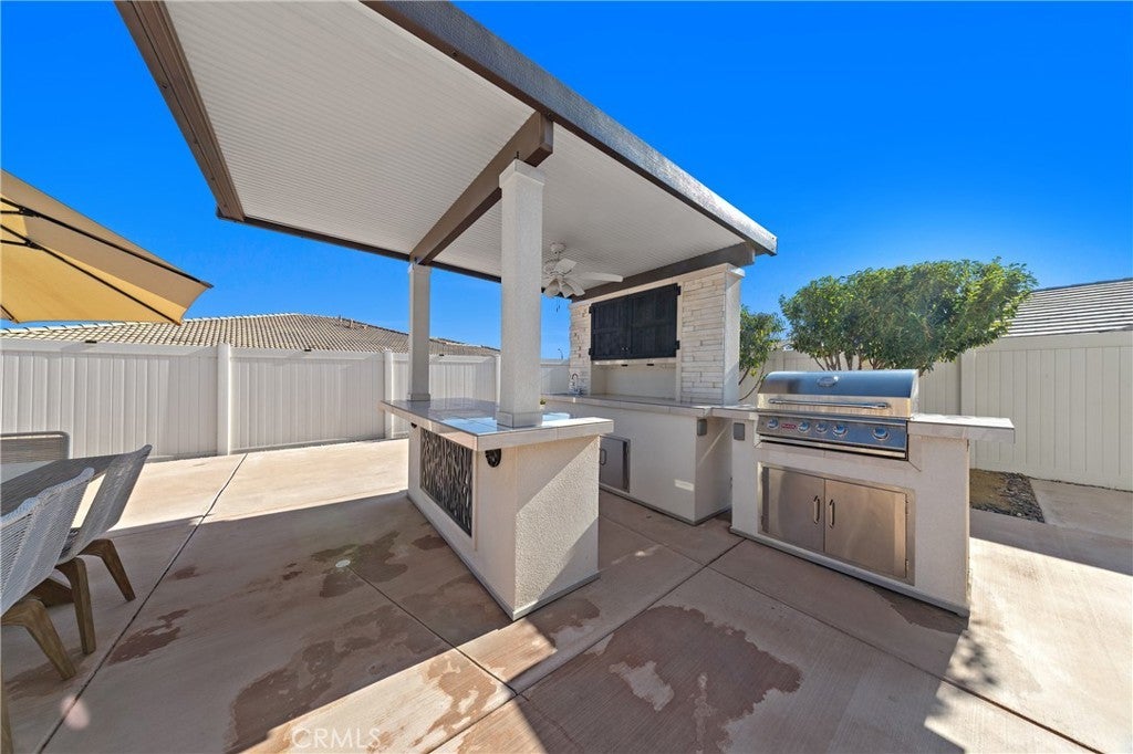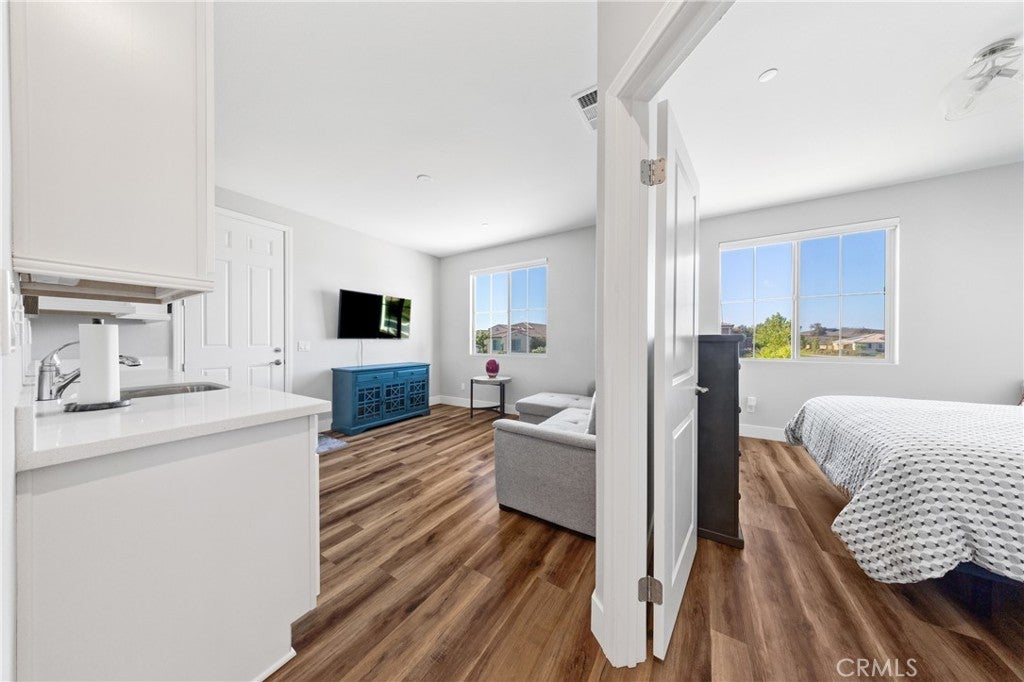 Welcome to this stunning single-story Next Gen suite home in the beautiful community of Winchester! Built in 2021, this highly upgraded residence offers 4 bedrooms, 4 bathrooms, a dedicated den/home office and 2,641 sq. ft. of living space on a spacious 8,712 sq. ft. lot. The thoughtfully designed floor plan includes a private Next Gen suite/casita with a separate entrance, featuring its own living area, kitchenette and private bathroom- ideal for multi-generational living, guests, extended stays, or potential rental income. Inside, you’ll find a chef’s kitchen with quartz countertops, upgraded cabinets with chrome fixtures, stainless steel appliances, and a large island, making it the heart of the home. Bathrooms are finished with elegant marble countertops, while the living areas feature luxury vinyl flooring throughout, a Nest thermostat, pre-wiring for ceiling fans, and blackout window treatments for comfort and efficiency. The garage boasts epoxy flooring and EV charging readiness, while paid solar provides energy savings. Step outside to a finished, low-maintenance backyard with high yielding fruit and multiple plantar boxes all equipped with drip-irrigation, a fully equipped BBQ island featuring a stainless steel BBQ, under-counter refrigerator, TV housing area, embedded Bluetooth speakers, customized lighting, electrical outlets, and connected gas and water lines. The yard also includes permitted gas, water, and 220v electrical lines, gated side yard parking suitable for RV's, trailers, or boats up to 10x60 ft as well as a low-maintenance front yard with drip irrigation and weather station control. With no HOA, this property offers flexibility and freedom, all while being located in the highly sought-after Temecula School District, and near by Temecula wineries. This home combines modern upgrades, energy efficiency, and thoughtful design, perfect for families and entertainers alike!