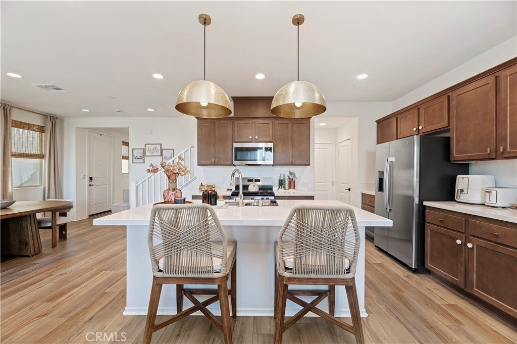 Shows like a Model Home and thoughtfully upgraded throughout, it’s a must-see. Inside, you’ll find a kitchen where creativity and connection come to life. Designed for the chef at heart and for the host who loves to gather family and friends, every detail invites warmth and togetherness. From the spacious countertops perfect for holiday baking to the open layout that keeps everyone part of the conversation, this is where memories are made. Whether you’re serving up your signature dish or sharing laughter over morning coffee, this kitchen is the heart of the home. The main living area features luxurious vinyl plank flooring and a newly built fireplace. Upstairs, in addition to the three bedrooms, the loft offers the perfect retreat with plenty of room to relax and unwind. The beautifully landscaped backyard is designed for entertaining. It's ideal for gatherings, barbecues, or simply enjoying the outdoors. Plus, with no neighbors behind, you’ll enjoy added privacy and peaceful views. All of this is located in a thriving community with a low HOA, where residents enjoy a resort-style clubhouse and top-tier amenities that truly elevate your lifestyle. Don’t miss your chance to be among the first to tour this beautiful home.