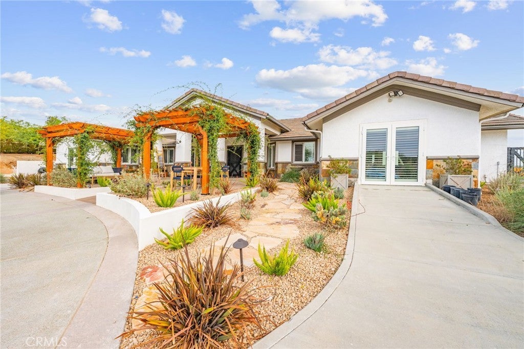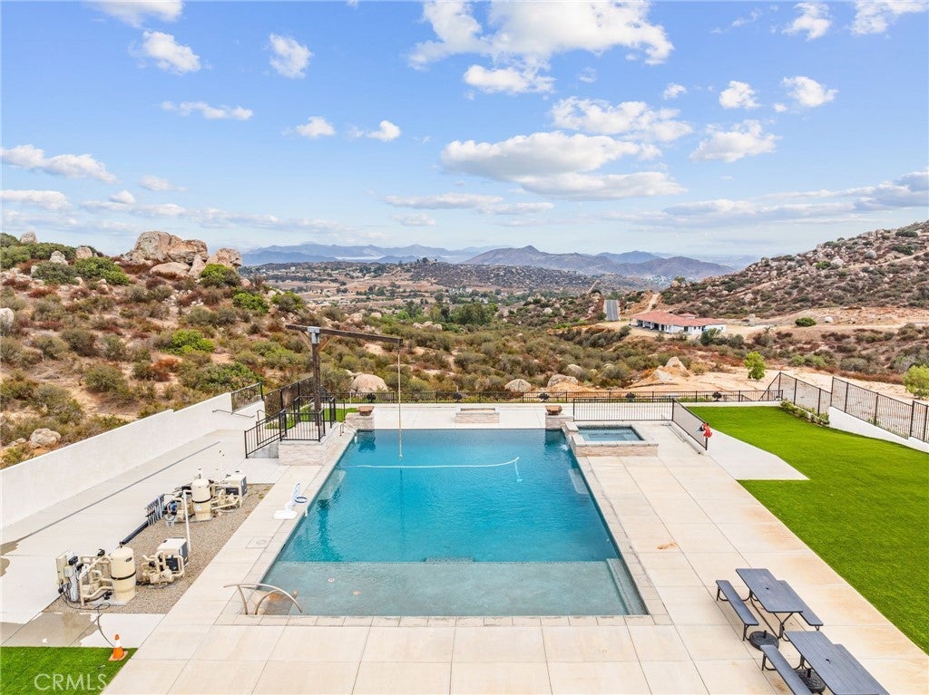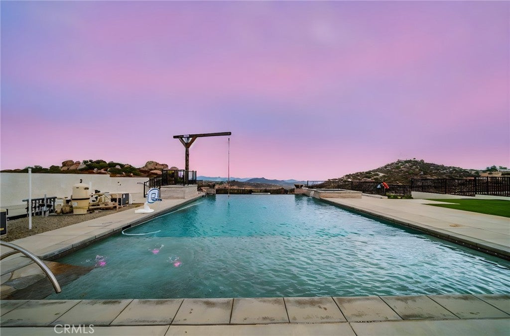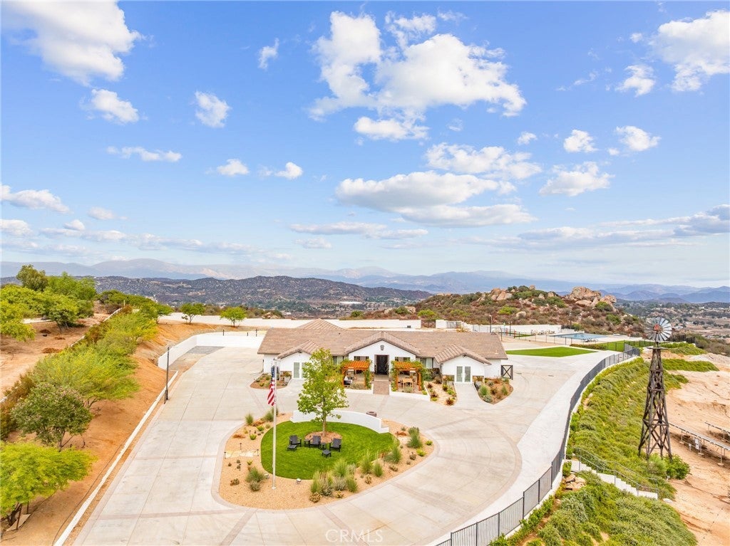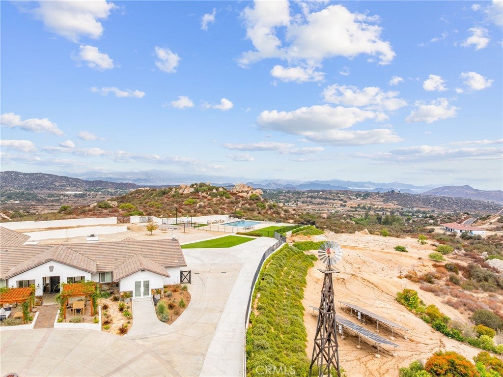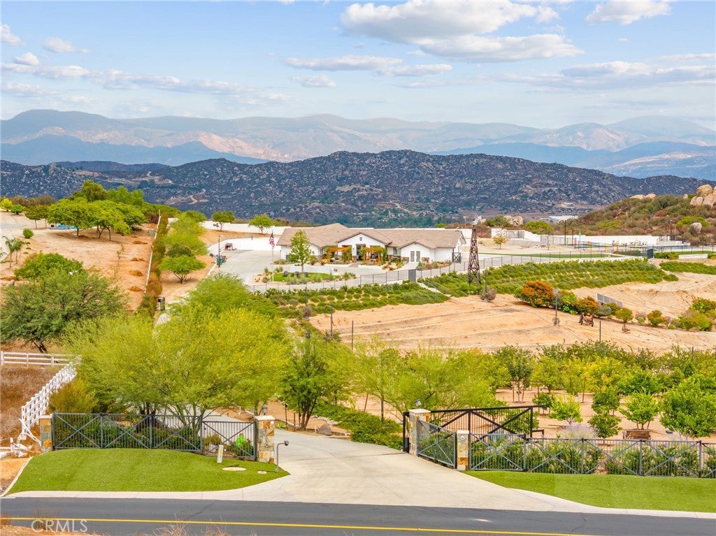 PRICE ADJUSTMENT! Welcome to 31930 Via Del Senor in The Ranch at Sky Mesa — a prestigious, gated community of private estate homes. Your new residence awaits on a 5.04-acre property with sweeping views of Diamond Valley Lake and surrounding mountain vistas. This 3,284 sq ft single-level estate sits at the end of a 400-yard cement driveway, offering elegance and privacy inside and out. The grounds feature a 46+ ft infinity-edge Pebble Tec pool with spa and splash pad, a dedicated gated dog park, and a flourishing orchard of 75 fruit trees on drip irrigation — all beautifully accented with low-voltage landscape lighting and string lights throughout the orchard. Start your mornings with coffee as hot air balloons rise over the lake, spend afternoons poolside, or savor margaritas in the spa under the stars. Inside, you’ll enjoy expansive living areas, a gourmet kitchen, and a garage converted to a home gym, complete with a dedicated bath designed for a dry sauna, cold plunge, or guest lockers. With solar thermal panels dedicated to heating the pool, usable flat acreage, and the security of a gated community, this property offers a rare blend of sophistication, recreation, and serenity.