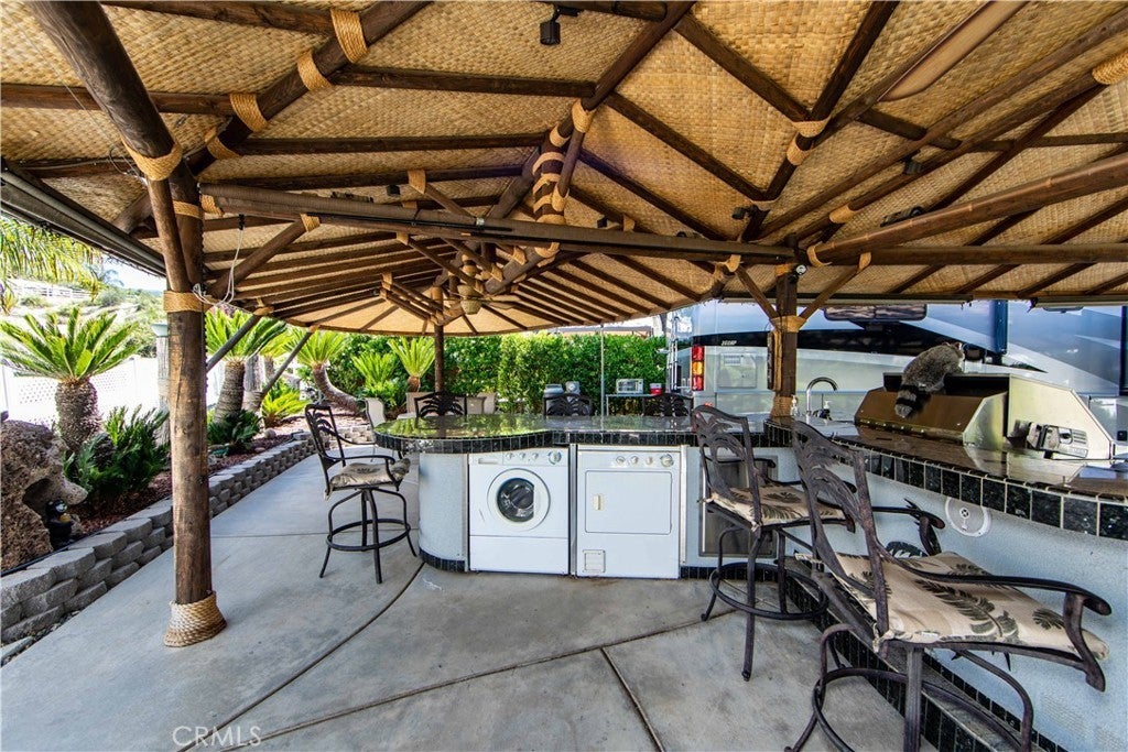 Entertain, Entertain Entertain, this property has a ginormous custom built Island with full cover and plenty of seating with two different areas for guests. You will love the finishing touches throughout the site. They thought of everything while they have been living on the property for years. The extra considerations with 2 parking areas for golf carts, Sego Palms all over and set on sprinklers for a low maintenance but beautiful lot. A few add-ons they added to the site: Built-in BBQ, Washer & Dryer, 2 mini refrigerators, stereo system, outdoor TV, water softener, even artificial turf. Included in Rancho California RV Resort is a 14 hole Executive Golf Course that is free for owners, 5 Pools and Jacuzzi areas, Tennis Courts, Pickle Ball Courts, Laundry Rooms, Dog Park, Horse Shoe Lawn, Club House, Hiking Trails, and Restaurant all inside Gated Community that is Guarded 24/7. You can live here or rent your space. Peace and quiet serenity all just 25 minutes from Temecula Wine Country. No age restrictions. Come on over and check this hidden gem of a place out... Financing Available...