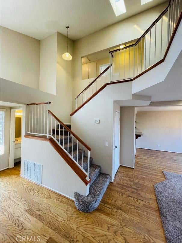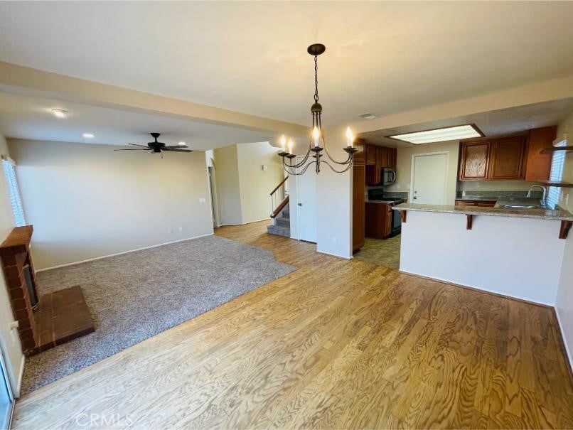 BEAUTIFUL, two-level home in Menifee with 3 bedrooms, Plus Loft, 2-1/2 baths, and a 2 car garage. The downstairs has an open floor plan with living room including a cozy fireplace, adjacent dining area, kitchen with granite countertops including a breakfast bar area, new appliances, 1/2 bath and the spacious primary bedroom, bath and walk in closet are also downstairs. The laundry area is in the garage. The home has high ceilings and the upstairs has a Loft, 2 more bedrooms with a full bath and linen cabinet in between. The West end bedroom is large and has direct access to the upstairs bath and also has a large balcony overlooking the hills to the West. The home has newer interior and exterior paint, new carpet, new blinds, and ceiling fans. This home is near McCall and Murrieta Rd., so it is close to shopping, restaurants and in between the 15 and 215 Freeways for commuting. The front and backyard landscaping are a work in progress and maintained by a gardener. The backyard has a patio area ready for your patio set and BBQ! A Must See!
