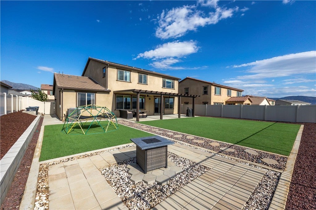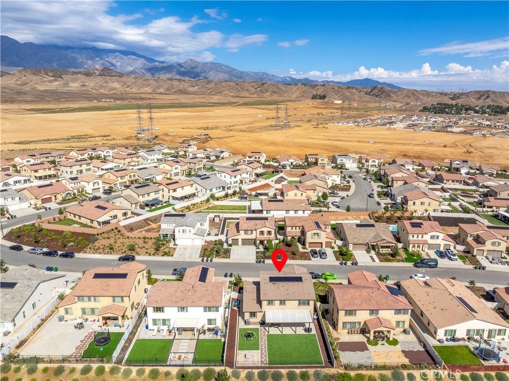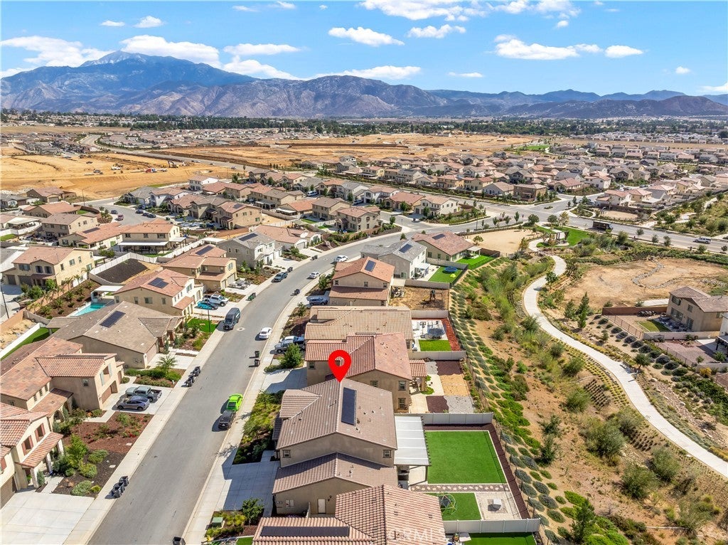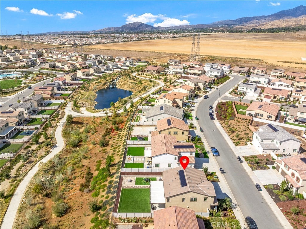 Welcome to 2061 Horizon Drive, a stunning 4 Bedroom, 2 and Three-Quarter Bathroom property located in the desirable Master-Planned Community of Atwell. Built in 2022, this home offers 2,844 sq. ft. of living space, privacy, breathtaking views and a peaceful river running along the back that you’ll love coming home too! As you step inside, you immediately notice the tall 9-Foot ceilings and open-concept floorplan, very spacious and modern throughout. The heart of the home is the chef’s kitchen, complete with a large kitchen island, soft-close cabinetry, and abundance of storage. The kitchen flows seamlessly into the expansive living room, perfect for everyday living and entertaining with family and friends. As you step outdoors, your backyard retreat awaits you! This beautifully designed, low maintenance backyard features artificial turf, a raised garden bed, room for a play area, a large dura-cool alumawood patio cover with ceiling fans, a cozy fire pit, and the peaceful sounds of water flowing through a man-made river that runs along the backside of the home, through the center of the Atwell community. It’s the perfect setting to unwind or host family and friends. Notable Features & Upgrades include: Paid-Off Solar (7 panels), LVP Flooring, Tankless Water Heater, Hardwired Security System Atwell Community Lifestyle & Surrounding Areas: Life at Atwell means access to incredible amenities designed for recreation, connection, and relaxation. The community when built out will feature five recreation centers, each with its own mix of amenities. Every center will include a pool, tot lot, and outdoor dining spaces, creating the perfect gathering place for neighbors and friends. Walking trails and sports parks provide even more opportunities to enjoy the outdoors. Living at Atwell means you’re within easy reach of the natural beauty of Joshua Tree National Park, Idyllwild, Big Bear, Palm Springs, and Redlands, ideal for day trips, hikes, or a night out on the town. Whether you’re soaking up the sun by the pool, enjoying a picnic, or watching the kids play, Atwell offers the perfect backdrop for lasting memories.