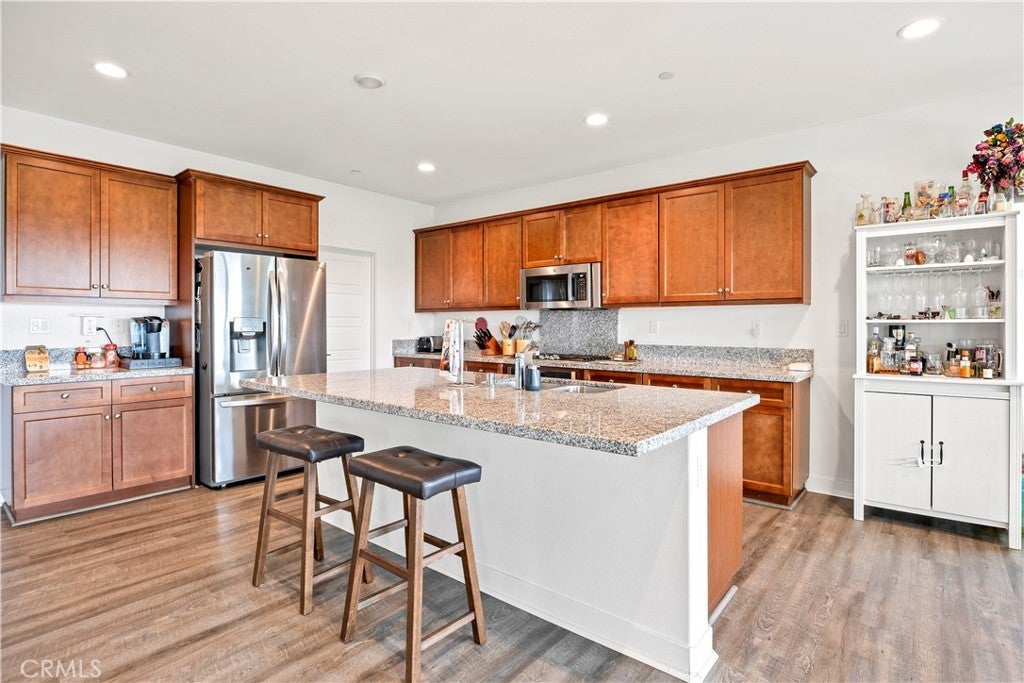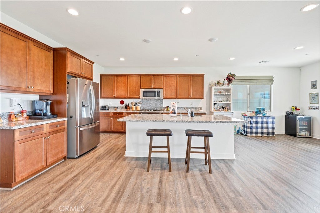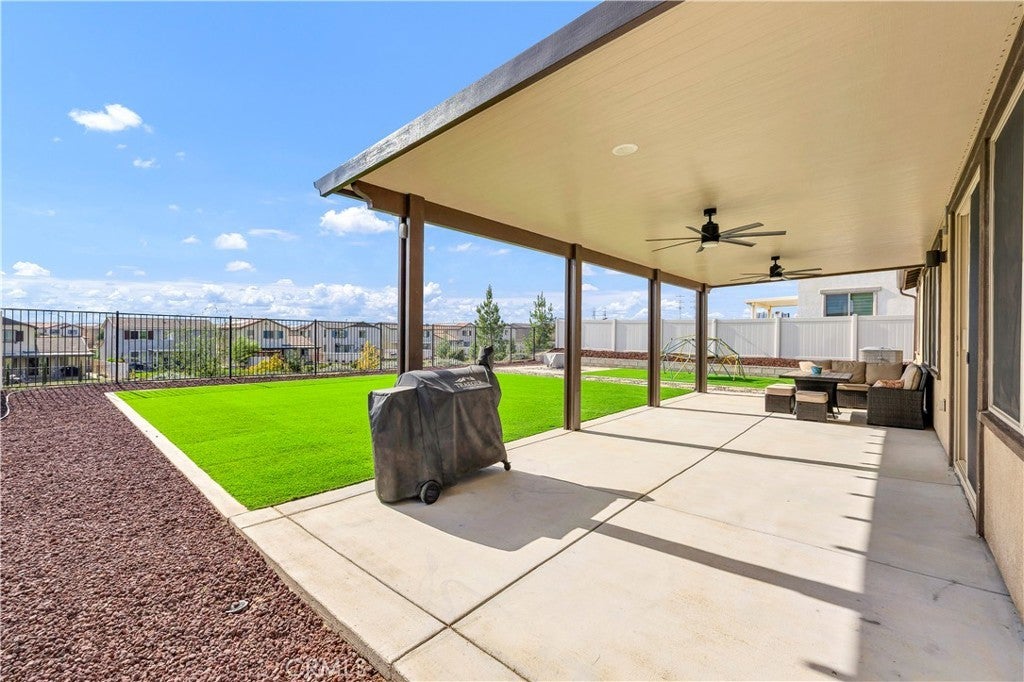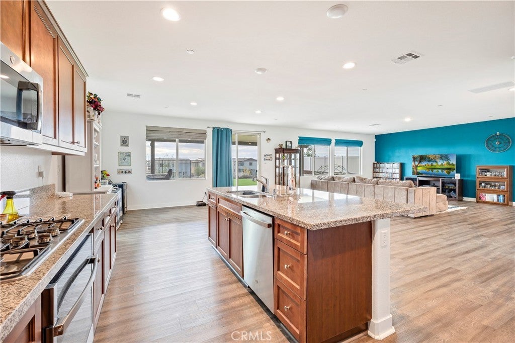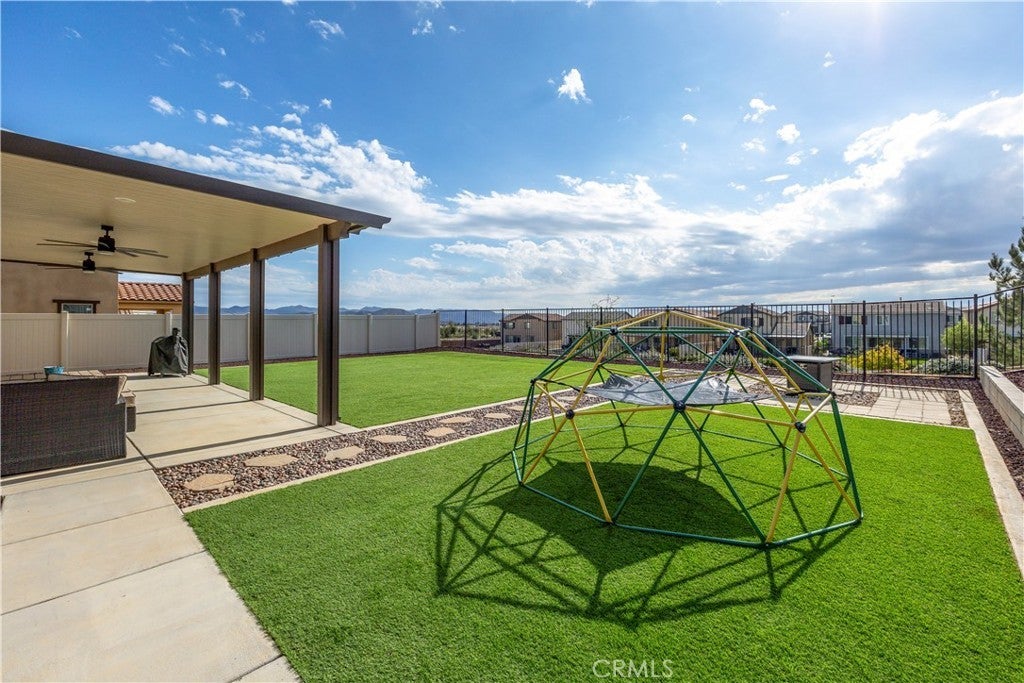 Welcome to 2061 Horizon Drive, a stunning 4 Bedroom, 2 and Three-Quarter Bathroom property located in the desirable Master-Planned Community of Atwell. Built in 2022, this home offers 2,844 sq. ft. of living space, privacy, breathtaking views and a peaceful river running along the back that you’ll love coming home too! As you step inside, you immediately notice the tall 9-Foot ceilings and open-concept floorplan, very spacious and modern throughout. The heart of the home is the chef’s kitchen, complete with a large kitchen island, soft-close cabinetry, and abundance of storage. The kitchen flows seamlessly into the expansive living room, perfect for everyday living and entertaining with family and friends. As you step outdoors, your backyard retreat awaits you! This beautifully designed, low maintenance backyard features artificial turf, a raised garden bed, room for a play area, a large dura-cool alumawood patio cover with ceiling fans, a cozy fire pit, and the peaceful sounds of water flowing through a man-made river that runs along the backside of the home, through the center of the Atwell community. It’s the perfect setting to unwind or host family and friends. Notable Features & Upgrades include: Paid-Off Solar (7 panels), LVP Flooring, Tankless Water Heater, Hardwired Security System Atwell Community Lifestyle & Surrounding Areas: Life at Atwell means access to incredible amenities designed for recreation, connection, and relaxation. The community when built out will feature five recreation centers, each with its own mix of amenities. Every center will include a pool, tot lot, and outdoor dining spaces, creating the perfect gathering place for neighbors and friends. Walking trails and sports parks provide even more opportunities to enjoy the outdoors. Living at Atwell means you’re within easy reach of the natural beauty of Joshua Tree National Park, Idyllwild, Big Bear, Palm Springs, and Redlands, ideal for day trips, hikes, or a night out on the town. Whether you’re soaking up the sun by the pool, enjoying a picnic, or watching the kids play, Atwell offers the perfect backdrop for lasting memories.