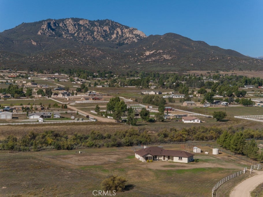 Nestled within the desirable Lake Riverside Estates community, this stunning custom-built home sits on 2.9 acres with the breathtaking Cahuilla Mountain as its backdrop. Perfectly suited for both equestrians and pilots, the property is just moments from the community lake, miles of riding trails with direct National Forest access, and a private airstrip where you can tow your plane right to the runway. Recently and completely remodeled inside and out, the home boasts brand-new finishes including a modern kitchen with quartz waterfall countertops, custom tile backsplash, new appliances, and remodeled bathrooms. Additional updates include new carpet, tile flooring, fresh interior and exterior paint, updated lighting, ceiling fans, and a laundry room with a new washer and dryer. Every bedroom offers exterior access, and the spacious primary suite captures sweeping mountain views. The property is fully turnkey with existing horse facilities—sheltered stalls and a large turnout area—with room to expand for an arena, barn, or workshop. A detached garage connects to the home via a covered breezeway with private rear access. Newly installed generator plug-in. Community amenities include a 55-acre private lake, swimming pool, tot lot, community arena, and miles of scenic trails, all within reach of Temecula’s wine country, dining, shopping, and nearby destinations like Idyllwild and Palm Desert. Cal Fire is located within the community. Seller will provide termite clearance, septic and well certifications during escrow. Seller is a custom home builder and applied professional upgraded finish work to the remodel. HOA maintained roads and community events (farmers market, bingo nights, easter egg hunts and so much more). Truly a rare find, this like-new home combines incredible views, acreage, and lifestyle opportunities you won’t find anywhere else in Southern California at this price point.