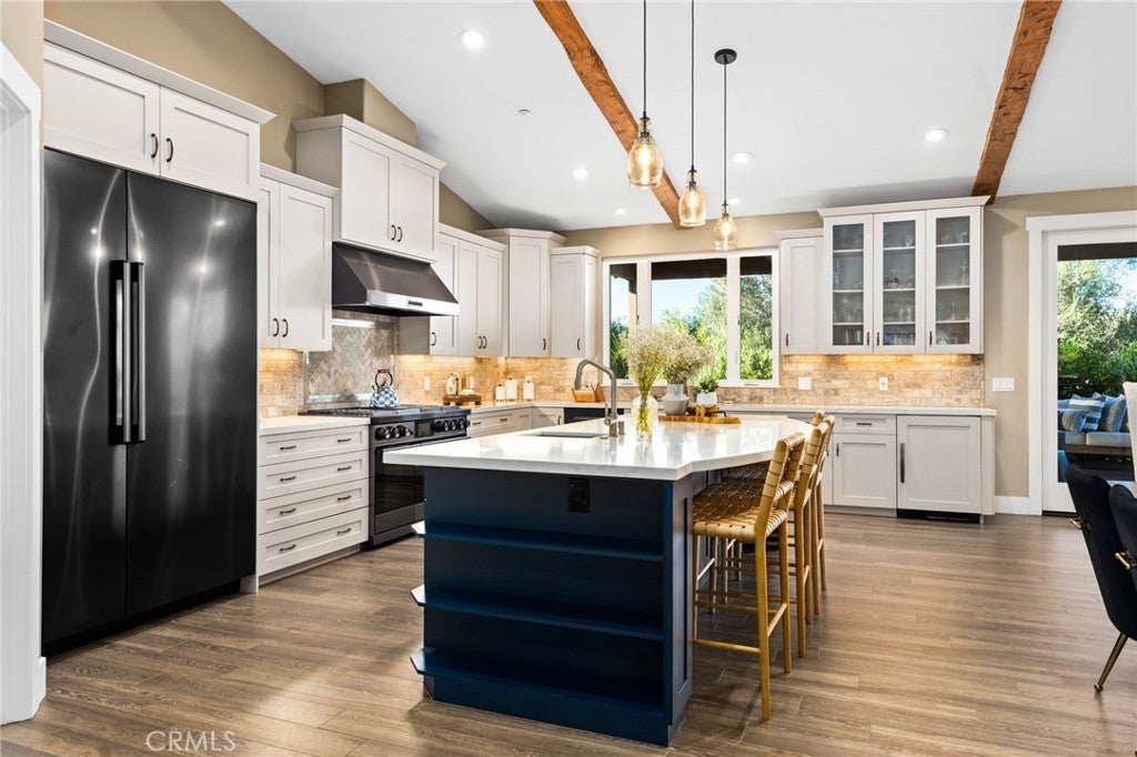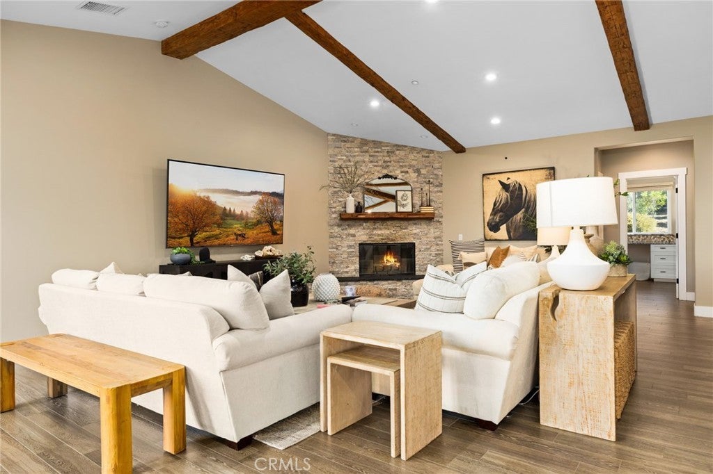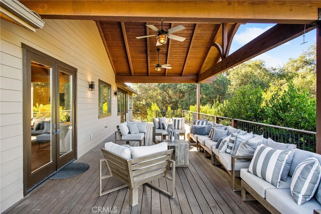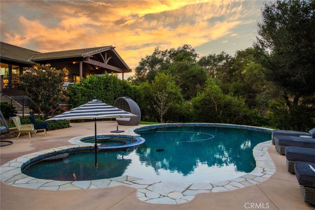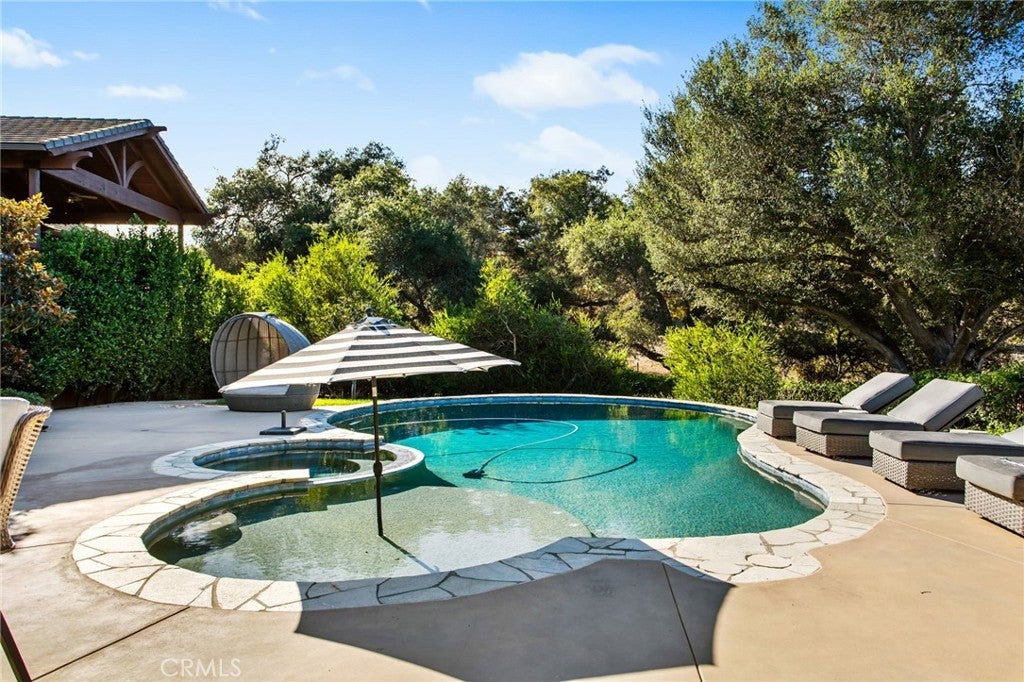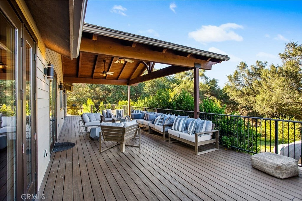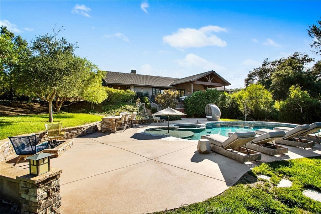 Welcome to this 2019 custom built home, masterfully built by Youngren Construction, where quality craftsmanship and modern efficiency meet the beauty of country living. Set on 2.13 oak-studded acres, this single-story 3,250 sq. ft. home offers the perfect balance of luxury and comfort, now enhanced by a private pool, spa, and expansive entertainer’s deck. Step inside and you’re greeted by an open-concept floor plan, warmed by hand-hewn beams and a dramatic stone fireplace that anchor the great room. The gourmet kitchen is a chef’s dream, featuring a Dacor 48” Pro Range with griddle, graphite Dacor refrigerator, Sub-Zero beverage cooler, microwave drawer, and dishwasher. Just off the main living spaces, a spacious laundry and craft room adds both function and flexibility. With three bedrooms plus an office or optional fourth bedroom, and three beautifully appointed bathrooms. Wide-plank wood-tile flooring flows throughout, while dual-zone AC, a whole-house fan, tankless water heater, and an owned solar system ensure year-round comfort and efficiency. The outdoor living spaces make this property truly special. A 928 sq. ft. Trex deck extends the living area outdoors, offering panoramic views and ample space for gatherings. Just beyond, a sparkling pool and spa create a private oasis perfect for entertaining or simply relaxing in the sunshine. The gently sloping acreage includes an established grove and oak trees with room for an ADU, casita, barn, or horses, making it as versatile as it is beautiful. Additional highlights include a three-car garage with abundant parking, generous storage beneath the home, and the peace of mind that comes with quality finishes and thoughtful design. This home offers a rare opportunity to enjoy the best of relaxed ranch-style living, combined with the modern amenities today’s lifestyle demands.