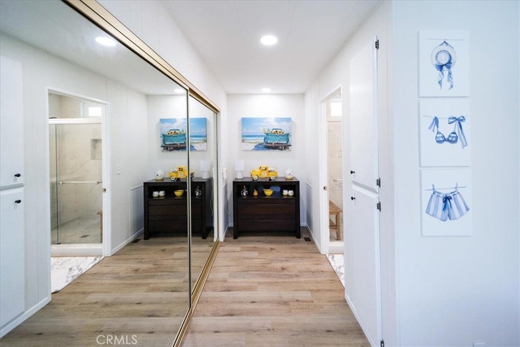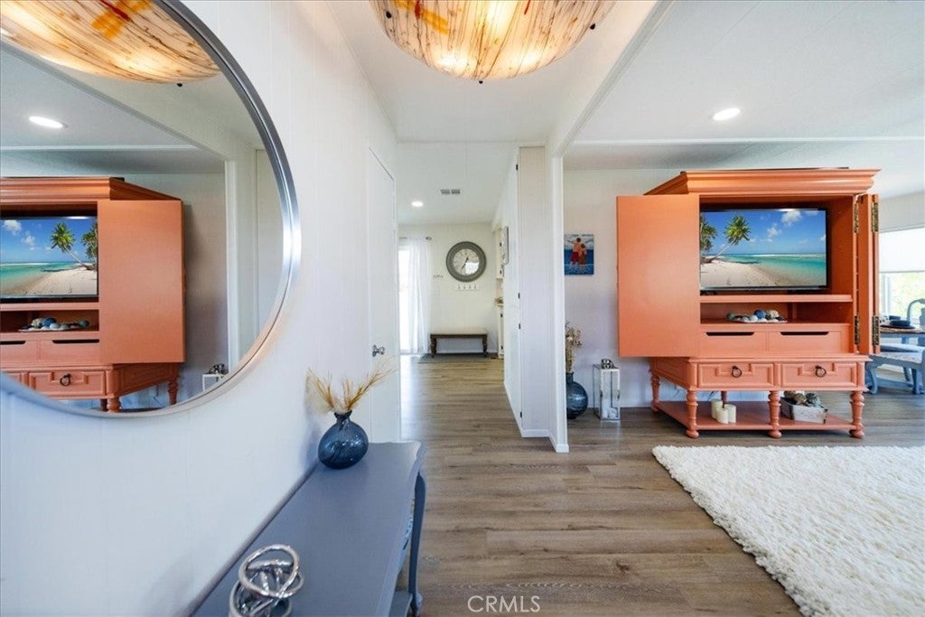 Welcome to your new, exquisitely decorated, Turnkey home, where you own the land! It was completely remodeled just a few years ago. As you enter you'll notice an abundance of natural sunlight throughout providing for a warm and relaxing environment. It boasts Laminate Wood-like Flooring, Recessed Lighting, Ceiling Fans, and Dual Pane Windows throughout. It has fairly new Fresh Paint, inside and out. The Master Bedroom is very spacious, while the second Bedroom provides a Murphy Bed for extra space when needed. Both Bathrooms were also remodeled with new Vanities. The Master Bathroom Shower showcases marble tile on the walls with a Mosaic pattern tile on the floor. The galley Kitchen offers a gas cooktop, double-ovens, and under cabinet lighting, just near the breakfast nook area. The Laundry Room provides ample space with plenty of storage. Additionally, your new home includes Free Golf for 2 residents, Pools, Hot Tubs, Tennis, Pickle Ball, and a Club House all included in the HOA. And finally, your new home comes completely furnished as is. Schedule your private tour today! $5,000 Buyer Credit for Closing Costs