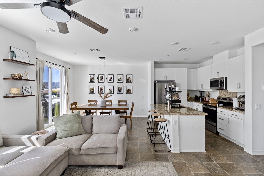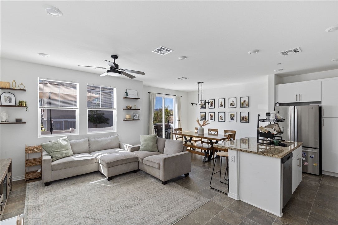 Like-New Townhome with Solar, Mountain Views & Resort-Style Amenities - Like-new 3-bedroom, 2.5-bathroom townhouse located in the highly desirable Horizon Place Community of Wildomar. With no neighbors above or below, this home offers the perfect combination of comfort, privacy, and modern style. The open-concept main floor is warm and inviting, featuring a spacious kitchen with granite countertops, a large island with bar seating, stainless steel appliances, and plenty of cabinet space. The kitchen opens seamlessly to the dining and living areas, creating a perfect setting for entertaining or relaxing. Enjoy ample natural light throughout and new plantation shutters for a touch of elegance. Upstairs, you’ll find three generously sized bedrooms, 9-foot ceilings, and two large, modern bathrooms. The primary suite is a true retreat, offering beautiful mountain views and a large walk-in closet. A convenient upstairs laundry room adds to the home’s functionality. Step outside to enjoy the many community amenities including a pool, spa, fire pit, BBQ area, and tot lot—perfect for enjoying the Southern California lifestyle. Located in a prime Wildomar location near the Murrieta border, Horizon Place offers quick access to Clinton Keith Road, shopping, restaurants, schools, parks, and gyms, and is just minutes from both the 15 and 215 freeways for easy commuting. This is the perfect place to call home—modern, low-maintenance, and close to everything!