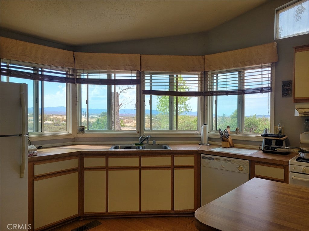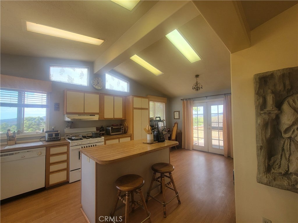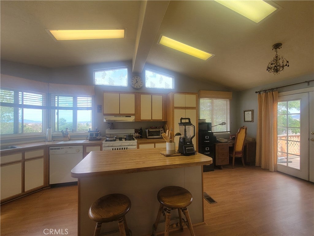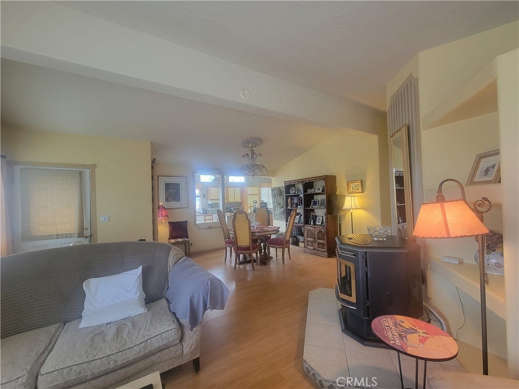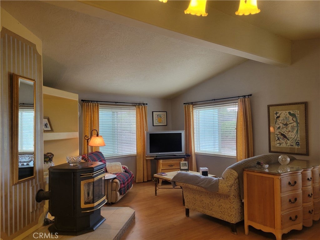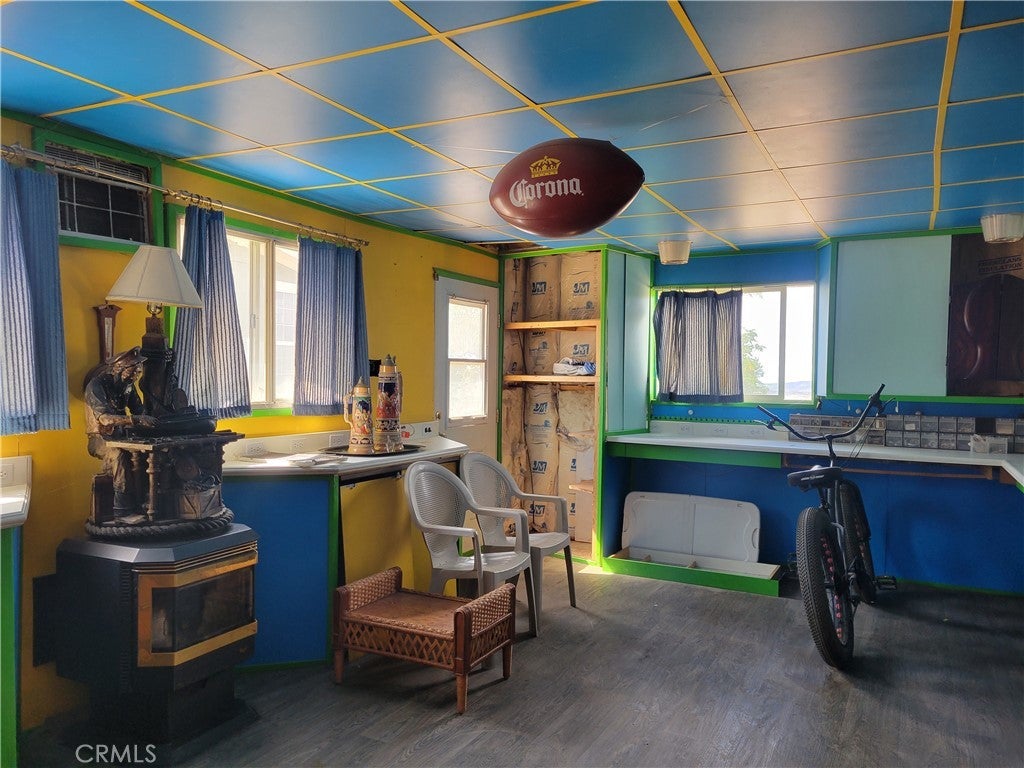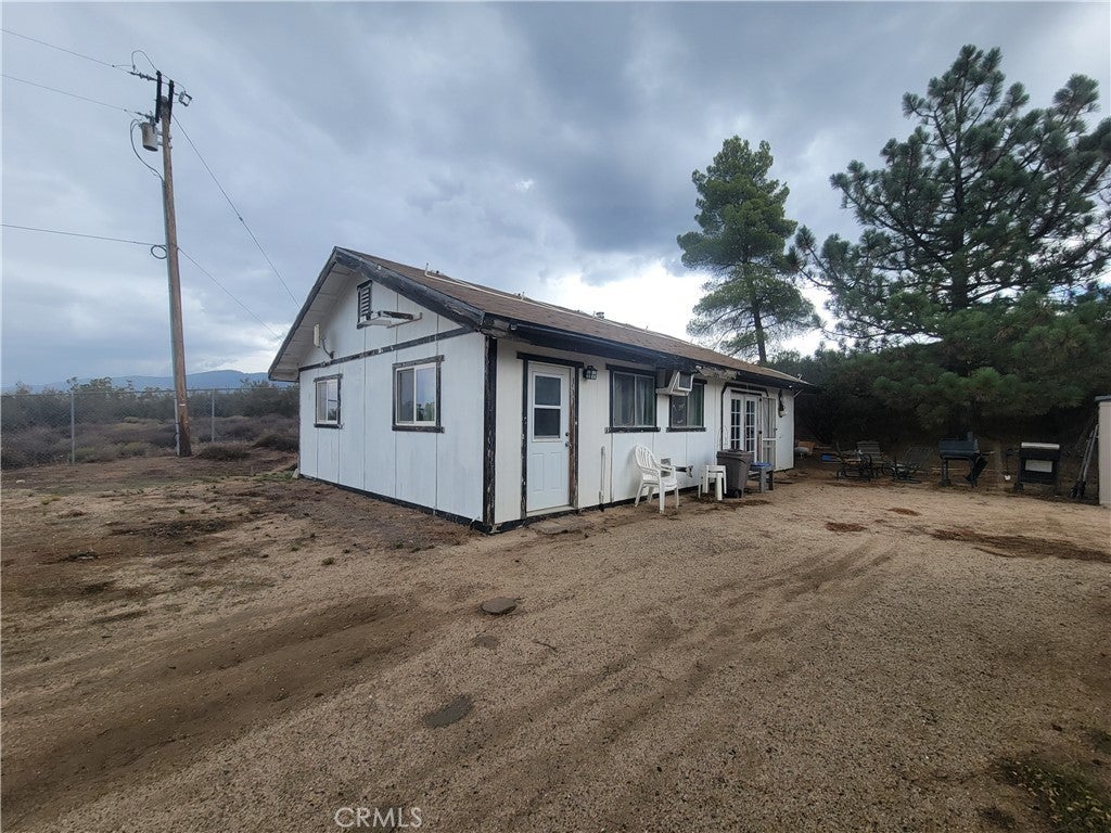 Enjoy peace, privacy, and panoramic views from this inviting 3-bedroom, 2-bath home nestled on a usable 5-acre parcel. Thoughtfully designed for comfort and functionality, this home features front and rear decks, perfect for relaxing or entertaining. Inside, the living and dining areas include a cozy pellet stove—ideal for chilly winter nights. The spacious kitchen has a center island, built-in office area, and a pantry. A wall of windows fills the space with natural light and showcases sweeping views of the surrounding landscape. French doors open onto the rear patio, extending your living space outdoors. You'll find ample storage throughout the home, including large closets . Flooring includes tile in bathrooms, laminate in the main living spaces, kitchen, main bedroom and carpeting in the other 2 bedrooms. For those who love to work on projects or need extra storage, a separate workshop with three rooms provides endless possibilities. There's also a tall timber-framed structure with a roof and open sides—formerly used for RV storage—with potential for many future uses. The fully usable property is fully fenced and has mature pine trees, offering plenty of space for horses, farm animals, gardens, orchards, or whatever your vision may be.