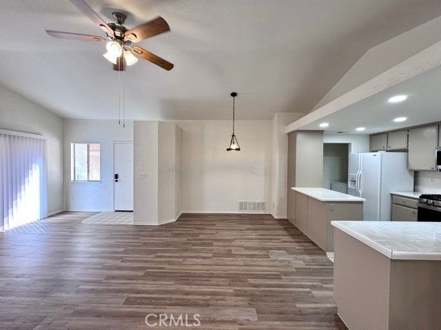 This charming single-story home offers a fantastic layout, a spacious fenced yard, and an attached two car garage. Inside, you'll find upgraded flooring throughout, no carpet, with over 1,100 sqft., 3 bedrooms, and 2 bathrooms. The living room is bright and inviting with a cozy fireplace and plenty of natural light. It flows seamlessly into the dining area and kitchen, creating an open and functional space perfect for everyday living or entertaining. The kitchen features brand new stainless steel appliances, durable tile countertops, and freshly painted cabinets. A convenient indoor laundry area is located just off the kitchen. Down the hallway, you'll find all three bedrooms and both bathrooms. The primary bedroom is spacious and includes an attached ensuite with dual sinks and a shower/tub combo. Both bathrooms have been updated with brand new toilets for added comfort and convenience. Venture outside to a low-maintenance backyard complete with rock landscaping, garden planter boxes, and a storage shed, ready for you to enjoy and make your own. Landscaping is included in the price for this beautiful home! Located in a welcoming community that offers fantastic amenities, including a pool and jacuzzi, park, basketball court, BBQ/picnic area, and a large grassy space, all just a short distance away. Don’t miss out, schedule your showing today!