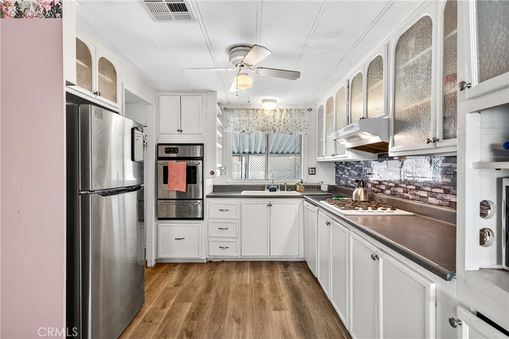 Welcome to 23820 Ironwood Ave Space #189, located in IL Sorrento Community Park—Moreno Valley’s premier 55+ gated community offering resort-style living in a peaceful, well-maintained neighborhood. This 2-bedroom, 2-bath manufactured home features approximately 1,440 sq. ft. of comfortable living space with a spacious kitchen offering ample cabinet and countertop storage, a cozy living room, separate family room, dining area, and convenient laundry room with extra storage. Steps lead to the front entry and a covered carport. Residents enjoy access to a clubhouse, swimming pool, BBQ island, and RV parking area. Conveniently located about 1 mile from shopping and Highway 60 access, and 2 miles from local parks. The property is on leased land with a monthly space rent of $900.