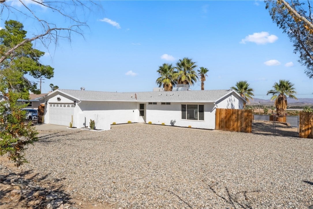 Whether you’re seeking a peaceful desert retreat or the perfect family home, discover the best of Twentynine Palms living at 73904 Playa Vista Drive, a beautifully remodeled and thoughtfully upgraded desert oasis. This 3-bedroom, 2-bathroom home spans 1,258 sq. ft. and is fully turnkey for its next owner. From the new laminate flooring and recessed lighting to the expanded sliding door off the living room, newer toilets, custom mirrors and lighting, every detail has been updated with quality and care. The open-concept kitchen showcases quartz countertops, a luxury waterfall island, and modern fixtures, including an oversized sink. Both bathrooms have been completely renovated with custom tile work and contemporary finishes. The seamless flow between the kitchen, living area, and back patio makes entertaining effortless, inside or out. Step outside to enjoy open desert views, enhanced privacy with a galvanized steel and wood fence, desert-inspired landscaping, and a custom paver wall surrounding the nearly half-acre lot adorned with towering palm trees. The spacious backyard offers the perfect setting for stargazing, relaxing in a hammock, or gathering around the fire pit. Modern comfort meets efficiency with central air and heat, managed by Google Nest, ensuring year-round comfort. Conveniently located near downtown Twentynine Palms, Tortoise Rock Casino, and just minutes from Joshua Tree National Park, this home embodies the desert lifestyle - stylish, serene, and truly unforgettable.
