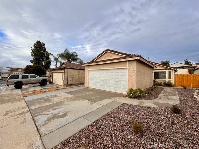 Welcome to this beautifully updated single story home offering 2 bedrooms, 2 bathrooms, and 927 square feet of comfortable living space located in Menifee. This home features a bright, open layout with modern finishes throughout. The kitchen has been tastefully remodeled with crisp white cabinetry, quartz countertops, recessed lighting, and stainless steel appliances. Both bathrooms are stylishly updated with contemporary fixtures and clean design. The upgraded plank flooring throughout ties the space together with warmth and modern appeal. Enjoy the low maintenance front yard and a private fenced backyard, great for relaxing or entertaining outdoors. Please note, the two car garage is not available for tenant parking. A small portion of the garage is provided for storage use only, and the homeowner maintains private, separate access to the remainder of the garage. Tenants have access to park in the driveway. Conveniently located near shopping, dining, and easy freeway access, this move in ready home is perfect for those looking for comfort and convenience in a quiet neighborhood. Schedule your showing today!