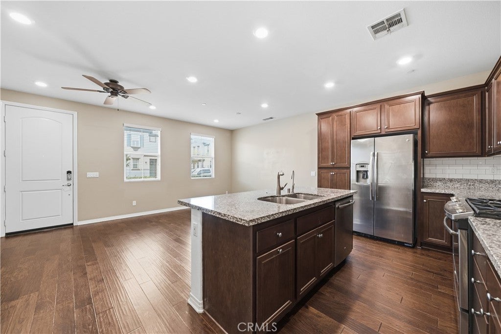 Welcome to 40358 Calle Real, a beautifully maintained two-story condo located in the highly desirable Arroyo Vista. Built in 2016, this home offers a perfect blend of comfort and modern style with an open-concept layout, luxury vinyl flooring, and abundant natural light throughout. The upgraded kitchen features granite countertops, a center island, and stainless steel appliances, opening to a spacious living and dining area ideal for entertaining. Upstairs, you’ll find a generous primary suite with dual sinks, a soaking tub, separate shower, and walk-in closet, along with two additional bedrooms and a convenient laundry room. The attached two-car garage provides direct access, and the community amenities include a pool, spa, playground, and BBQ areas. This is a prime location near top-rated schools, shopping, and easy freeway access, this home offers both value and lifestyle in one of Murrieta’s most sought-after neighborhoods