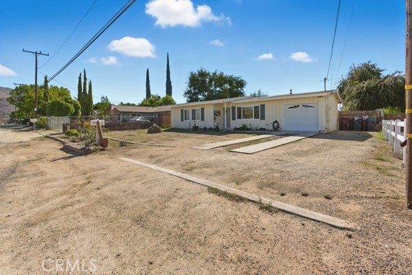 Fantastic Find Near Diamond Valley Lake! Don’t miss this incredible opportunity—approximately 1 acre of usable land located just minutes from Diamond Valley Lake! This charming 3-bedroom, 1-bath home features fresh interior paint and new carpet being installed, offering a clean and welcoming start for its next owner. Surrounded by scenic trails in a desirable ranchette area, this property is perfect for horse enthusiasts—zoned for up to 5 horses per acre (buyer to verify). Enjoy peaceful country living with all the convenience of being only 10 minutes from town and the lake. Come see this fantastic property today!