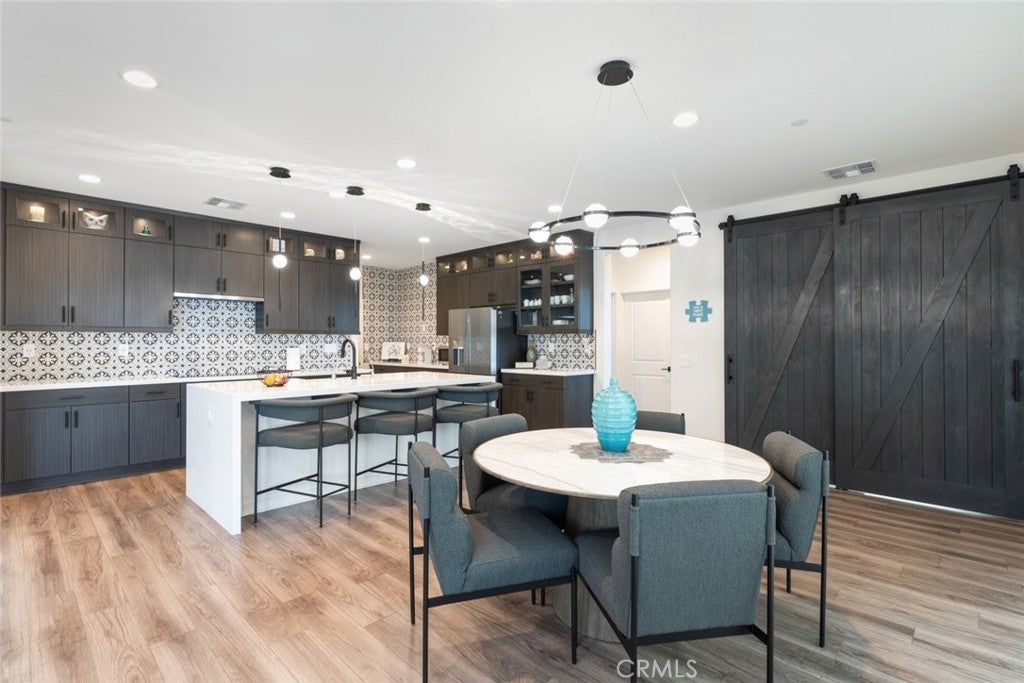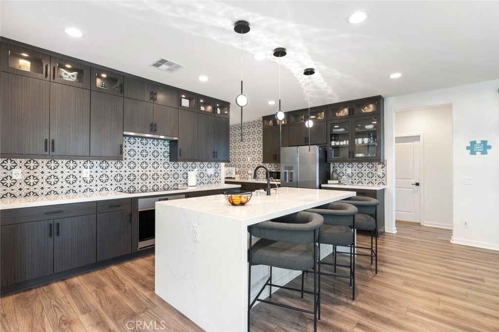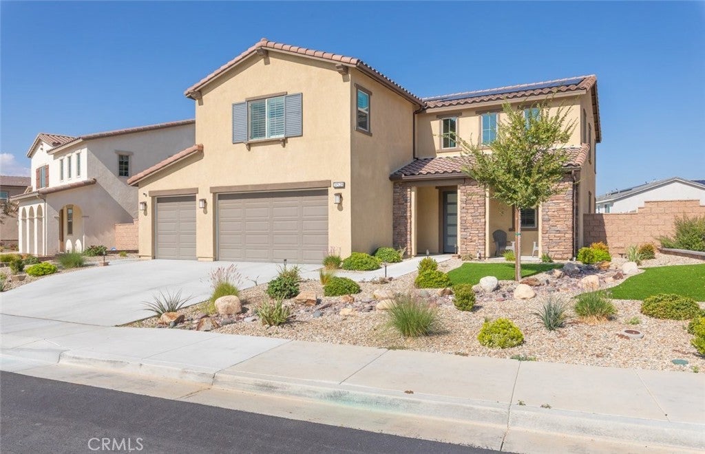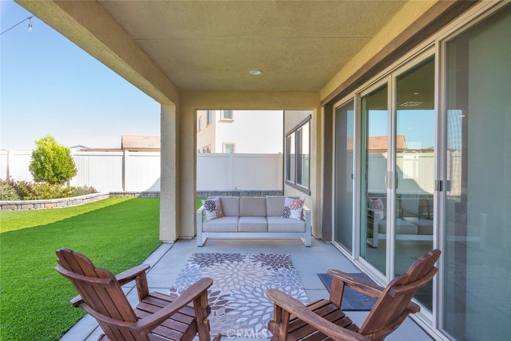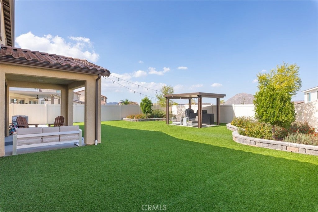 HUGE PRICE REDUCTION!! Put this one at the very top of your must-see list. This meticulously upgraded Tri-Pointe home offers 5 spacious bedrooms, 3.5 bathrooms, and 3,291 square feet of exceptional living space. Designed for those who appreciate quality, comfort, and modern elegance, this turnkey residence blends luxury finishes with thoughtful functionality at every turn. The open-concept floor plan is filled with natural light, highlighting the seamless flow of high-end luxury vinyl plank flooring throughout the home. Custom barn doors, shiplap accents, and designer ceiling fans in every room add warmth and character, creating a sense of refined sophistication. The gourmet kitchen is a showpiece in itself, featuring upgraded cabinetry with glass inserts, quartz countertops with stunning waterfall edges, a custom tile backsplash, and top-of-the-line stainless steel smart appliances. A farmhouse sink and a reverse osmosis water filtration system combine convenience with style, while the oversized island invites gatherings, casual meals, and conversations. Upstairs, the luxurious primary suite offers a private retreat designed to soothe and inspire. The spa-like bathroom features a freestanding soaking tub, a clear glass shower enclosure, and exquisite floor-to-ceiling tile work that rivals any high-end resort. The secondary bedrooms are generous in size, while the additional bathrooms echo the same sense of quality with quartz countertops, upgraded mirrors, and beautifully tiled flooring. The backyard continues the theme of luxury and functionality, offering a serene oasis perfect for both relaxation and entertaining. Designed for low maintenance with artificial turf, drought-tolerant plants, and raised garden planters. Beneath a durable metal-frame gazebo with electricity, the outdoor kitchen comes fully equipped with a smoker and pizza oven. The garage features epoxy flooring and a dedicated electrical subpanel with additional outlets. A whole-house fan and soft-water system enhance comfort and efficiency, while the paid-off solar panels offer eco-friendly living and significant energy savings. Perfectly situated near shopping, restaurants, award-winning schools, and the 215 and 15 freeways, this home combines the best of luxury, convenience, and modern design. Immaculate, move-in ready, and upgraded beyond expectations, this home stands out as a rare opportunity for those seeking true turnkey luxury—ready to welcome its next owner.