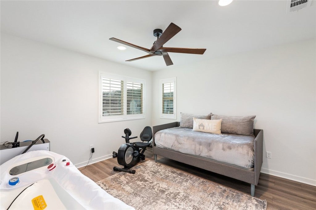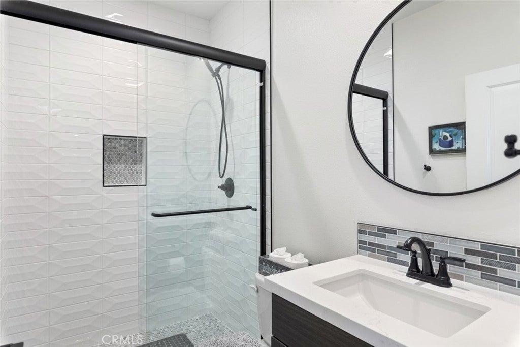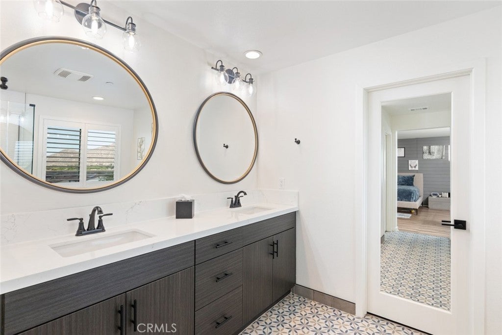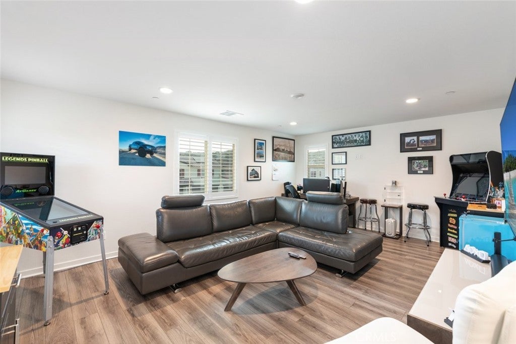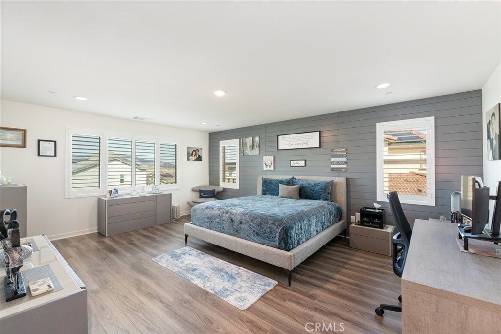 HUGE PRICE REDUCTION!! Put this one at the very top of your must-see list. This meticulously upgraded Tri-Pointe home offers 5 spacious bedrooms, 3.5 bathrooms, and 3,291 square feet of exceptional living space. Designed for those who appreciate quality, comfort, and modern elegance, this turnkey residence blends luxury finishes with thoughtful functionality at every turn. The open-concept floor plan is filled with natural light, highlighting the seamless flow of high-end luxury vinyl plank flooring throughout the home. Custom barn doors, shiplap accents, and designer ceiling fans in every room add warmth and character, creating a sense of refined sophistication. The gourmet kitchen is a showpiece in itself, featuring upgraded cabinetry with glass inserts, quartz countertops with stunning waterfall edges, a custom tile backsplash, and top-of-the-line stainless steel smart appliances. A farmhouse sink and a reverse osmosis water filtration system combine convenience with style, while the oversized island invites gatherings, casual meals, and conversations. Upstairs, the luxurious primary suite offers a private retreat designed to soothe and inspire. The spa-like bathroom features a freestanding soaking tub, a clear glass shower enclosure, and exquisite floor-to-ceiling tile work that rivals any high-end resort. The secondary bedrooms are generous in size, while the additional bathrooms echo the same sense of quality with quartz countertops, upgraded mirrors, and beautifully tiled flooring. The backyard continues the theme of luxury and functionality, offering a serene oasis perfect for both relaxation and entertaining. Designed for low maintenance with artificial turf, drought-tolerant plants, and raised garden planters. Beneath a durable metal-frame gazebo with electricity, the outdoor kitchen comes fully equipped with a smoker and pizza oven. The garage features epoxy flooring and a dedicated electrical subpanel with additional outlets. A whole-house fan and soft-water system enhance comfort and efficiency, while the paid-off solar panels offer eco-friendly living and significant energy savings. Perfectly situated near shopping, restaurants, award-winning schools, and the 215 and 15 freeways, this home combines the best of luxury, convenience, and modern design. Immaculate, move-in ready, and upgraded beyond expectations, this home stands out as a rare opportunity for those seeking true turnkey luxury—ready to welcome its next owner.
