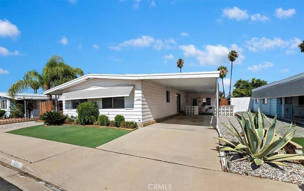 Welcome home to Sierra Dawn Estates, a vibrant 55+ community where you own the land—no space rent! This beautifully maintained two-bedroom, two-bath manufactured home offers a light, bright, and open floor plan designed for comfort and functionality. Inside, enjoy dual primary suites, each oversized with two spacious closets, private baths, and flexible space ideal for guests, in-laws, or a caretaker. The inviting living room features a custom feature wall with a mounted TV that stays, while the dining area showcases a charming built-in china cabinet. The kitchen is airy and cheerful, boasting stainless steel appliances, laminate countertops, two pantries, a large farmhouse sink, and plenty of cabinet space for storage. Additional highlights include a new AC unit, furnace, water heater, and garbage disposal, ensuring worry-free living. The interior laundry room offers extra storage and a convenient folding area, with even more storage available throughout the home. Several extra boxes of flooring are included for future projects or repairs. Outside, enjoy the low-maintenance yard enclosed by a tall privacy fence—perfect for gardening, relaxing, or entertaining. The large attached workshop/shed features a sink with both hot and cold water, making it ideal for hobbies and projects. Sierra Dawn Estates boasts an impressive array of amenities, including four clubhouses, five pools, a sauna, a jacuzzi, an exercise room, pickleball courts, horseshoe pits, shuffleboard courts, RV parking, and a variety of community events and clubs to join. Come experience easy living, abundant amenities, and true ownership pride at 1470 San Marcos Drive—a home that’s move-in ready and full of thoughtful upgrades.