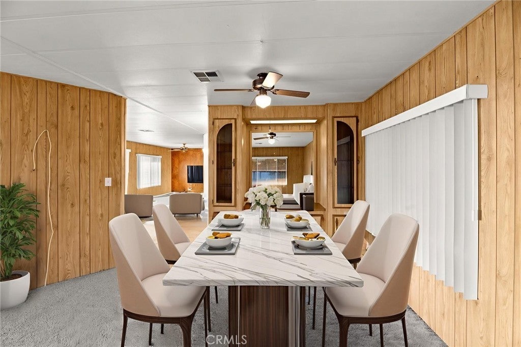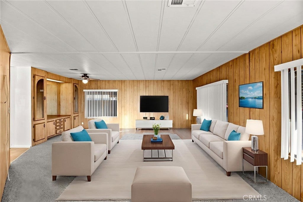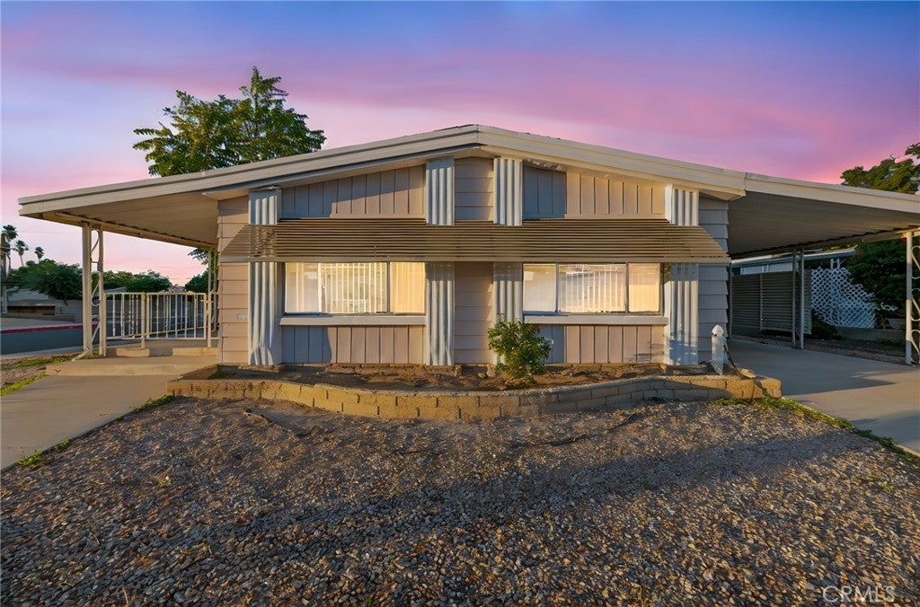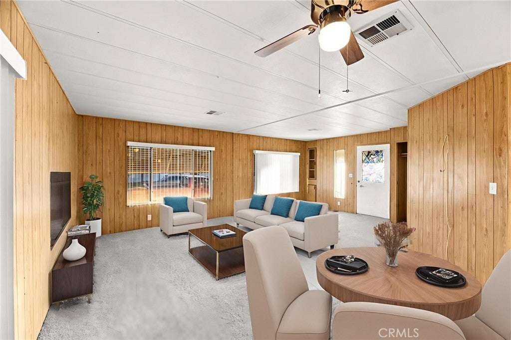 Welcome to 1450 Carlotta Drive, a beautifully refreshed 2-bedroom, 2-bath home in the highly sought-after Sierra Dawn Estates 55+ community. Offering approximately 1,440 sq ft, this residence combines comfort, convenience, and value in a peaceful, well-maintained neighborhood where you own the land — no space rent! Step inside to find fresh new exterior paint and brand-new carpet throughout, creating a bright, clean, move-in-ready feel. The spacious living room features large windows for abundant natural light, while the dining area offers built-in cabinetry and flows seamlessly into the functional kitchen with plenty of counter space and storage. Both bedrooms are generous in size, including a primary suite with a walk-in closet and private bath. Outside, enjoy a covered carport, storage shed, and low-maintenance landscaping, ideal for relaxed, easy living. Located close to shopping, dining, parks, and the picturesque Diamond Valley Lake recreational area, this home offers both convenience and tranquility. The home is on a permanent foundation, allowing for FHA, VA, and conventional financing options. And with a super-low HOA of approximately $5 per month, it’s one of the best values in Hemet’s 55+ market.