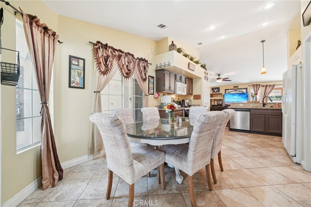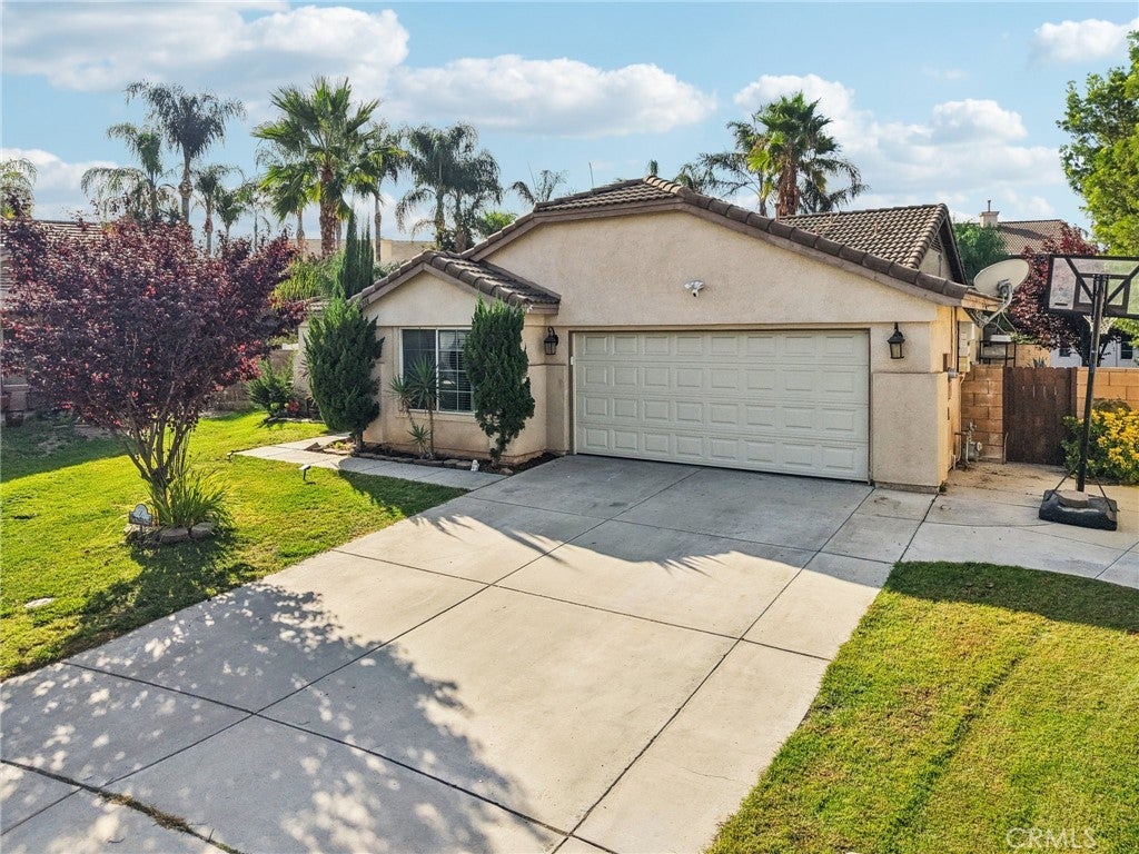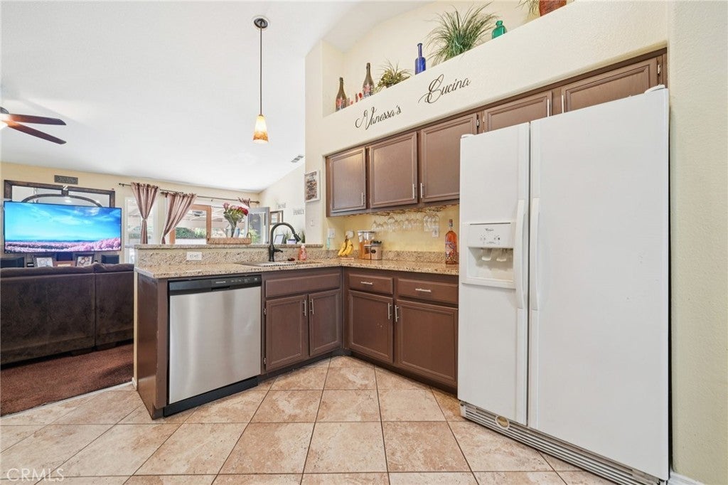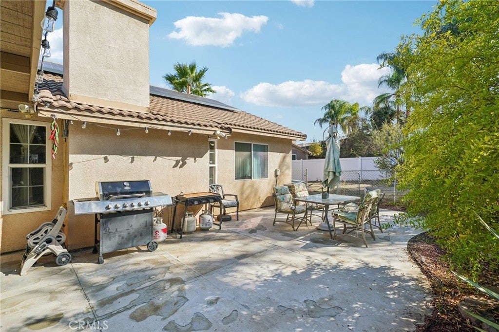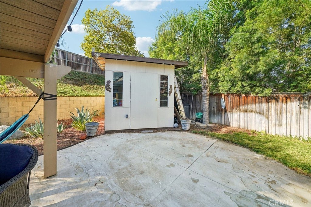 LOW TAXES!!! Spacious Cul-de-Sac Home on a Large Lot. Located at the end of a quiet cul-de-sac, this inviting home with 3 bedrooms and a 4th which is used as a den sits on a large lot and offers a comfortable open floor plan with great indoor-outdoor flow. A charming covered front patio welcomes you inside to the open living room, kitchen, and dining area. The kitchen features granite countertops and a convenient dining space, while a sliding door from the living room leads to a spacious backyard with a covered patio—perfect for outdoor dining and relaxation. An additional living room off the kitchen provides flexible space for entertaining or a cozy family retreat. The privately situated primary bedroom includes an en suite bathroom with dual sink vanity, soaking tub, and separate tiled shower. Two additional bedrooms and a full bathroom are located on the opposite side of the home. Other highlights include a laundry room off the kitchen, a storage/tool shed with electricity, and leased solar for energy efficiency. Conveniently located near local markets, schools, and dining options. LOW TAXES and LOW HOA, This is a MUST SEE!