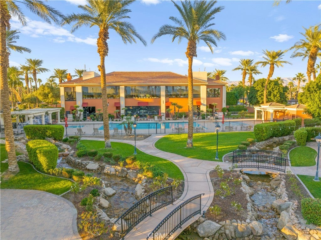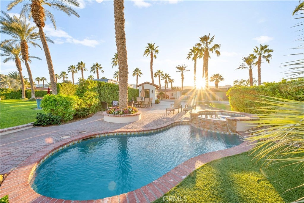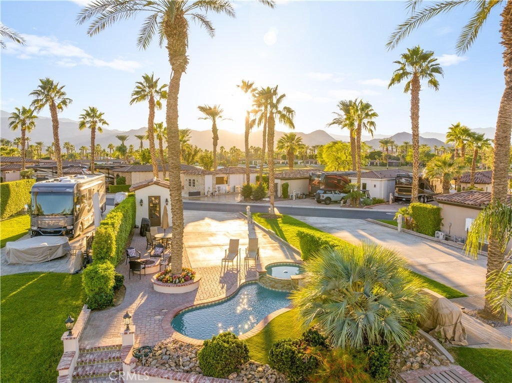 Welcome to Motorcoach Country Club, one of the most desirable luxury RV resorts in Indio. Lot 312 is a rare offering—one of the few lots that features both a private pool and a private dock. Enjoy the unique luxury of swimming in your own pool while having direct water access right from your lot—an amenity combination that few others can claim. This one-of-a-kind community offers an unparalleled lifestyle. Motorcoach Country Club caters exclusively to Class A motorhomes ranging from 30' to 45', and provides access to world-class amenities including a 9-hole golf course, scenic waterways, a renovated restaurant and bar, three resort-style pools, pickleball and tennis courts, a fitness center, and separate men’s and women’s saunas. The custom-built casita features a full bathroom with a stand-in shower, showcasing quality craftsmanship throughout. No expense was spared in the design and build of this exceptional lot. This property presents a prime opportunity to expand the existing casita into a full-sized one, allowing you to customize it to your taste—without the added cost or effort of installing a pool, as it’s already complete. The pool was recently sandblasted, all pumps professionally serviced, and it’s now in turnkey condition. Additionally, brand-new custom shutters were recently installed, adding both style and functionality. Lot 312 is move-in ready—an excellent opportunity to experience the premier Motorcoach Country Club lifestyle.