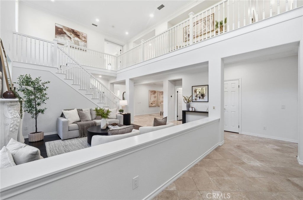 Stunning 5BD/4.5BA pool home at the end of a quiet cul-de-sac on a rare oversized lot with beautiful city lights views. Freshly remodeled kitchen, designed with waterfall-edge quartz countertops, a generous island, high-end appliances, and ample storage—creating an elevated space for both cooking and hosting. A dramatic two-story entry welcomes you into bright, open spaces, leading to a large formal dining room perfect for gatherings and a spacious secondary living room ideal for everyday relaxation or entertaining. The home also features an expansive loft that offers flexible use as a media room, office, or additional lounge. This thoughtfully updated residence combines privacy, functionality, and impressive indoor-outdoor living. Throughout the home, new carpet and fresh interior paint add a clean and modern feel. A downstairs bedroom with a full bathroom provides excellent convenience for guests or multigenerational living options. Upstairs, the secondary bedrooms enjoy access to a front balcony with neighborhood views, while the luxurious primary suite features its own private deck overlooking sparkling city lights. The outdoor spaces are equally impressive, highlighted by a Pebble Tec pool and a spacious backyard that offers endless potential for entertaining, relaxing, or customizing your dream outdoor retreat. This rare combination of a premium location, large lot, multiple outdoor living areas, updated interior finishes, and expansive views makes this one of Aliso Viejo’s most desirable offerings. Let this home be your perfect blend of comfort, style, and Southern California living.