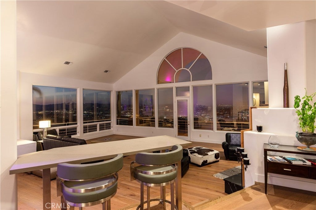 Balcony, Ceiling Fan(s), Cathedral Ceiling(s), Eat-in Kitchen, High Ceilings, Quartz Counters, Recessed Lighting, Main Level Primary, Primary Suite, Walk-In Closet(s), Furnished, Living Room Deck Attached, Sunken Living Room