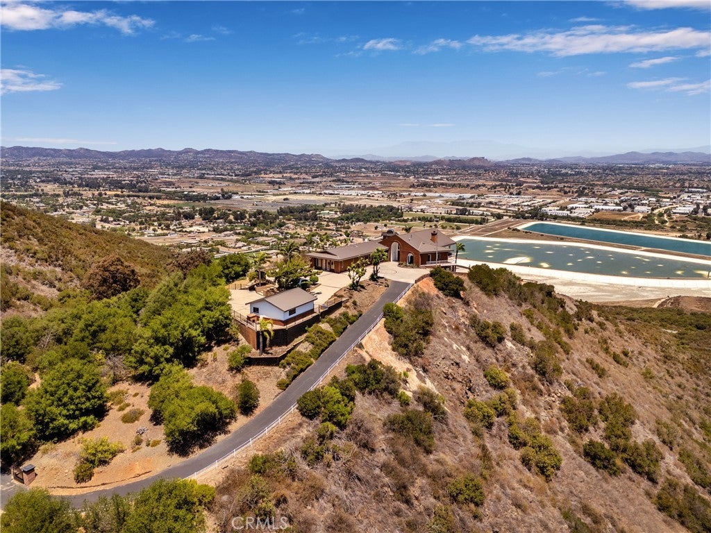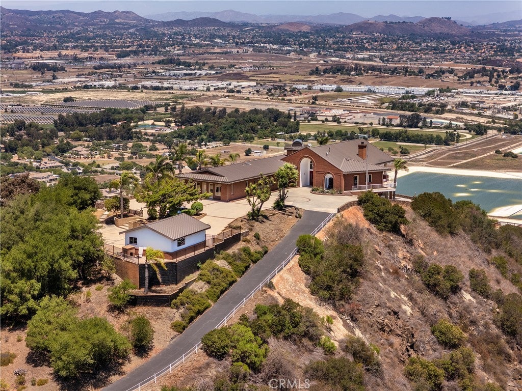 One-of-a-kind estate with amazing sunrises and shimmering nighttime city light views. The best view property in DeLuz. Priced way below licensed appraiser estimate. ASK THE LISTING AGENT ABOUT SELLER FINANCING !! HIGHLY SECURE PROPERTY with 10 ft. entry gates and iron perimeter fencing. EXISTING RENTAL INCOME. Property has 2 HOMES on 23 PRISTINE ACRES that are only 7 minutes to both Old Town Temecula and Murrieta. Main home is 5,050 sq. ft. with 24 ft. ceilings in living room, 4 bedrooms, 4 baths. A 800 sq. ft. entertainment / gym area with views. Both homes are fully remodeled. Second home is 1,560 sq. foot with 3 bedrooms and 2 baths with city views. Second home accessibility has a wheel chair ramp. Each home features Viking appliances and new HVAC. Low-cost maintenance and utilities. Self-sustaining trees and vegetation. Perfect property for horses, additional homes or your own winery. No neighbors. Property has a rare 2- inch agriculture water meter line if needed. Low cost CA Fair Plan Insurance due to structural design features. Excellent investment upside appreciation potential !!
