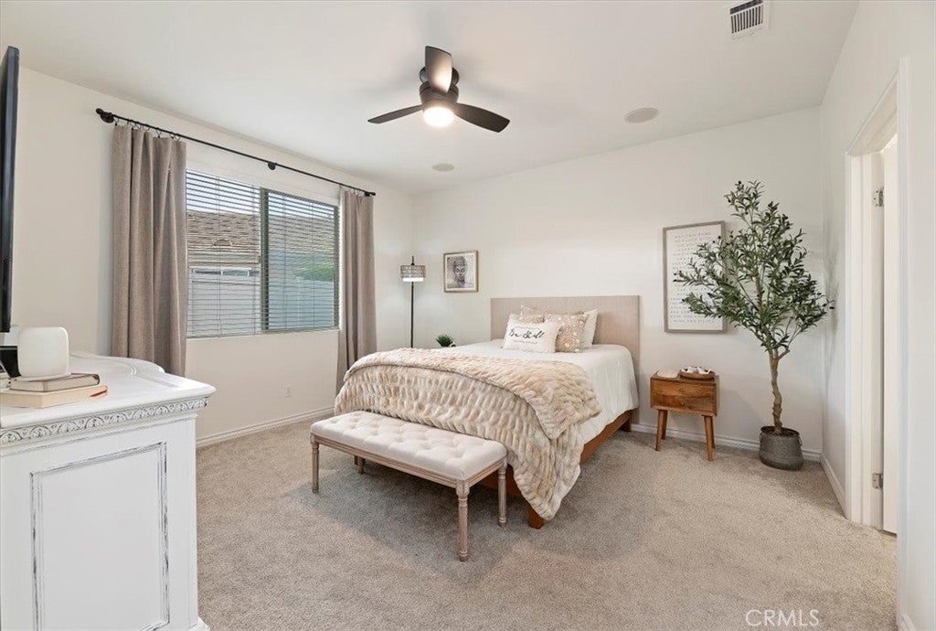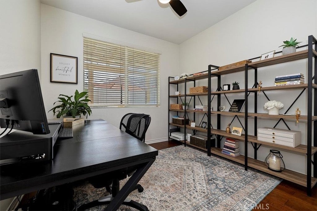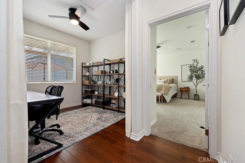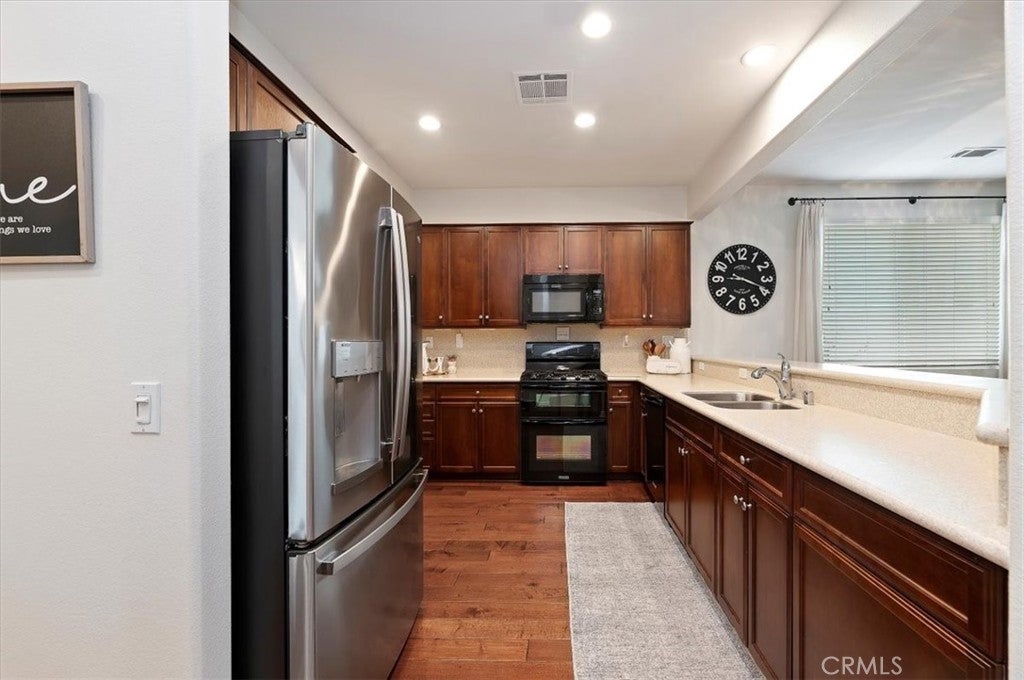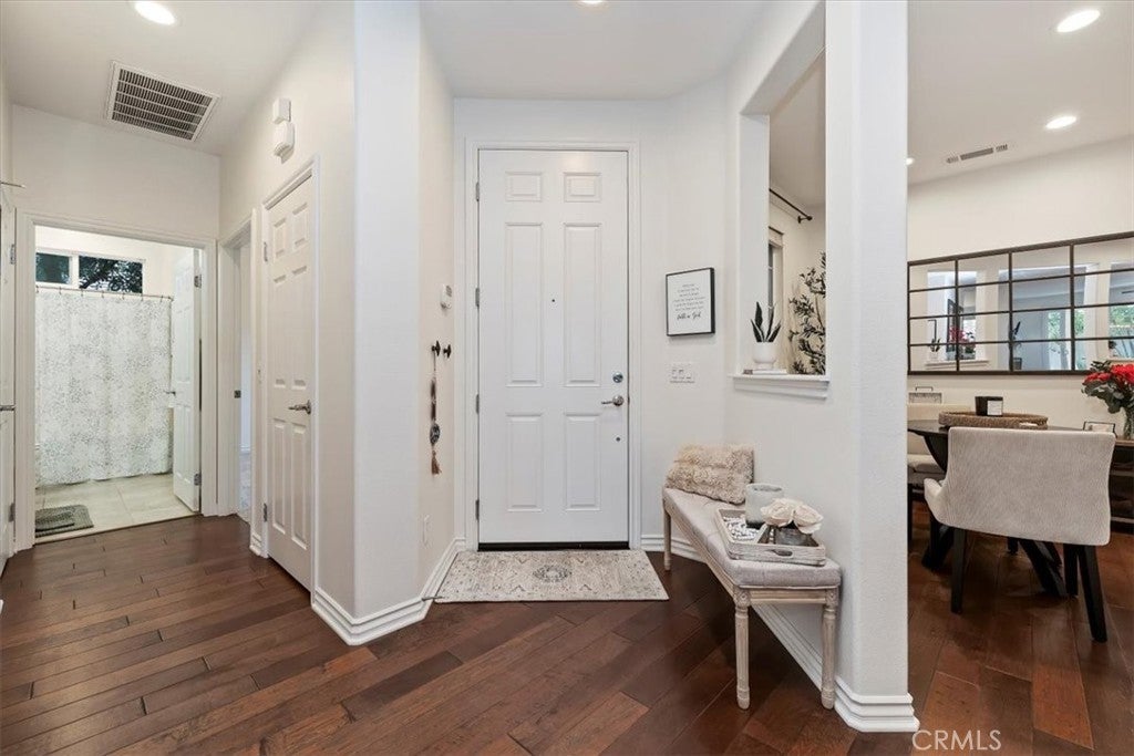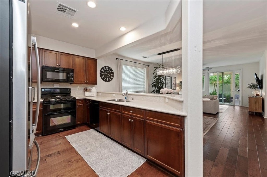 Immaculate Former Model Home | $50K+ in Upgrades | Flexible 3-BR Option | Low-Maintenance Luxury Living Welcome to this beautifully maintained La Jolla floor plan in West Hemet’s highly sought-after 55+ Solera Diamond Valley by Del Webb community, with over $50,000 in thoughtful upgrades throughout, you won’t want to wait on this one! This former model home blends resort-style amenities with everyday ease, and is truly turn-key. Step inside to discover rich hardwood flooring, tall ceilings, and a bright, open layout that seamlessly connects the kitchen, dining, and living areas. The chef’s kitchen features walnut cabinetry, Corian countertops, upgraded appliances, and a breakfast bar - perfect for quiet morning coffee or hosting friends in the evening. The split-bedroom design offers privacy and natural light throughout. The primary suite includes dual sinks, a spacious walk-in closet, a linen closet, and newer carpet. The bright den/office is spacious enough for EASY 3RD BEDROOM CONVERSION, if desired. Outside, enjoy your low-maintenance backyard retreat complete with an Alumawood patio cover, remote-controlled market lights, a built-in gas BBQ island, and beautiful artificial turf - ideal for relaxing evenings or effortless entertaining. Additional features include: Upgraded ceiling fans, upgraded, newer carpet in both bedrooms, entire interior freshly painted, heavy-duty front security screen door, built-in ceiling surround-sound system, Ring Doorbell (wired), Wyze-enabled smart garage door opener, two TV mounts, along with quality blinds, curtains, and rods. Residents of Solera Diamond Valley enjoy access to the 23,000 sq. ft. Mountain View Lodge, featuring indoor and outdoor pools, spas, a state-of-the-art fitness center, aerobics/Pilates studio, tennis, Pickleball, and bocce courts, an indoor walking track, billiards, ballroom, library, craft rooms, coffee bar, computer lab, and a vibrant social calendar. This immaculate former model home combines comfort, connection, and low-maintenance luxury in one of Southern California’s premier active-adult communities. Come view this one-of-a-kind home, and you’ll immediately fall in love with it!