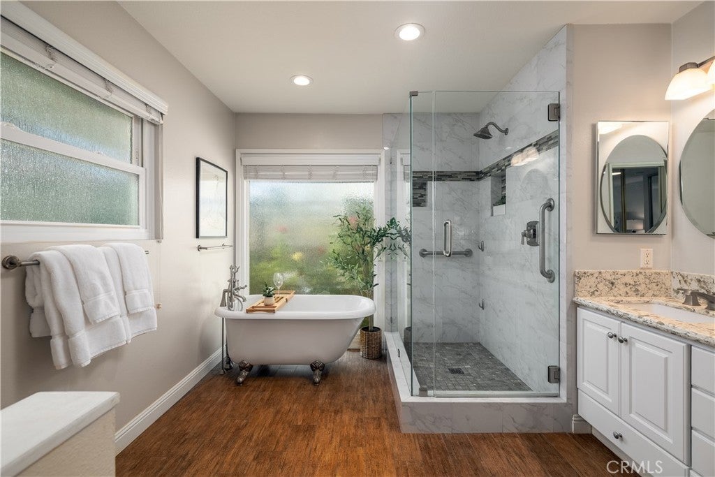 CHARMING EAST BAY LAKEFRONT WITH DUAL PRIMARY SUITES & PRIVATE DOCK Welcome to your dream lakefront home located on the highly desirable East Bay of Canyon Lake! Recently remodeled and thoughtfully designed, this beautiful two-story residence offers the perfect blend of modern comfort and relaxed waterfront living. Featuring 3 bedrooms and 3 full bathrooms—including two spacious primary suites—this home provides a versatile layout ideal for families, guests, or multigenerational living. Enter through a private, gated courtyard into bright, open living spaces accented by two cozy wood-burning fireplaces. Large sliding glass doors fill the home with natural light and open to a spacious deck overlooking the lake—perfect for entertaining or enjoying peaceful sunrise views. The updated kitchen showcases high-end appliances, sleek quartz countertops, and an open connection to the dining area. The main-level primary suite offers private deck access, dual closets, and its own dedicated A/C unit. The spa-inspired ensuite bathroom includes a freestanding clawfoot tub, dual quartz vanity, and a beautifully tiled walk-in shower. An additional bedroom and full bath on the main level provide flexibility for guests or a home office. The lower level features a private guest suite with a large bedroom, remodeled bathroom, wood-burning fireplace, and direct walk-out access to the covered patio, lake, and private dock. Enjoy outdoor living at its best with your own private dock with lift, perfect for boating, fishing, swimming, or simply soaking in the lakefront lifestyle. The landscaped yard features mature fruit trees, including donut peach, fruit cocktail, and nectarine. In addition to the private lake, other amenities include an 18-hole golf course, community restaurants, tennis and pickleball courts, skate park, equestrian center, baseball diamonds and multiple parks. Whether you’re looking for a full-time residence or the perfect weekend getaway, this East Bay lakefront gem offers the best of Canyon Lake living—where every day feels like a vacation.