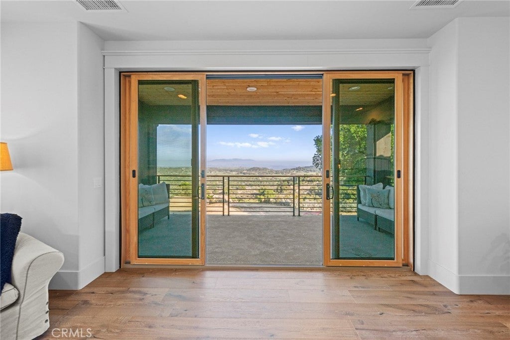 Welcome to Sunrise on Hacienda Dr — your own slice of California countryside living. This isn’t just a home; it’s a way of life, where every sunrise over the hills reminds you that you’re somewhere truly special. Set in the heart of the La Cresta Highlands, this inviting hacienda-style retreat sits on a scenic hillside surrounded by natural rock formations, mature trees, and endless sky. Inside, the home blends warmth, character, and thoughtful craftsmanship. You’ll find smooth Venetian plaster walls and ceilings, rich wood flooring, tall custom doors with detailed millwork, and iron railings that add a touch of rustic charm. Soft lighting and natural textures give the entire space a cozy, refined ranch feel. A double-sided fireplace anchors the main living areas, and large custom bifold doors open wide to the outdoors—ideal for morning coffee, sunset dinners, or simply soaking in the sweeping valley and mountain views. The primary suite is your personal escape, complete with a private deck that feels like a front-row seat to nature. The en-suite bath features a soaking tub, a walk-in shower, and dual sinks—everything you need to unwind. Outside, the land is beautifully landscaped with California oaks, Canary and California palms, olive trees, drought-tolerant cacti, and distinctive rock outcroppings, all bordered by vinyl fencing for a clean, classic look. There’s plenty of usable space to add a pool, barn, or guest house—giving you room to grow, create, and make the property your own.