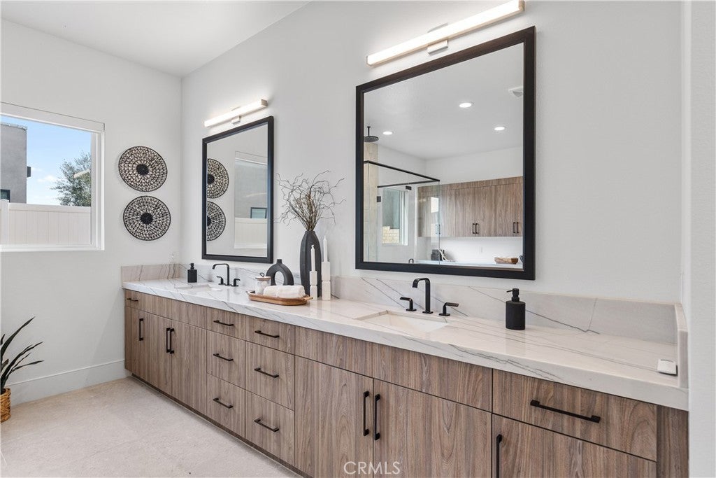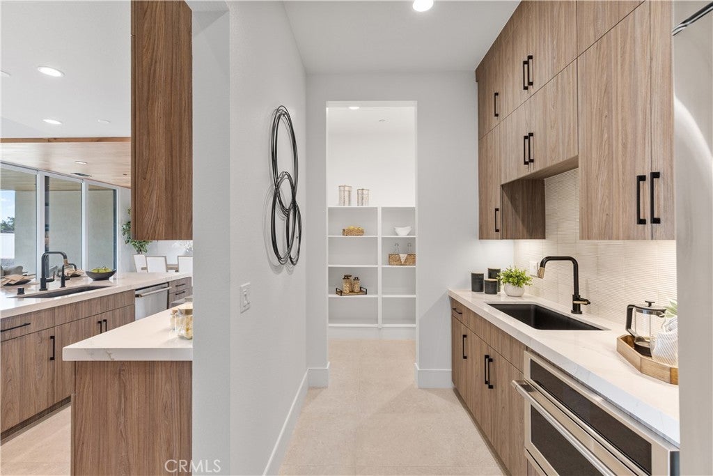 Now available in the exclusive gated enclave of Sommers Bend—one of Temecula’s most desirable wine country communities—this stunning single-story SHAWOOD residence features the sought-after ENSO floor plan, offering 4 bedrooms plus a private-entry casita, 4.5 baths, and 3,601 sq ft of modern luxury on an expansive 23,087 sq ft lot. Built by SHAWOOD, the Japanese luxury home brand by Sekisui House, this residence showcases their proprietary precision-engineered post-and-beam framing system, factory-crafted for exceptional strength, energy efficiency, and architectural elegance. Among the most premium homes in Sommers Bend, this one-year-new property highlights soaring ceilings with exposed wood beams, rich wood-trimmed accents, and an open-concept design that flows effortlessly between living spaces. The gourmet kitchen is a showstopper—featuring a ridged ceramic backsplash, professional-grade stainless appliances including a 9-burner range with grill, pot filler, dual wall ovens, and an industrial-grade hood—along with a full staging kitchen complete with second refrigerator, sink, and convection oven. A huge walk-in pantry and mudroom provide exceptional function, while two 10-foot electric fireplaces add warmth—one in the great room and another in a retreat within the family wing, ideal for a study, game room, or home school space. The private-entry casita offers its own bath and makes a perfect guest suite or home office. The luxurious primary wing delivers sweeping vineyard and hillside views, a spa-worthy bath with soaking tub, dual-person shower, his-and-her full-size closets, and refined finishes throughout. The large lot offers ample room for a future pool, patio, or sport court. Energy-efficient features include paid solar, two Tesla Powerwall batteries, and a finished 3-car garage with epoxy flooring. Residents of Sommers Bend enjoy resort-style amenities including a clubhouse, pool, spa, fitness center, sports park, and scenic trails. With only 57 SHAWOOD homes planned, this ENSO floor plan is a rare opportunity to own one of Temecula’s finest single-story residences in the heart of wine country.