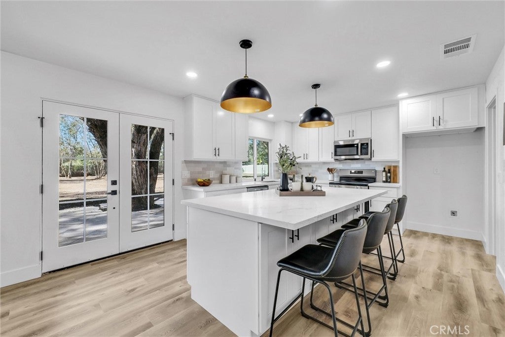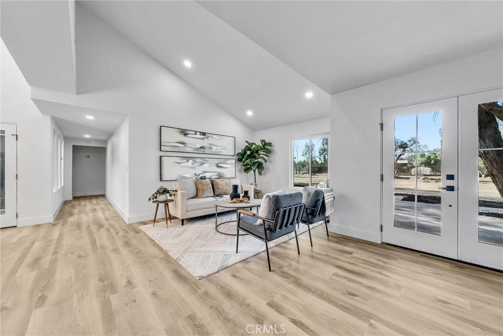 Experience the art of modern country living in this exquisite SINGLE-STORY ranch estate, where sophistication meets serenity on a RARE ALL FLAT FULLY USABLE 1.25 ACRE LOT. Thoughtfully reimagined from top to bottom, this 4-bedroom plus dedicated office, 3-bath residence spans 2,707 square feet of elegant, light-filled design. Crafted with intention, this multi-generational SINGLE-STORY home offers the ideal layout for a growing family or extended family living — all harmonized by a seamless, open flow that celebrates connection and comfort. Expansive windows frame uninterrupted views across your private estate, while a striking interior courtyard becomes the centerpiece of the home — flooding every room with natural light and creating effortless indoor-outdoor harmony beneath vaulted ceilings and a free-flowing open-concept design. Every inch of this SINGLE-STORY residence has been meticulously upgraded — from the brand-new kitchen and designer baths to new flooring, fresh interior and exterior paint, new HVAC system, energy-efficient windows, and a new roof — all finished with exceptional care and craftsmanship. The all-new kitchen cabinetry and sleek quartz countertops define modern elegance, while the dual living and family rooms offer generous spaces for both grand entertaining and intimate gatherings. And with too many upgrades to list, this home must be experienced in person to be fully appreciated. Zoned R-R, the property offers endless flexibility — ideal for an ADU, Junior ADU, workshop, horses, RV parking, or the luxury outdoor retreat of your dreams. Set within the thriving, fast-growing community of Winchester, this estate perfectly balances a tranquil country feel with unmatched convenience — close to premier shopping, dining, schools, and freeway access, ensuring effortless connectivity without sacrificing peace or privacy. Surrounded by new parks, trails, retail, and master-planned developments, Winchester is emerging as one of Southern California’s most desirable lifestyle destinations. A truly rare offering — elegant, expansive, and masterfully designed for luxurious SINGLE-STORY living with multi-generational versatility.
