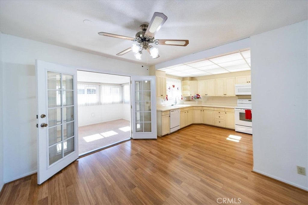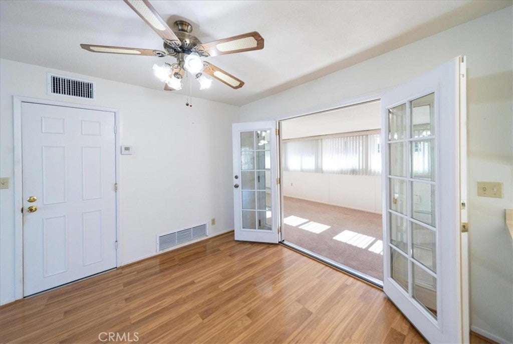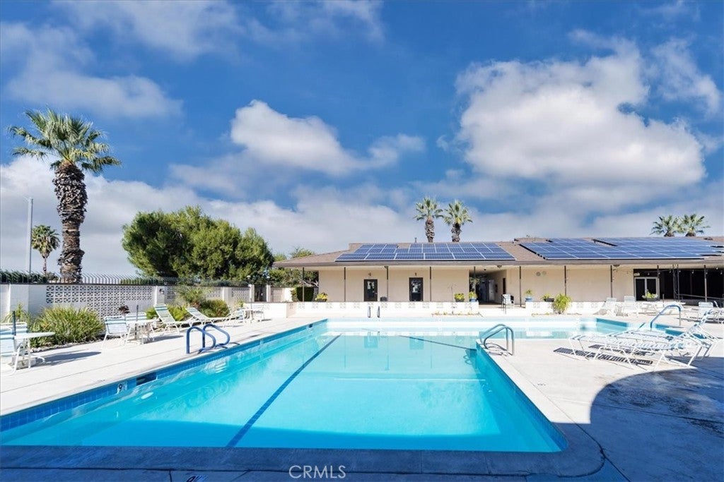 Located in Panorama Village, a beautiful 55+ Senior and golf community known for its professionally designed 9-hole golf course (Free golf for residents and very low fee for your guests), putting green, heated saltwater pool, clubhouse, jacuzzi, sauna, fitness area, shuffleboard, BBQ area, library, dog parks and much more included in the very low HOA. Situated in the heart of Hemet just 2-3 minutes from most shopping and dining in the area. This 2 bedroom, 2 full bathroom home is One of the few homes within in the community with an oversize TWO CAR attached garage and an added sunroom off the dining area with beautiful French Doors. This home has vinyl dual pane windows throughout, A/C unit just two years old, FULLY PAID SOLAR PANELS, reverse osmosis water filter system under kitchen sink, ceilings fans, new garbage disposal, Refrigerator, Freezer, Washer & Dryer included. Low maintenance yard filled with decorative rock. Too many amenities to mention. Come see for yourself.
