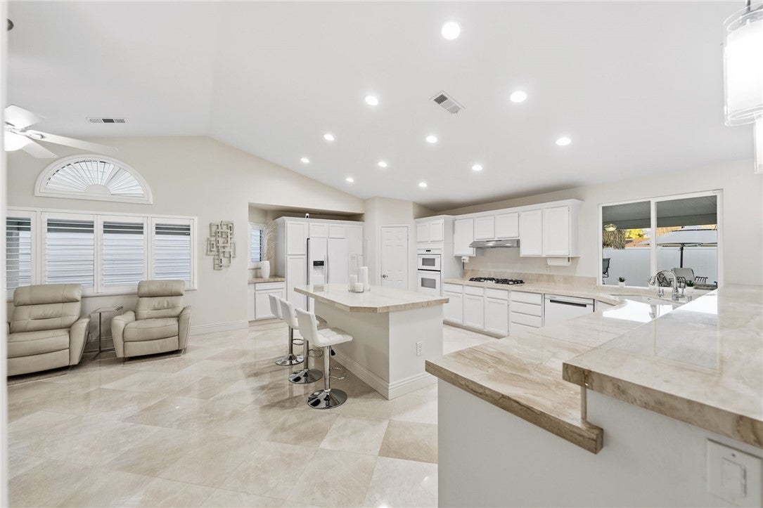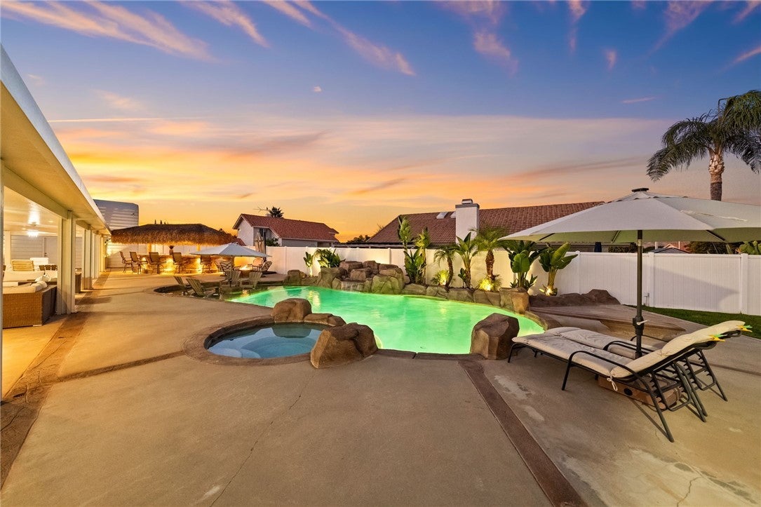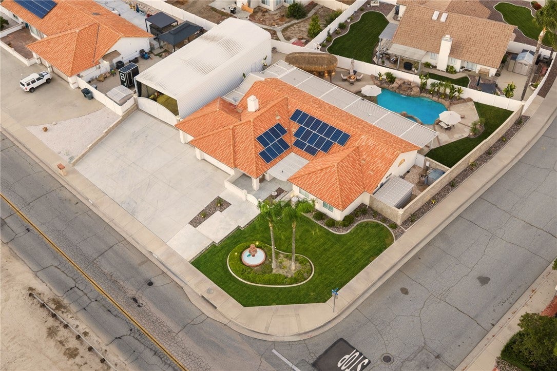 Welcome to this stunning single-story custom floorplan home that perfectly blends luxury, functionality, and style. Situated on a large desirable corner lot, this 4-bedroom, 2.5-bathroom home offers an open and elegant floor plan with marble flooring throughout and meticulous attention to detail. The gourmet kitchen features marble countertops, a new dishwasher, R/O system, walk-in pantry, and abundant cabinetry—ideal for the home chef. The spacious primary suite boasts a marble walk-in shower, separate soaking tub, and a serene retreat-like atmosphere. Enjoy year-round comfort and efficiency with newer dual-pane windows, a new roof, which was installed 3 years ago, and solar. Step outside to your backyard oasis complete with a sparkling pool, relaxing spa, Alumawood patio cover, and a cozy firepit—perfect for entertaining. The property also includes a 3-car garage with vinyl tile flooring and an impressive 25x60 RV garage with 220-volt power, ideal for RVs, boats, or a workshop. Additional highlights include indoor laundry, custom steel gates, underlit concrete steps leading to your front foyer, a gas fireplace in the family room, and a 4th bedroom with a private entrance—perfect for guests or a home office. This highly upgraded home offers the ultimate in comfort, quality, and convenience, this home is a true entertainer’s dream with room for all your toys! And low taxes and no HOA!!! Do not miss this one in a million home today!