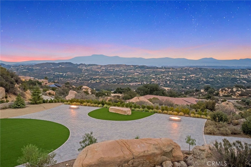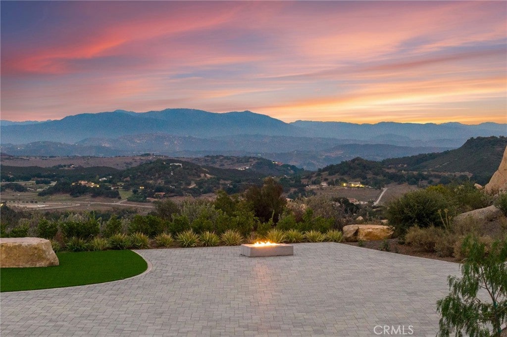 You won’t believe your eyes as you arrive at this truly magical La Cresta Highlands parcel on the Santa Rosa Plateau. Beyond the private security gate, the property unfolds into an exceptionally curated estate site where every detail has been thoughtfully designed. A stunning interlocking-paver driveway winds through custom masonry walls and illuminated walk paths, leading you through lush turf areas totaling approximately 9,000 square feet and two extraordinary firepit gathering spaces, perfectly positioned for unforgettable sunset moments. The landscape is nothing short of breathtaking—ancient oak trees, dramatic natural boulder outcroppings, and sweeping panoramic views that span Mount Palomar, Mount San Jacinto, Big Bear, Lake Skinner, and glittering city lights below. From sunrise to starlight, the vistas here are simply miraculous, changing beautifully with the seasons. This parcel is fully prepped and ready for your dream build, complete with Santa Barbara–style architectural plans available—timeless, elegant, and perfectly suited to the natural surroundings. Infrastructure is already in place, including a private water well, a 2,500-gallon water storage tank, and a 500-gallon propane tank powering a Kohler generator. The property also features a 100% automated solar system that seamlessly controls irrigation, lighting, and electrical systems throughout the grounds—offering both efficiency and peace of mind. Enjoy the serenity of Plateau living while remaining just minutes from town, top-rated schools, grocery stores, restaurants, hospitals, the 15 freeway, and Temecula Wine Country. Residents enjoy miles of private community trails ideal for hiking and horseback riding, along with clean air, open space for agriculture or animals, and a slower, more intentional way of life. Living on the Plateau means star-filled skies, a strong sense of community, and a lifestyle deeply rooted in nature and tranquility—yet all within approximately 1.5 hours of Los Angeles, San Diego, Orange County, Palm Springs, and Big Bear. This is more than a homesite—it’s the foundation for an extraordinary legacy property.